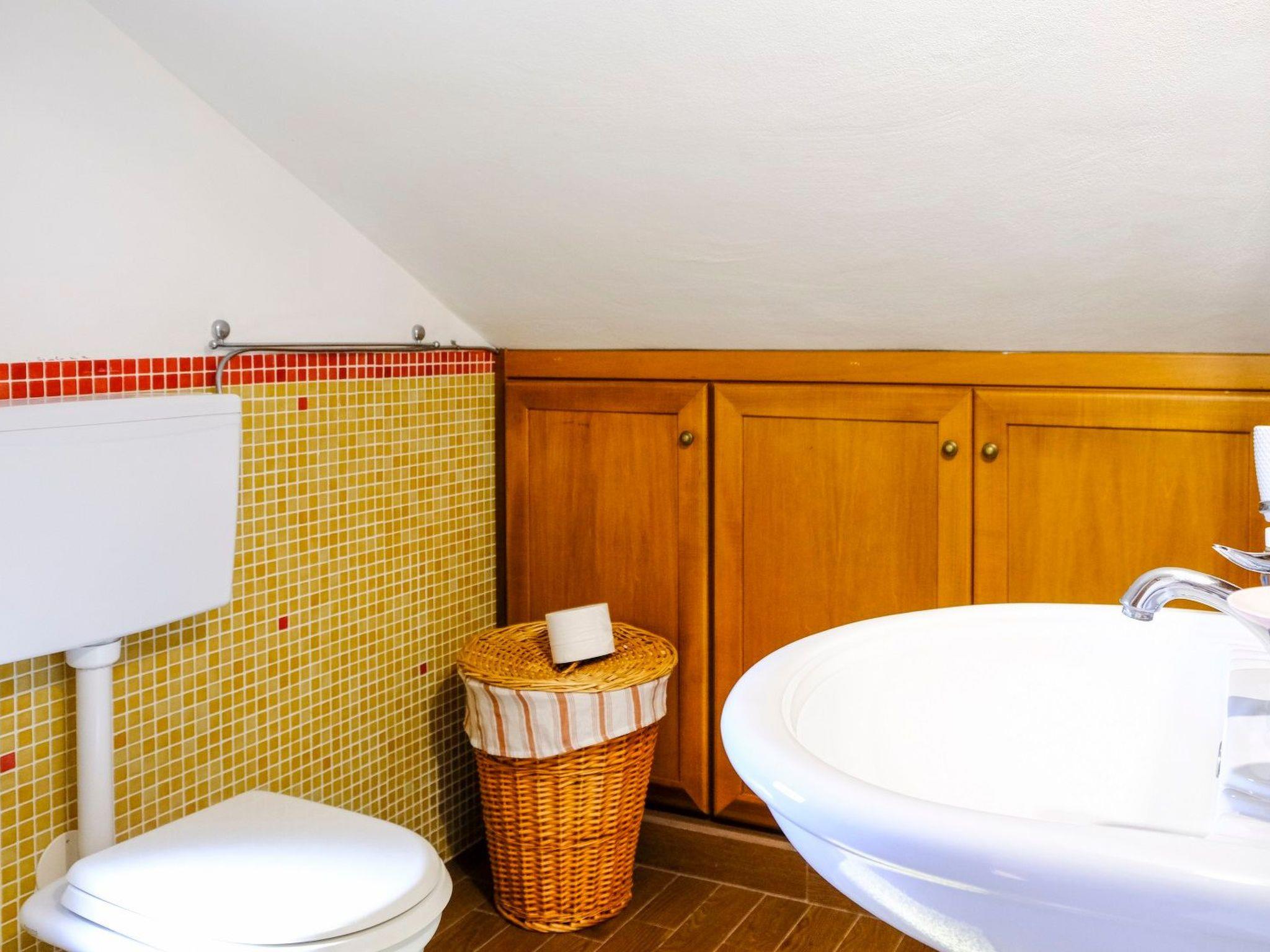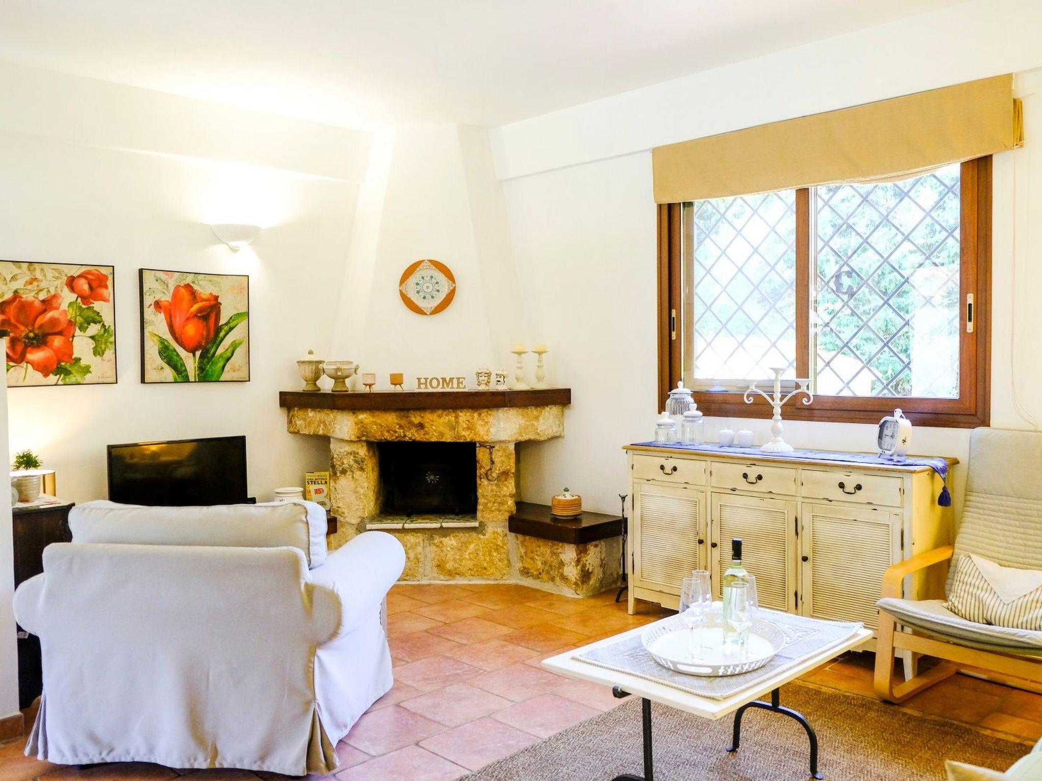 The villa is on two levels. You may access it from a spacious and bright living room, with its stylish look ensured by the furniture and the materials. The living room has a corner with fireplace and an elegant, well-kept cooking area, fully equipped. There is the possibility of a couch bed in the living room. A small hallway leads to a double bedroom. The main bathroom has a shower with hydro-massage. From the living room a spiral staircase leads to the attic on the first floor, where there are two bedrooms, both of them with a French bed. Here you can find a further bathroom with shower.
