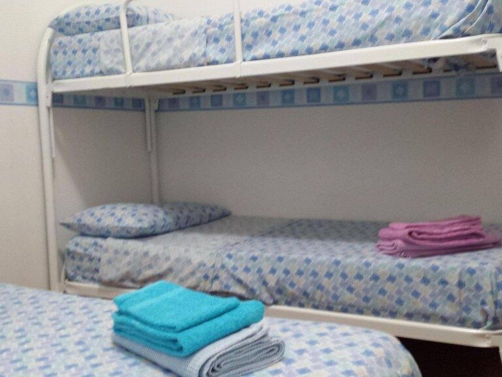 The second bedroom contains a standard double bed (1.80) and a bunk bed. The wardrobes are located just outside the room.