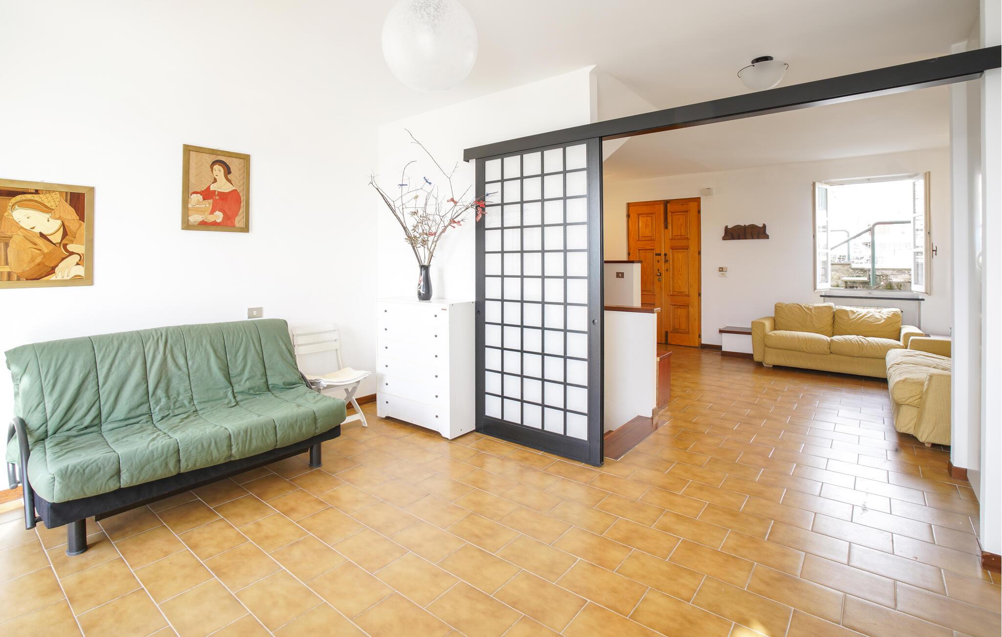 Dette rummelige feriehus lægger op til sine lyse, kærligt indrettede værelser midt i det smukke landskab i Cinque Terre. Tilbered jeres måltider i det åbne køkken og sæt jer ved det indbydende spisebord. Find jer godt til rette i sofaen og få en hyggelig spilleaften.