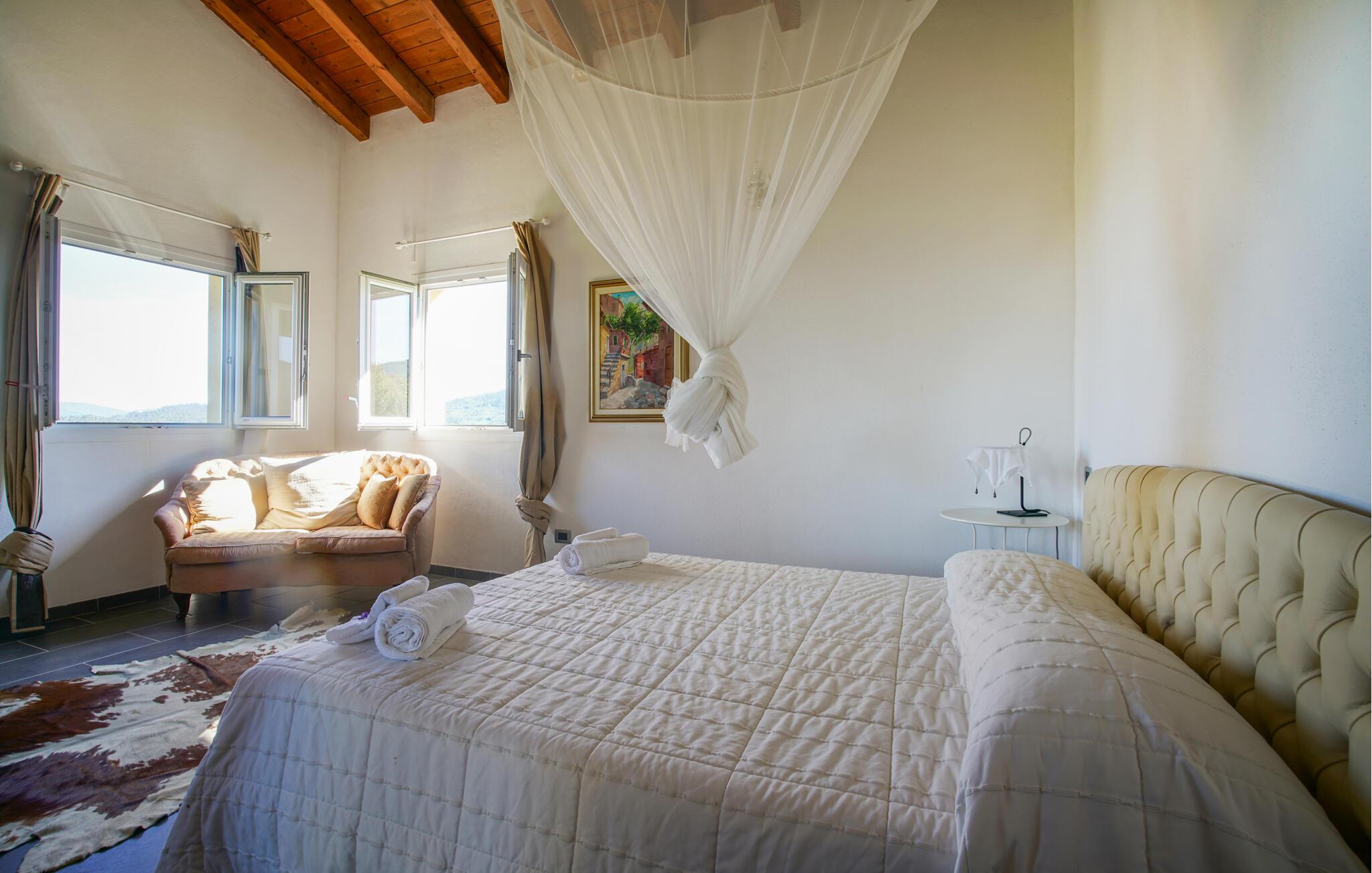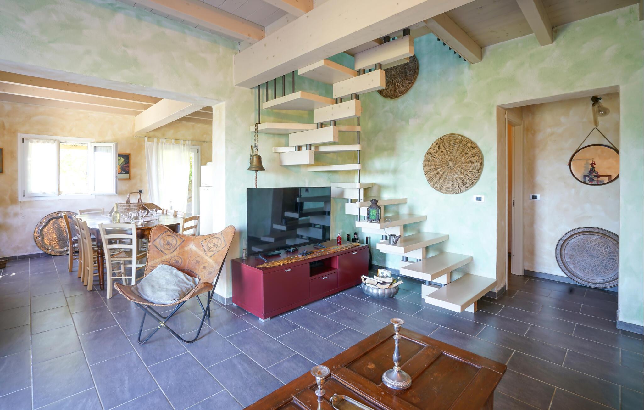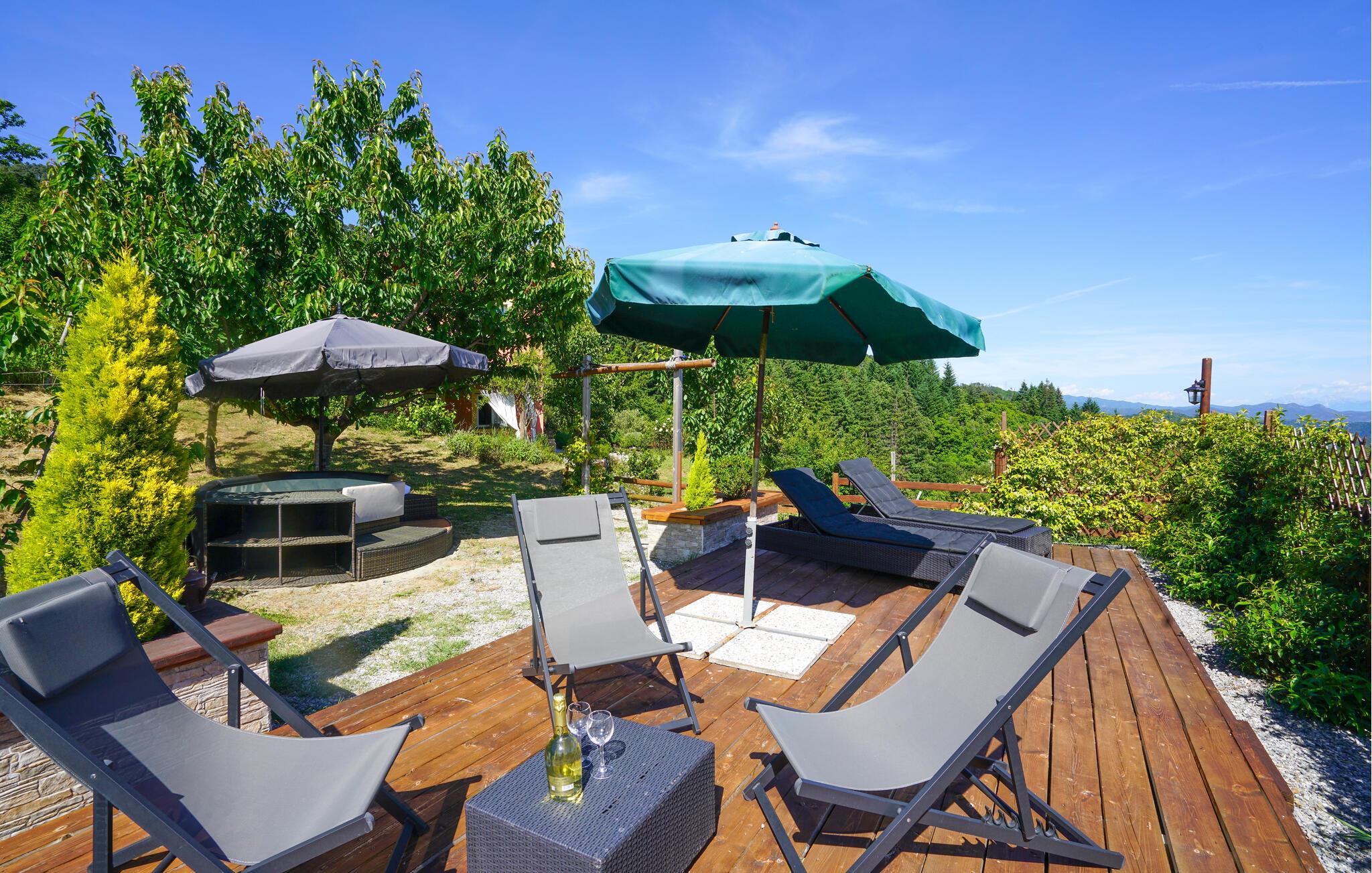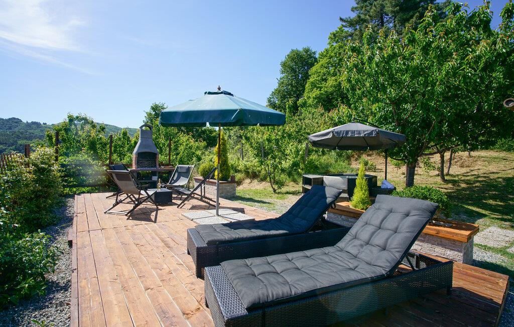 Dette rummelige feriehus ligger på en malerisk grund på en bjergskråning midt i tæt skovklædt bjerglandskab og kan prale af smagfuldt møbleret interiør og moderne faciliteter. Nyd hyggelige måltider og hyggelige spilleaftener, stream en god film eller fordyb jer i en spændende bog i et af de mange hyggelige tilflugtssteder.