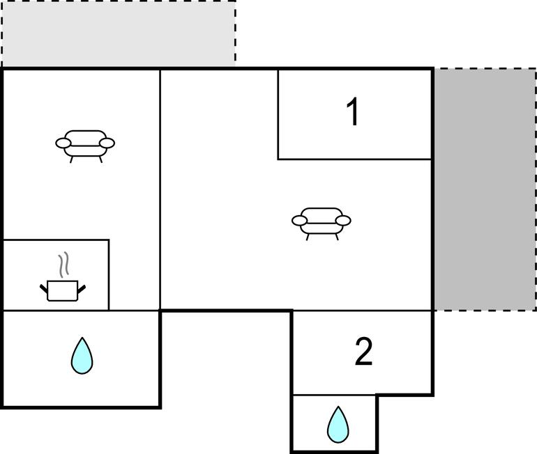 Soveværelse (nr. 1) - 1 Soveplads. (Enkeltseng(e)). 2 Sovepladser. (Dobbeltseng(e)).