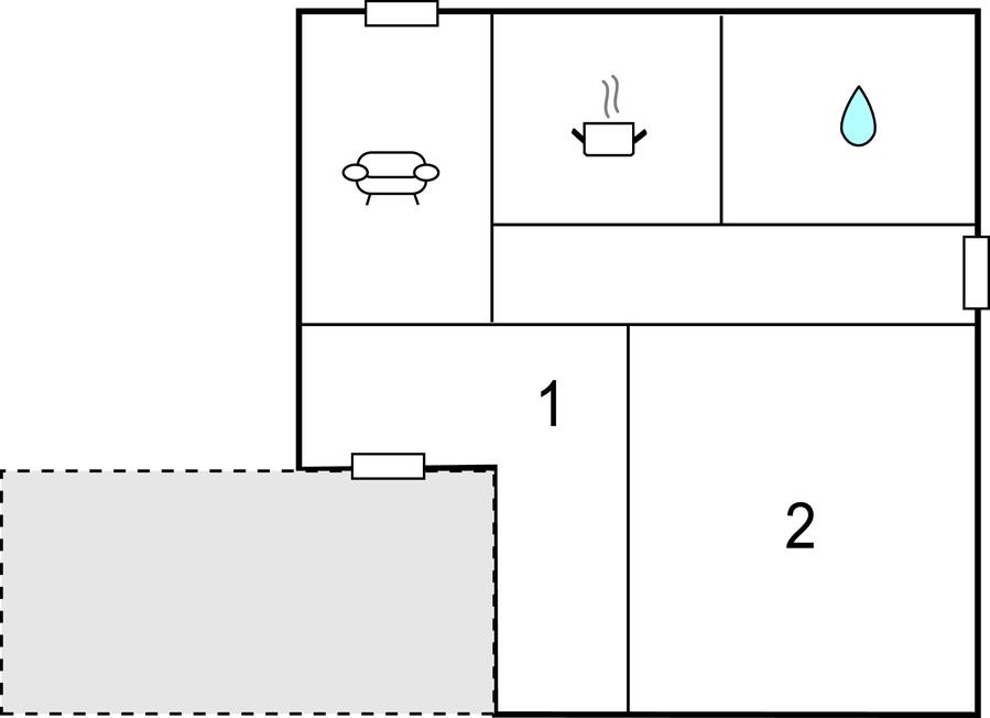 Opholdsstue - 1 Soveplads. (Sofa, madras eller lignende).