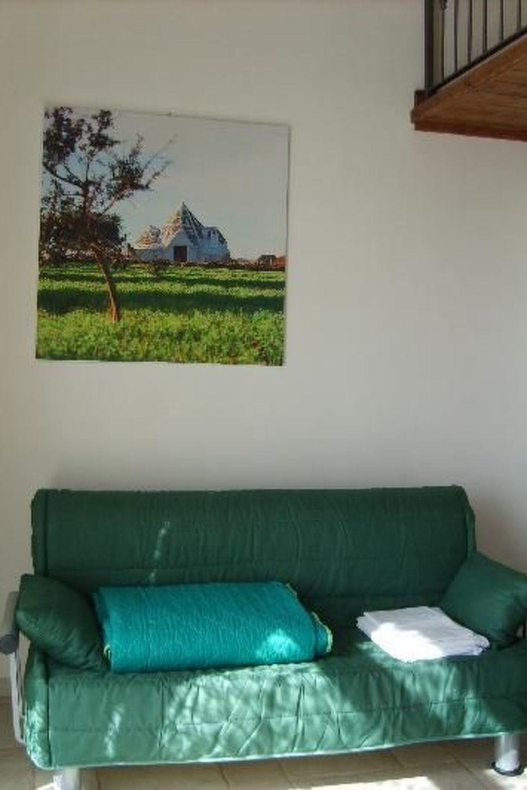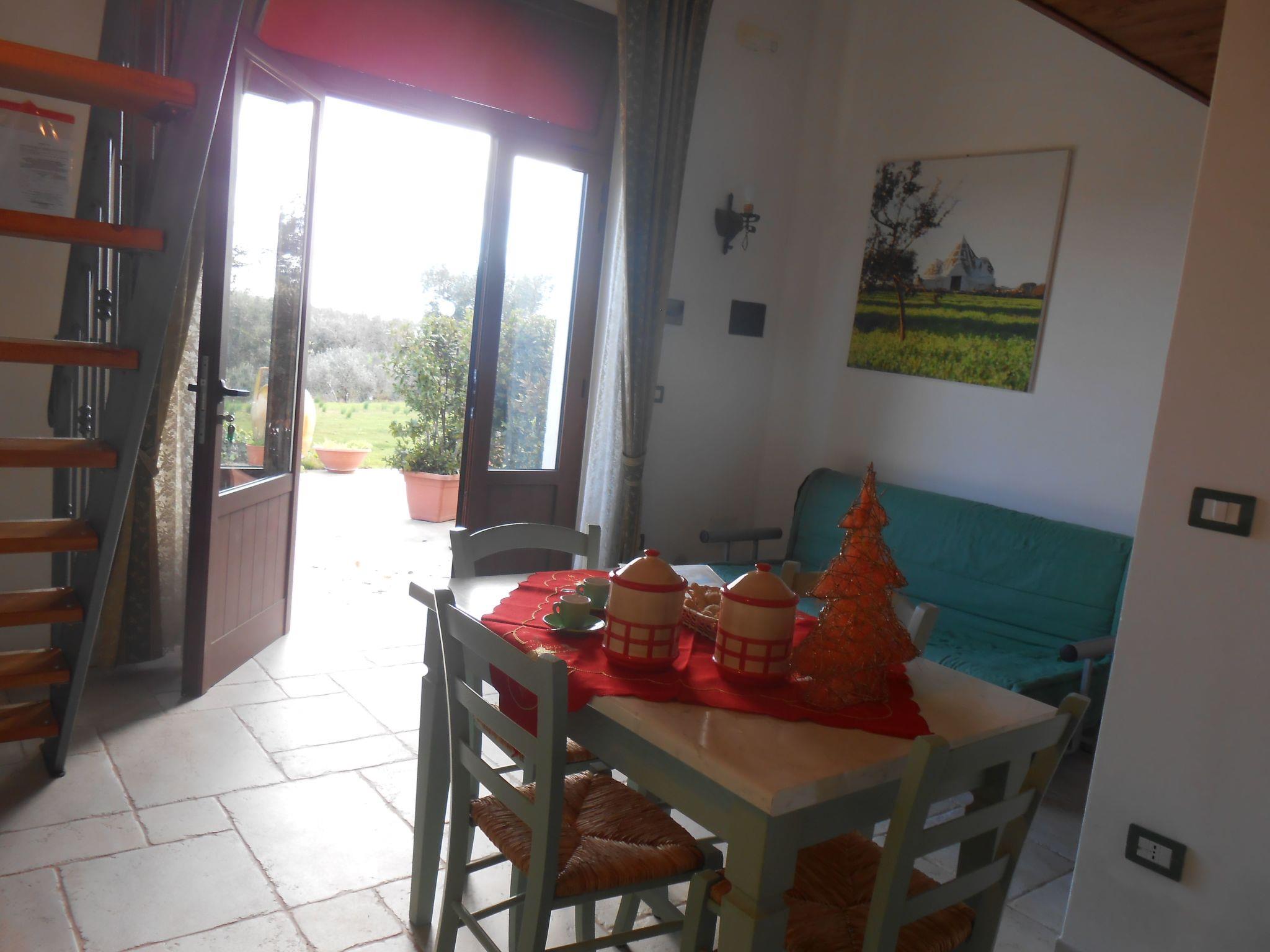 The construction is surrounded by typical olive trees, majestic oaks and graceful fruit trees that preserve and recall the genuine charm of the peasant culture. The Masseria consists of a suite and six differently arranged mini-apartments,apartments that preserve and protect the architectural style that the Masters "trullari" have left us as legacy. The objects and furnishings in all apartments combine the comfort and the needs of the today’s life with the naturalness of rustic life. It is the simplicity and authenticity of stone so widely used in this southern corner of “MURGIA APULIA” (for example Trulli, dry stone-walls and so on) that characterizes the entire panorama and the beautiful. Therefore, during the stays, one shouldn’t miss excursions to Alberobello known as the capital of the Trulli, to Ostuni “La Città Bianca” with its entirely white old centre, to Polignano a Mare with its old town perched on a cliff, to Martina Franca its baroque art and finally to the karst caves of Castellana Grotte. For visitors who plan to stay some more days, not far away there are Castel del Monte, Matera with its famous Sassi, Lecce the capital of baroque,Trani and Bari respectively known especially for the Romanesque Cathedral and the Basilica Pontificia of San Nicola.