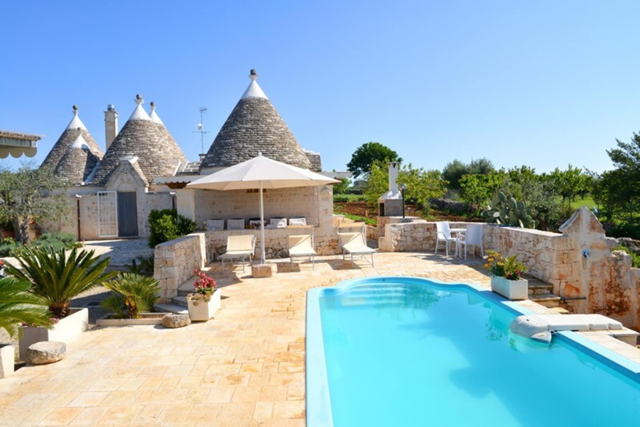 Atmosfærisk trulli-landsted med swimmingpool i en unik, drømmende panorama-position omgivet af natur, omgivet af vinmarker og oliventræer, i Valle d'Itra mellem byerne Ostuni, Cisternino og Martina Franca. Bliv fortryllet af den betagende udsigt over smukke landscape.Valle d "ITRA er et område i Salento mellem byerne Locorotondo, Alberobello, Martina Franca, Ostuni og Cisternino. Det vigtigste ved dalen er trulli, de typiske runde stenhuse i form af en kegle og omfattende olivenlunde, omgivet af tørre stenmure, typisk for det sydlige Apulien. Den smukkeste by i Valle d'ITRA, Cisternino har en glimrende bevaret historiske gamle bydel med smalle og snoede gader og typiske hvidkalkede huse. Der er smarte butikker, cafeer og talrige tattorias, der tilbyder traditionelle Puglia retter i en romantisk atmosfære. Cisternino tiltrækker mange besøgende, især i sommermånederne Rundt omkring i byen er der endeløse olivenlunde og vindyrkningsområder Detaljer: WiFi, sengelinned, håndklæder, slutrengøring Aktiviteter i nærheden: Feriehuset er et godt udgangspunkt for kulturbyer som Ostuni, Cisternino, Alberobello og Locorotondo. Talrige cykelstier gennem bakkerne i Valle d'Itra inviterer til udforskning, hvorefter du kan tage en dukkert i det smukke poolen. Mange fritidsaktiviteter er til din rådighed, hvilket sikrer en meget afslappende ferie for både voksne og børn. Ikke egnet til personer med nedsat mobilitet