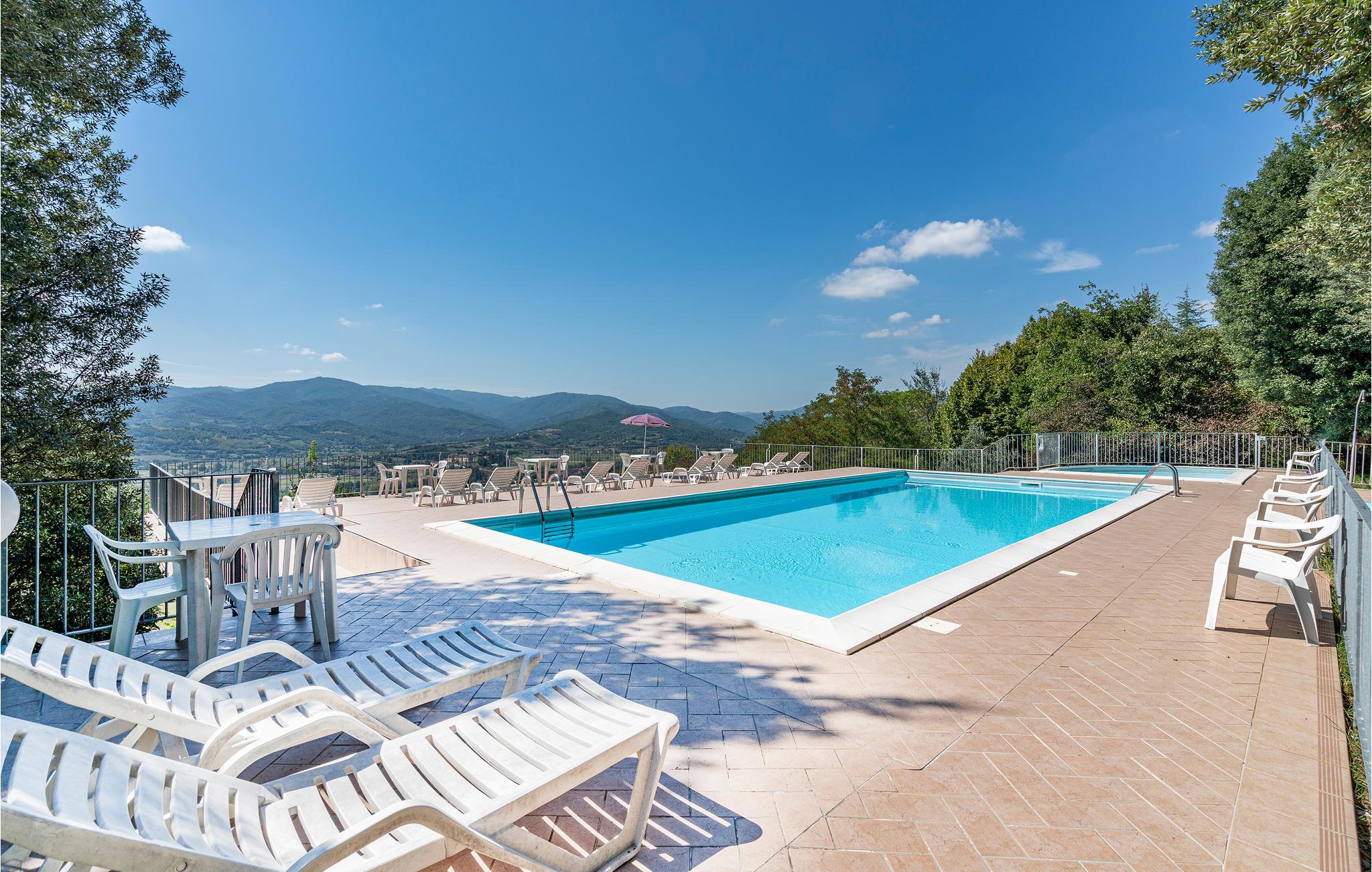 Ferielejlighed i et hus med ialt fire lejligheder, der ligger i en ejendom i et bakket landskab, 500 m fra den lille by Citerna. Til hver lejlighed er der enten en privat terrasse eller et eget privat haveområde. ITA960+961: indgang via en lille loggia på første sal. Lejlighederne er fordelt på to etager. ITA962+963 i ligger i stueplan med eget udendørs område med havemøbler. ITA963 har tekøkken. Barneseng og stol på forespørgsel. 200 m overfor ligger den stor pool med terrasse til sol, børnebassin og udendørs brusebad. Poolhus med wc og en vaskemaskine til fælles brug. På den store grund er der park med egeskov, legeplads, bordtennis og en bocciabane. 500 m til offentlig tennisbane. Afstande til interessante udflugtsmål: 2 km Monterchi, 10 km Anghiari, 14 km Sansepolcro og Città di Castello, 35 km Arezzo, 65 km Perugia.