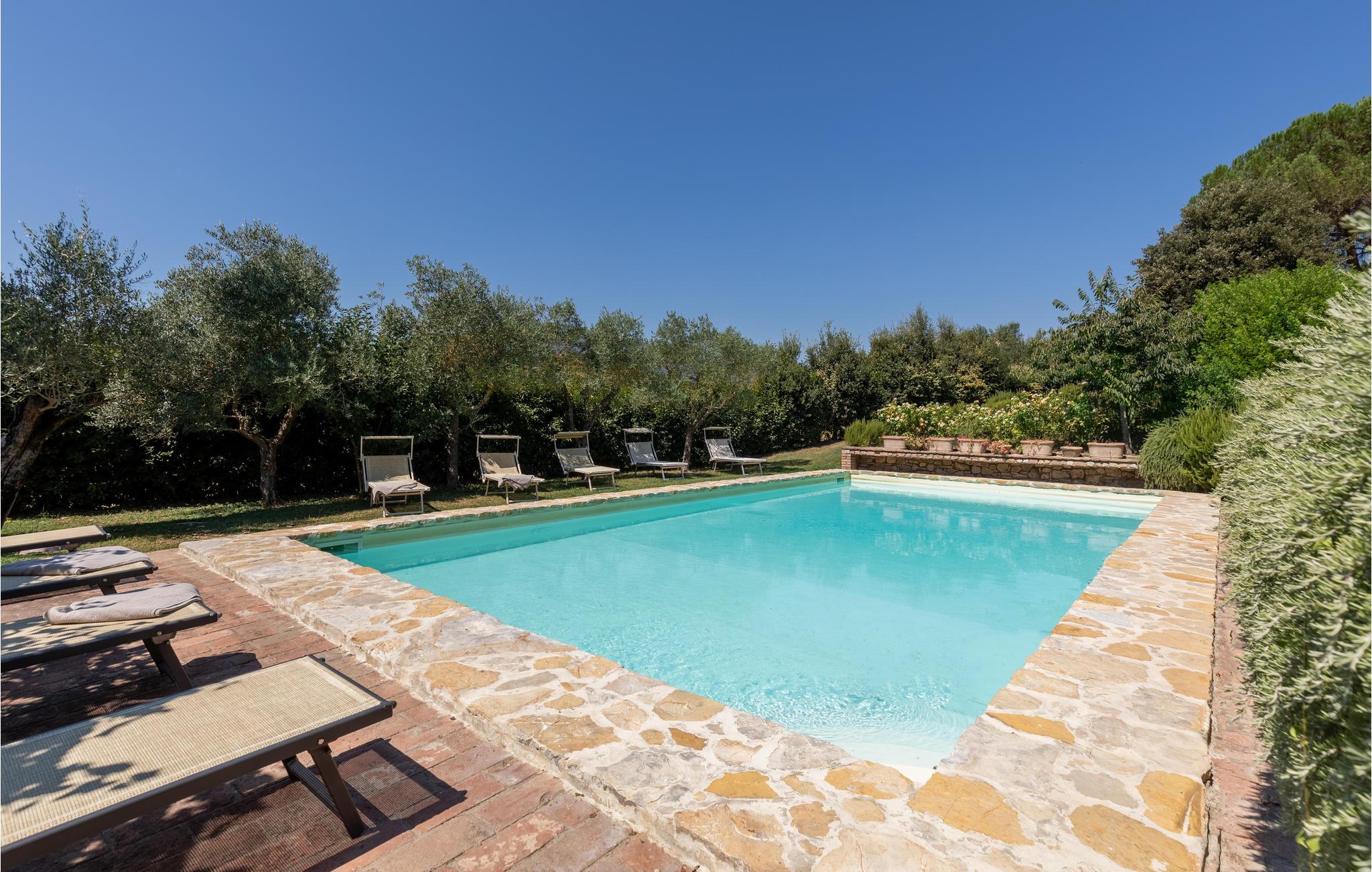 Med en idyllisk beliggenhed indbyder dette rummelige historiske luksushus til et afslappende ophold med flere familier eller en gruppe venner. Her finder I wellness for krop og sjæl! De autentisk indrettede værelser med et romantisk strejf, rustikke elementer og mange charmerende detaljer danner en usædvanlig atmosfære, hvor enhver vil føle sig hjemme. Nyd den storslåede udsigt over det maleriske umbriske landskab, hyg jer med fælles madlavning i det skønne landkøkken og nyd måltider sammen ved spisebordet med efterfølgende aftenhygge foran den knitrende pejs. Lad jer fortrylle af landskabspanoramaet udenfor. Stedet og området er som taget ud af en filmkulisse. Slik sol ved den skønne pool smukt omfavnet af træer og nyd de lune sommeraftener. Måske rykker I alle måltiderne udenfor. Her kan I vælge præcis den veranda, I har lyst til! Mulighederne er mange.