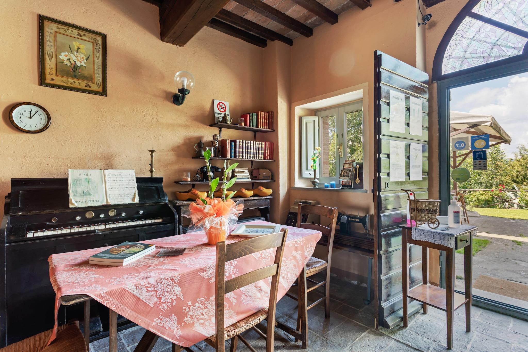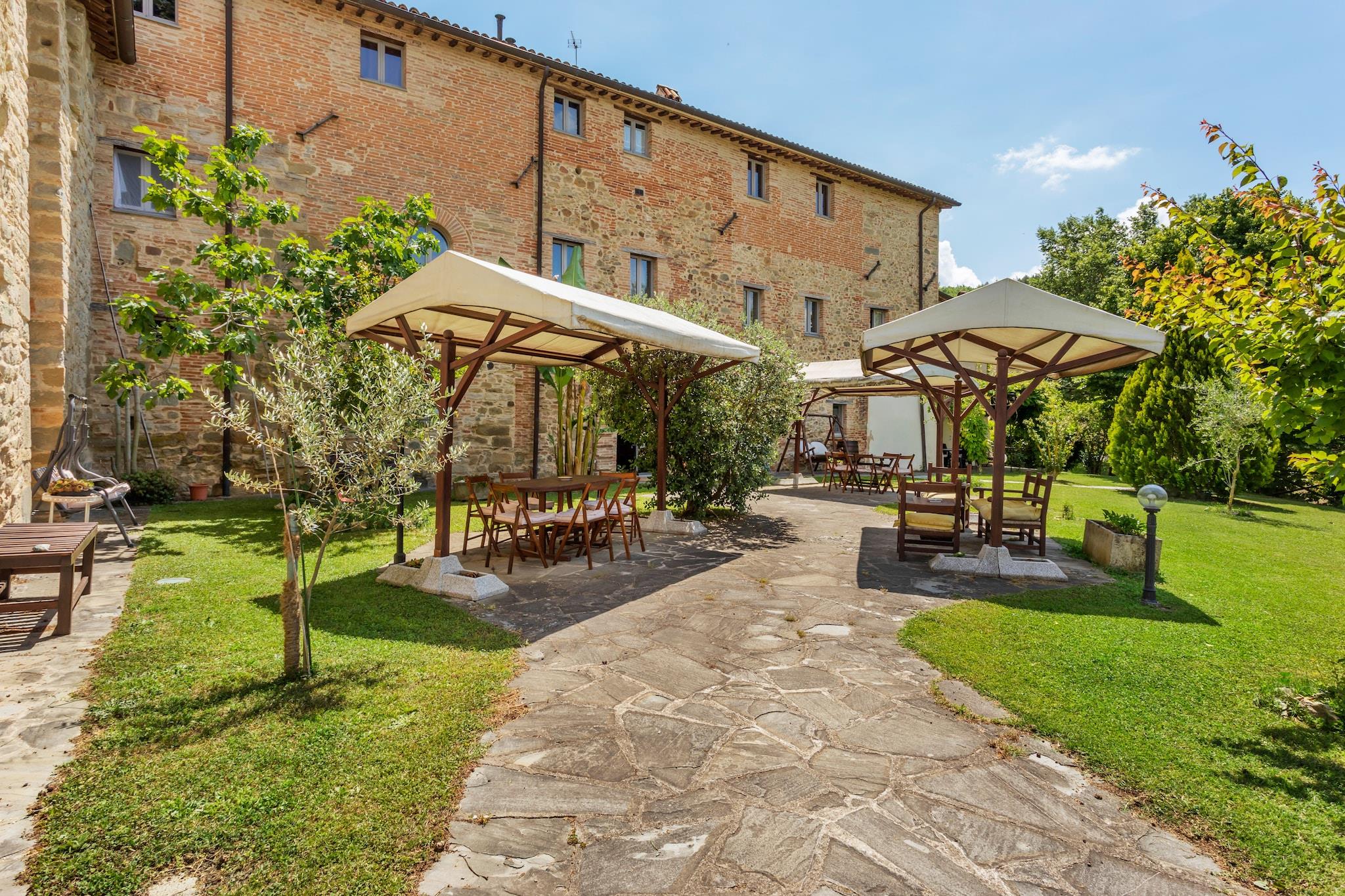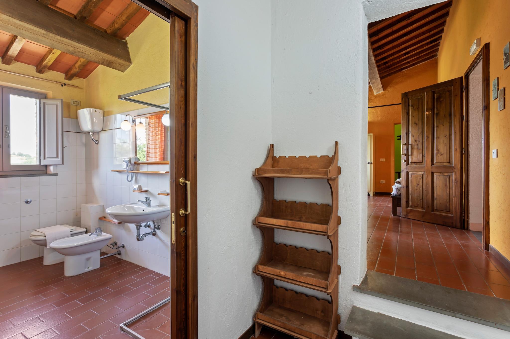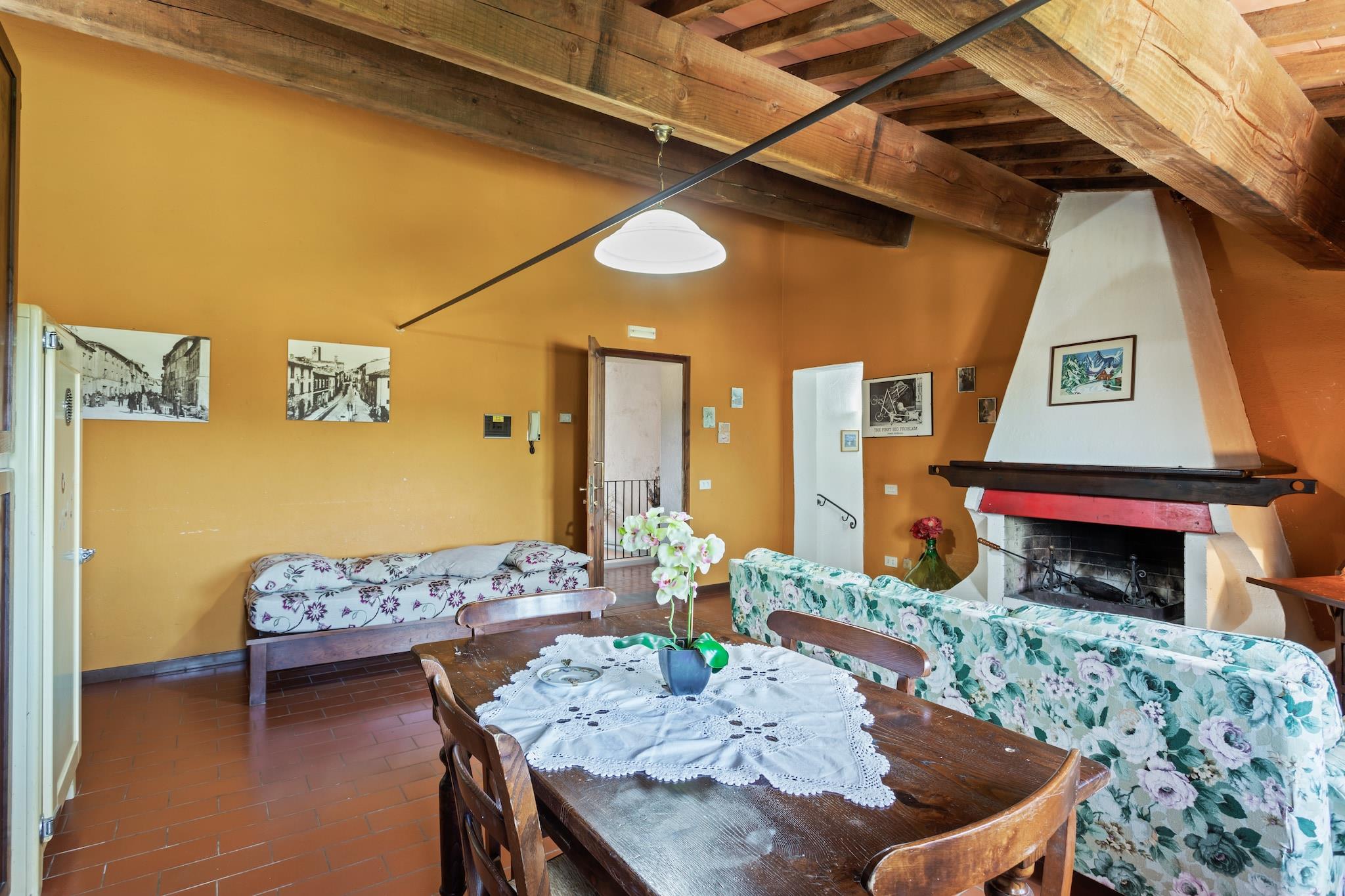 Flygt til hjertet af Umbrien med dette kæledyrsvenlige feriehus til seks gæster, der tilbyder en fredelig oase omgivet af natur. Beliggende kun 9 km fra Città di Castello, tilbyder dette charmerende feriested gratis WiFi, en frodig have og adgang til en fælles swimmingpool (17 x 7 m, åben maj-september). Uanset om du slapper af i det hyggelige interiør eller udforsker nærliggende attraktioner, garanterer dette hjem et afslappende og mindeværdigt ophold. Anden sal har en rummelig stue og spisestue med en sovesofa til én person, tv, spisebord og pejs, samt et fuldt udstyret køkken med kogeplader med fire kogeplader, emhætte, køleskab og håndvask. Hjemmet har to komfortable soveværelser, et med en dobbeltseng eller to enkeltsenge og en barneseng, og et andet med en enkeltseng og en dobbeltseng eller to enkeltsenge, samt et badeværelse med bruser, håndvask, toilet og bidet. Gæsterne kan også nyde en bar, havemøbler, liggestole, grillplads, parkering, parasol, legeredskaber og fitnessudstyr, hvilket sikrer et bekvemt og behageligt ophold. I nærheden fremviser Castello Bufalini fantastisk renæssancearkitektur, mens Convento Eremo di Montecasale tilbyder et fredeligt tilflugtssted med betagende udsigt. Montone - Centro Storico tilbyder en charmerende middelalderlig atmosfære, perfekt til en naturskøn spadseretur. Til spisning serverer Pappa e Ciccia autentisk italiensk mad. Uanset om du udforsker kulturelle vartegn eller nyder lokale smagsoplevelser, er dette feriehus det perfekte umbriske hjem. tilbagetog.