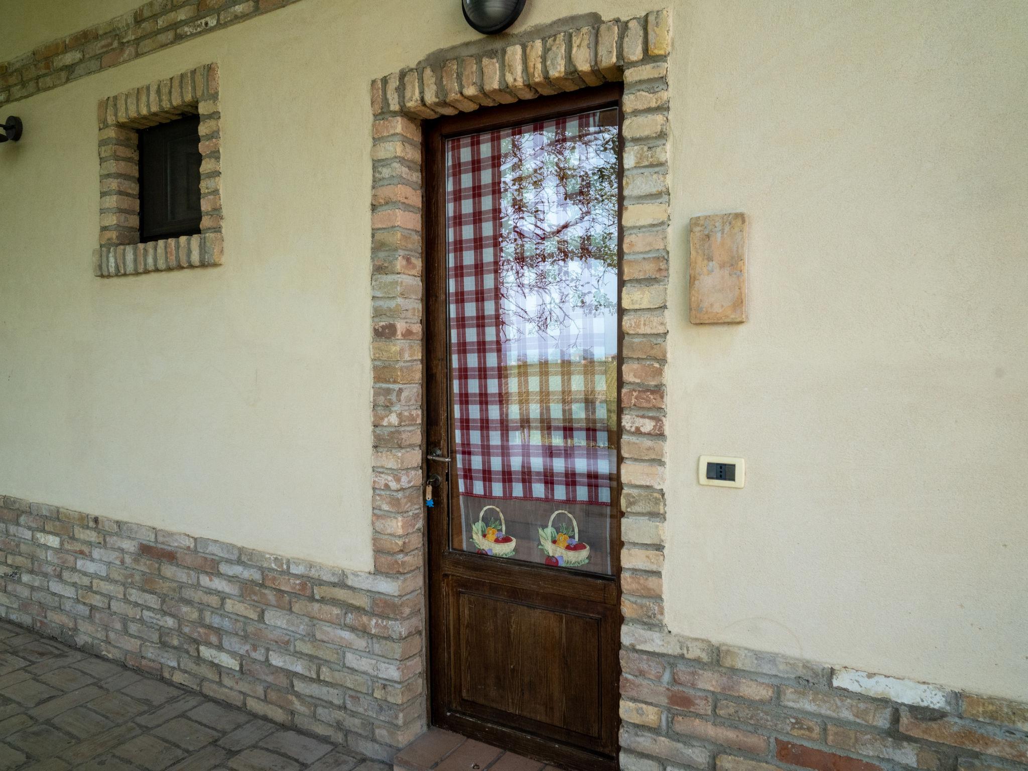 Very agriturismo, surrounded by trees and vineyards. 11 apartments in the property. 2.7 km from the centre of Città Sant'Angelo, in a quiet, sunny position, 12 km from the sea, 12 km from the beach, in the countryside. For shared use: swimming pool fenced (8 x 16 m, depth 150 - 220 cm, seasonal availability: 15.May. - 15.Sep.). In the complex: reception, breakfast room, lounge with TV. 200 m long bumpy motor access to the grounds. Roofed, parking on the premises. Shop 500 m, grocery 2 km, restaurant 2 km, bar 2 km, bus stop "Città Sant'Angelo" 2 km, railway station "Montesilvano" 12 km, sandy beach "Montesilvano" 15 km. Nearby attractions: Cappelle sul Tavo (PE) 7.1 km, Silvi (TE) 7.6 km, Collecorvino (PE) 8 km, Montesilvano (PE) 8.9 km. Please note: car recommended. Loading and unloading of baggage is possible at the holiday house. The owner lives on the same property. Motorway 10 km from the property. Airfield 21 km from the property.