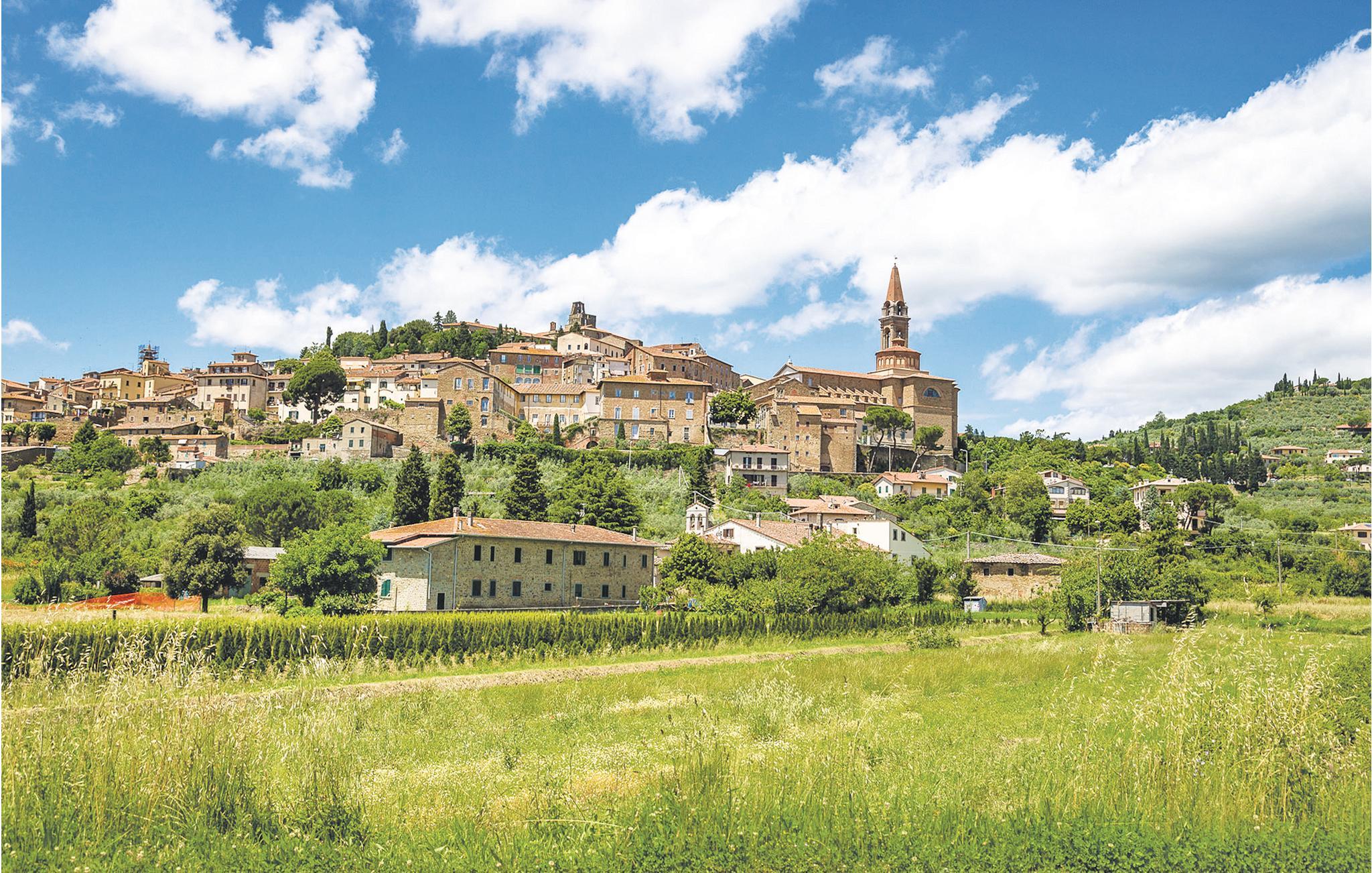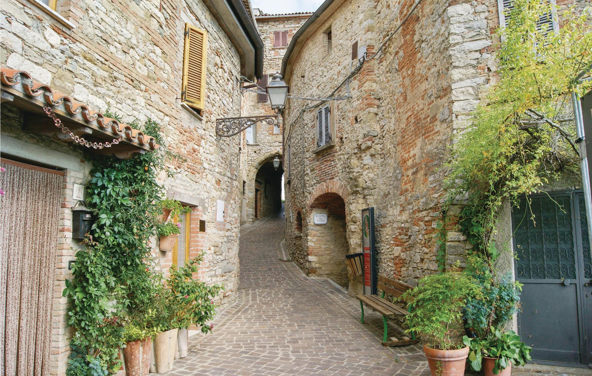Karakteristisk feriehus af natursten med saltvandspool, der en gang har været et antikt landhus. Huset ligger på en bakke på grænsen til Toscana og ca. 6 km fra den lille by Morra, hvor I kan handle. Her kan I slappe helt af i behagelige omgivelser ved poolen, tage på udflugter til karakteristiske små byer som Cortona (28 km), Arezzo (39 km) og Gubbio (51 km) og runde dagen af, når I atter er hjemme, med dejlig aftensmad på den smukke terrasse. Fra dobbeltværelset på første sal er der en stige op til et åbent rum under taget (loftshøjde fra 1,30 til 2 m) med sovesofa (1,20 m bred). Tilkørsel igennem automatisk indgangsport, og på grunden er der en overdækket parkeringsplads. Bag huset ligger en lille kirke og præstegården, hvis kirkeklokker dog kun ringes om søndagen.