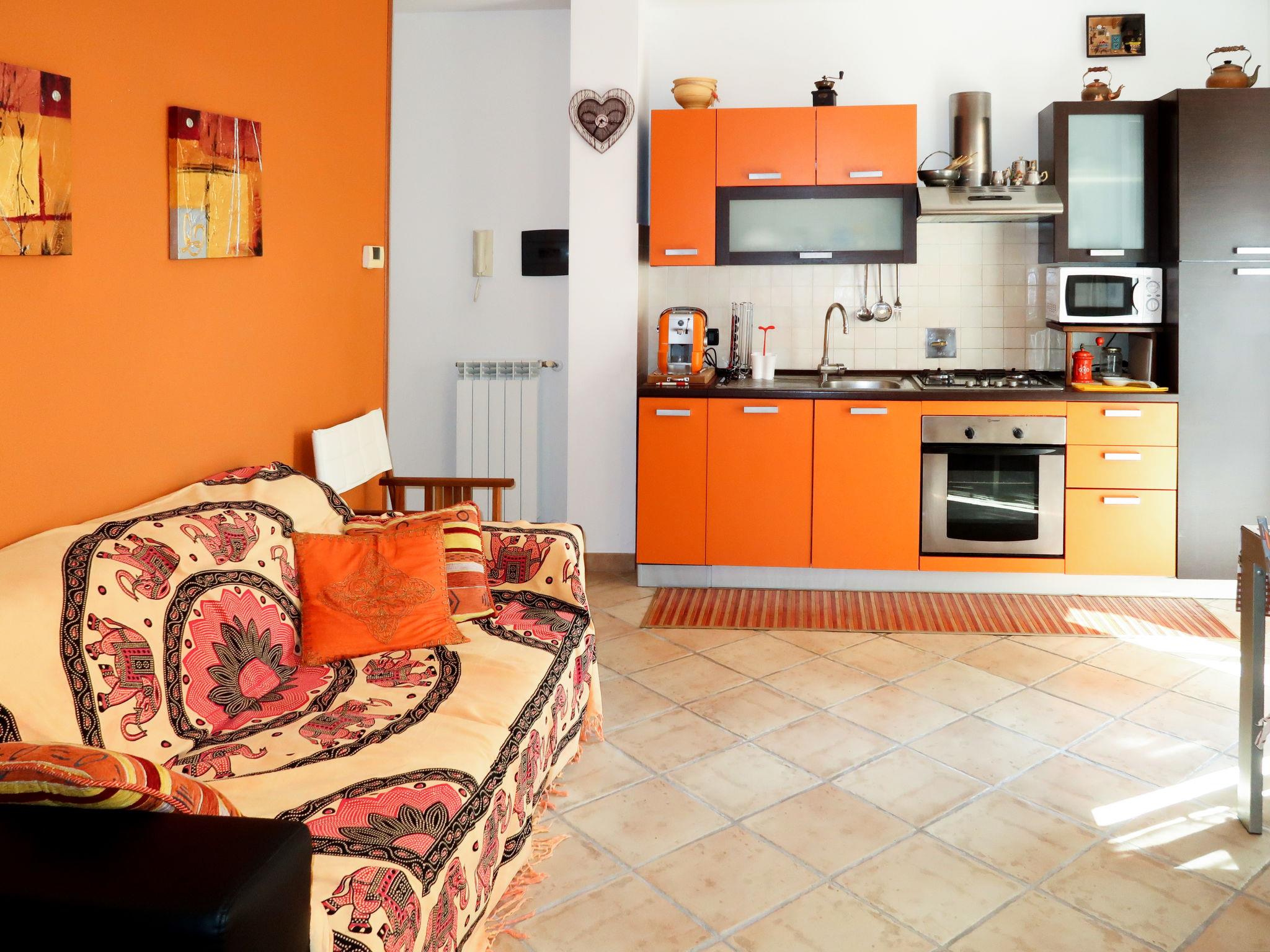 "Samuele", 2-room apartment 50 m2, on the upper ground floor. Bright, modern furnishings: living/sleeping room with 1 double sofabed (160 cm), Scandinavian wood stove, dining table and TV. Exit to the terrace. 1 room with 1 french bed (160 cm). Open kitchen (oven, dishwasher, 4 gas rings, toaster, kettle, microwave, freezer). Shower/bidet/WC. Gas heating. Heating available only from 01.11. to 30.04. Terrace 25 m2 partly roofed. Terrace furniture (portable), deck chairs (2), box-room. Distant view of the countryside and the ocean. Facilities: washing machine, children's high chair, baby cot. Internet (WiFi, free). Please note: non-smokers only. Private entrance. IT008022C2PPN7J8UB