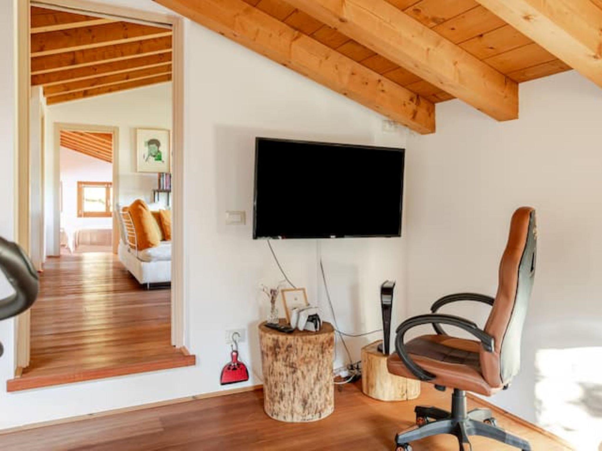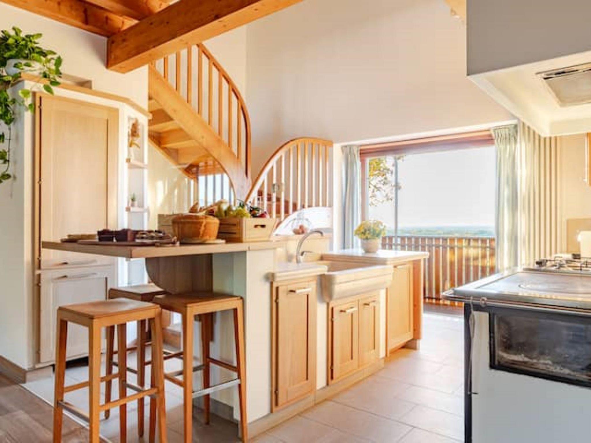 5-room house 180 m2 on 2 levels. Spacious and bright, stylish and wooden furniture furnishings: dining room with dining table. Exit to the balcony. 1 room with 1 double bed (180 cm, length 200 cm), shower/WC. Exit to the balcony. 1 room with 1 double bed (180 cm, length 200 cm). Exit to the balcony. Open kitchen (oven, dishwasher, 4 gas rings, toaster, kettle, freezer, electric coffee machine) with Scandinavian wood stove. Bath/bidet/WC. Upper floor: living room with digital TV and hi-fi system. 1 room with 1 double bed (180 cm, length 200 cm). Sep. WC. Wood heating, air-conditioning, forced-air heating. Parquet floors. Balcony, large terrace 34 m2. Terrace furniture, balcony furniture, deck chairs (4). Very beautiful panoramic view of the countryside. Facilities: washing machine, safe, hair dryer. Internet (WiFi, free). Not suitable for small children. Maximum 2 pets/ dogs allowed. No mandatory extra charges to be paid on-site except for local tax. Bedlinen, towels, final cleaning and all energy costs are included. IT030026B5OWZIYQE8