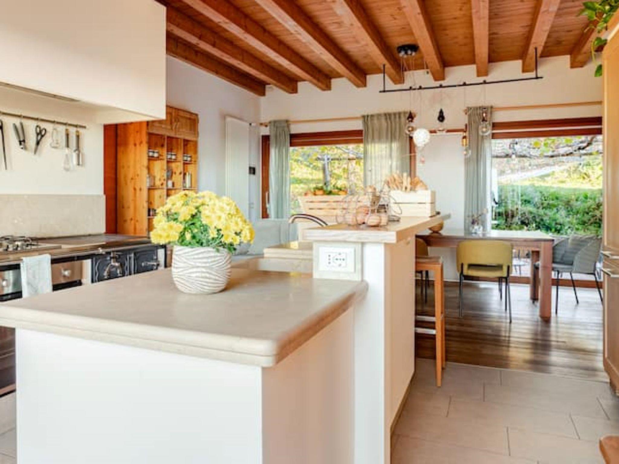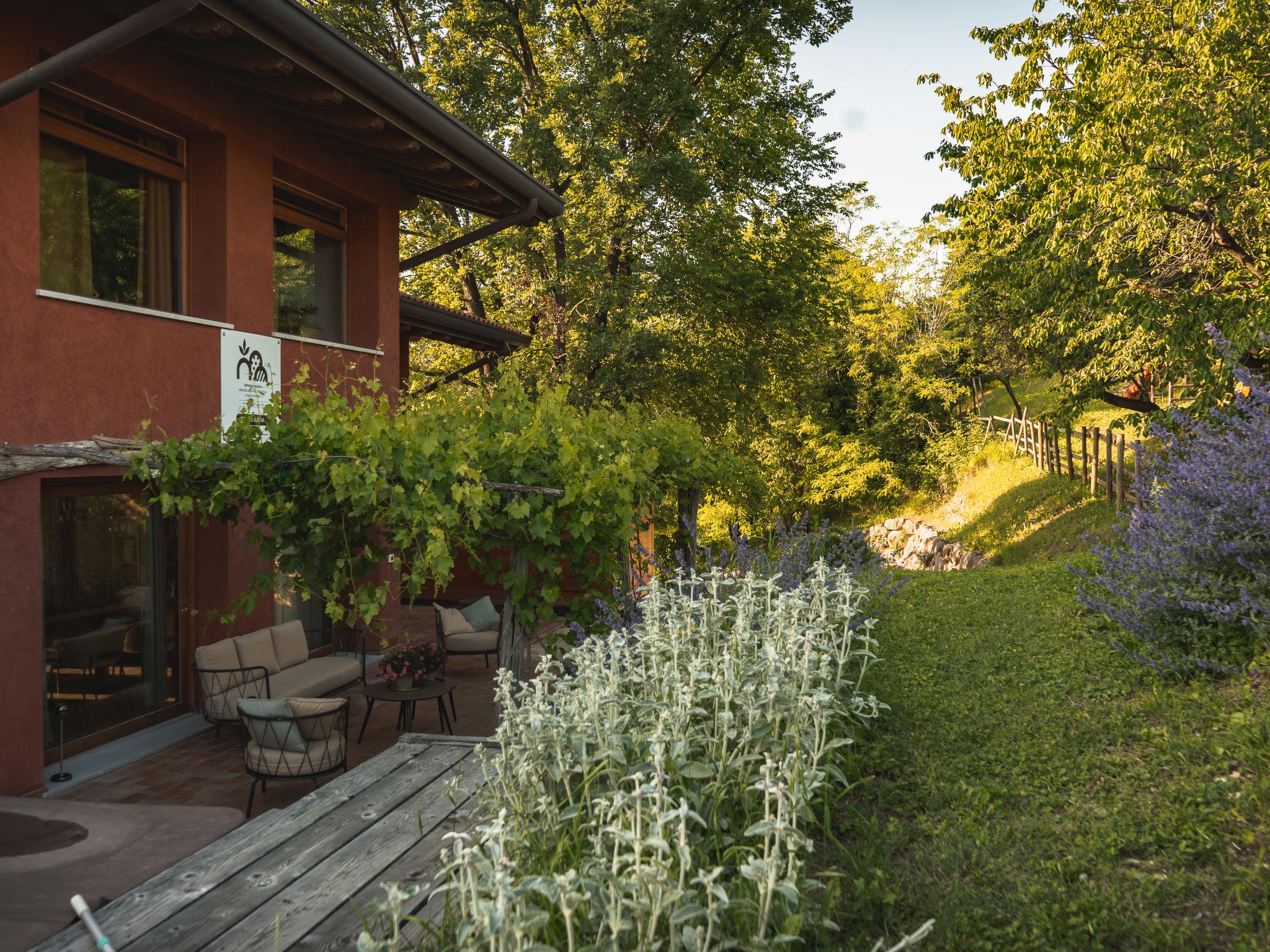 Beautiful house "Villa Ronco Albina", 2 storeys, surrounded by trees and vineyards. Above Spessa 9.5 km from the centre of Cividale del Friuli, 20 km from the centre of Udine, 70 km from the centre of Trieste, in a secluded position on a slope, in the countryside. Private: terraced garden (not fenced) with wildlife garden and trees, natural garden, orchard. Terrace, garden furniture, barbecue, fireplace. In the house: sauna, fitness room, massage (extra). Steam room, hot tub, tumble dryer (extra). Breakfast possible on request. Pre-arrival grocery service. Airport transfer (extra). Parking at the house. Supermarket 9 km, restaurant 2.3 km, bakery 8.5 km, bus stop 2.5 km, railway station "Cividale del Friuli" 9.5 km, sandy beach "Grado" 53 km, outdoor swimming pool 9.5 km, indoor swimming pool 9.5 km. Golf course (18 hole) 16 km. Nearby attractions: Cormons 13 km, Parco Bosco Romagno 2.1 km, Riserva Naturale Foce dell'Isonzo 45 km. Please note: car recommended. Cooking courses bookable on request.