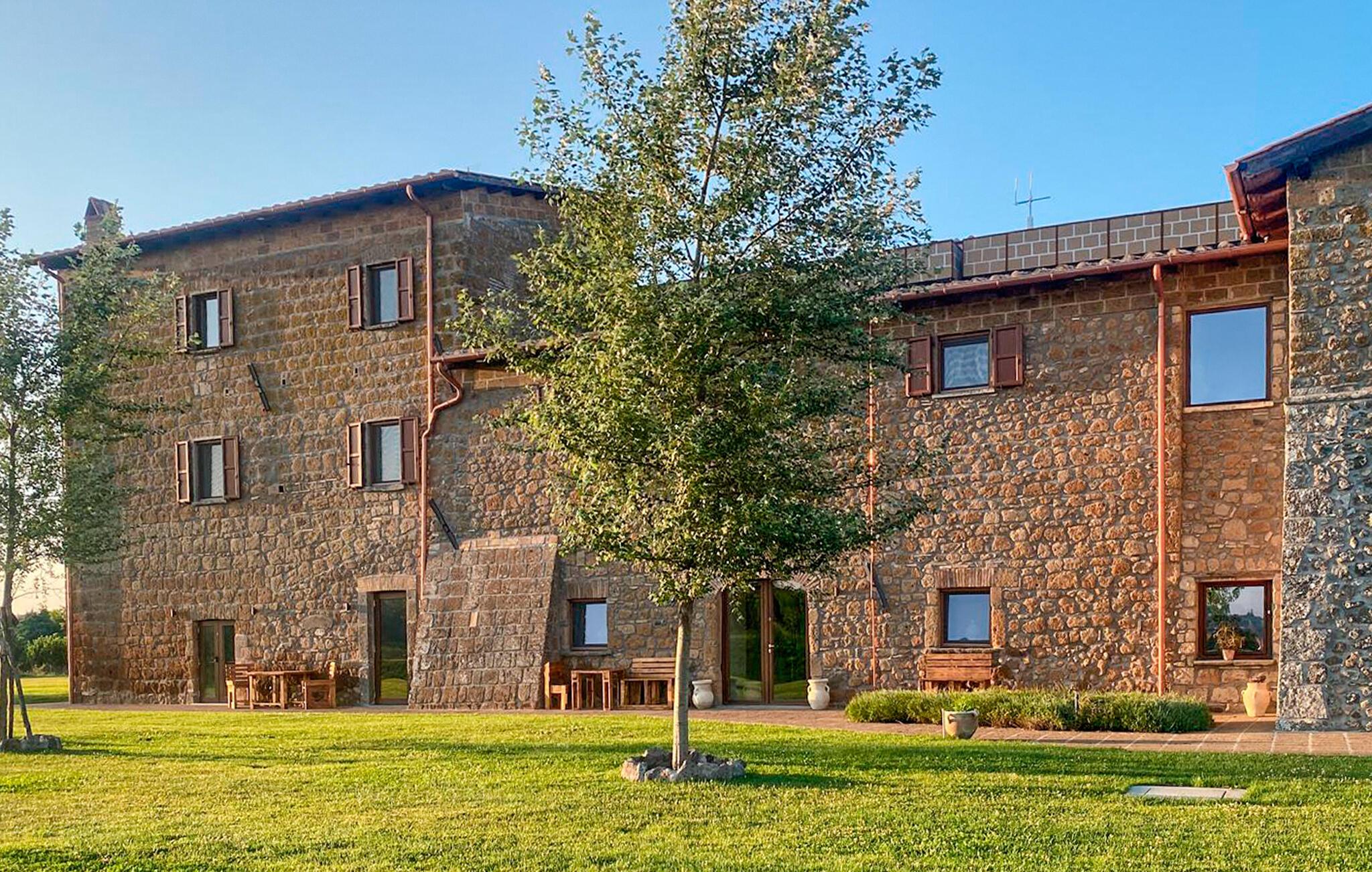 Forkæl jer selv med en afslappende ferie i denne komfortable ferielejlighed med sauna og spabad. Denne smagfuldt møblerede ferielejlighed byder jer velkommen til en imponerende ejendom fra det 13. århundrede. Alt her er designet til afslapning. Et smagfuldt indrettet interiør med en behagelig atmosfære venter jer. Planlæg jeres aktiviteter over harmoniske måltider, snak i den behagelige sofa, og glæd jer til afslappende øjeblikke i spabadet eller saunaen. Lad jeres børn have en picnic på den store, fælles naturgrund, mens I nyder den fredelige atmosfære over morgenmaden udenfor. Oplev den fascinerende magi i Civita di Bagnoregio - en historisk by, der ligger malerisk på et tufplateau. Vandr gennem de imponerende erosionslandskaber i Valle dei Calanchi, udforsk den underjordiske by og den imponerende katedral i Orvieto. Prøv fine vine på vingårdene nær Montefiascone, og bliv inspireret af den etruskiske historie i Tarquinia.