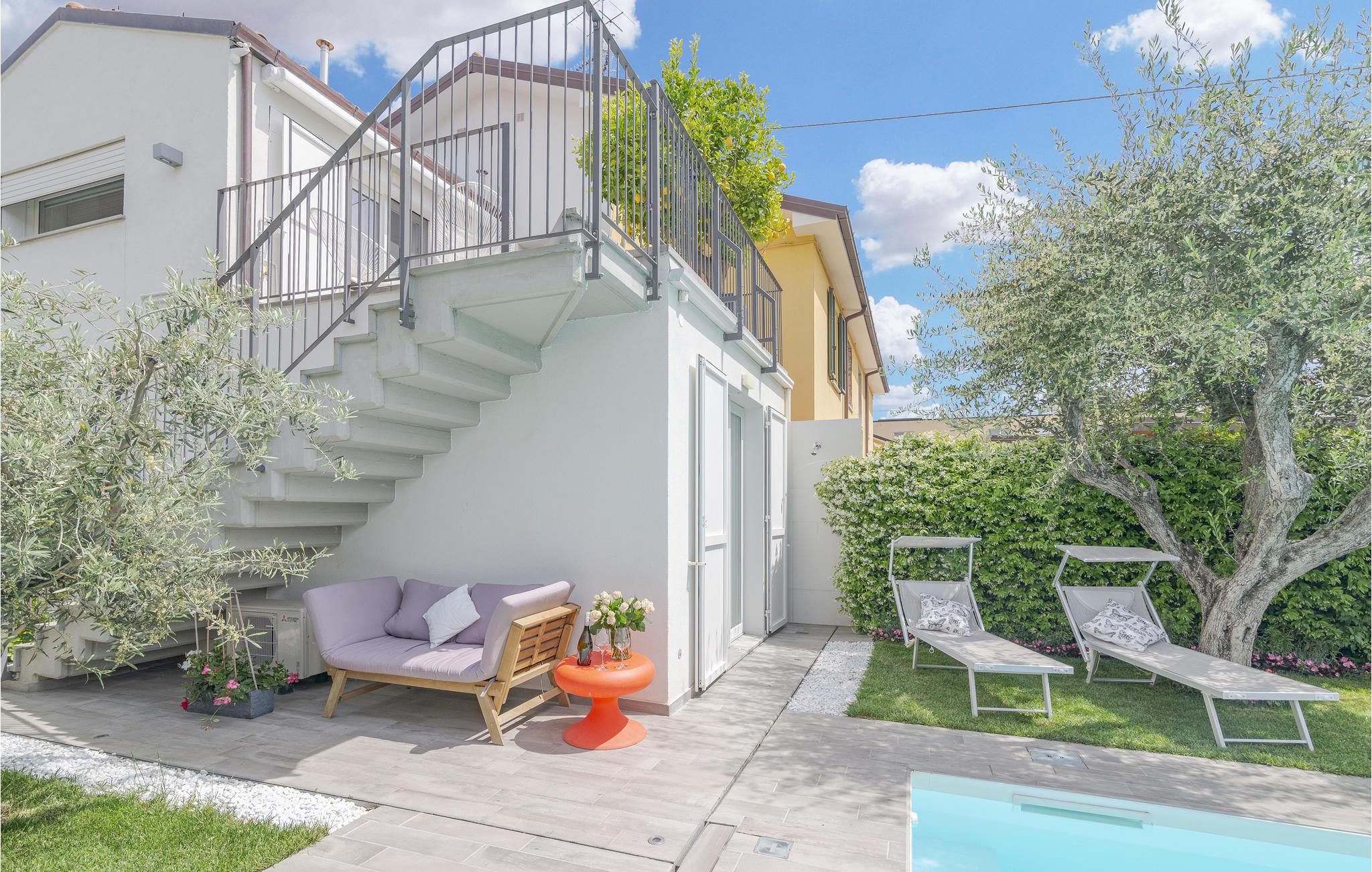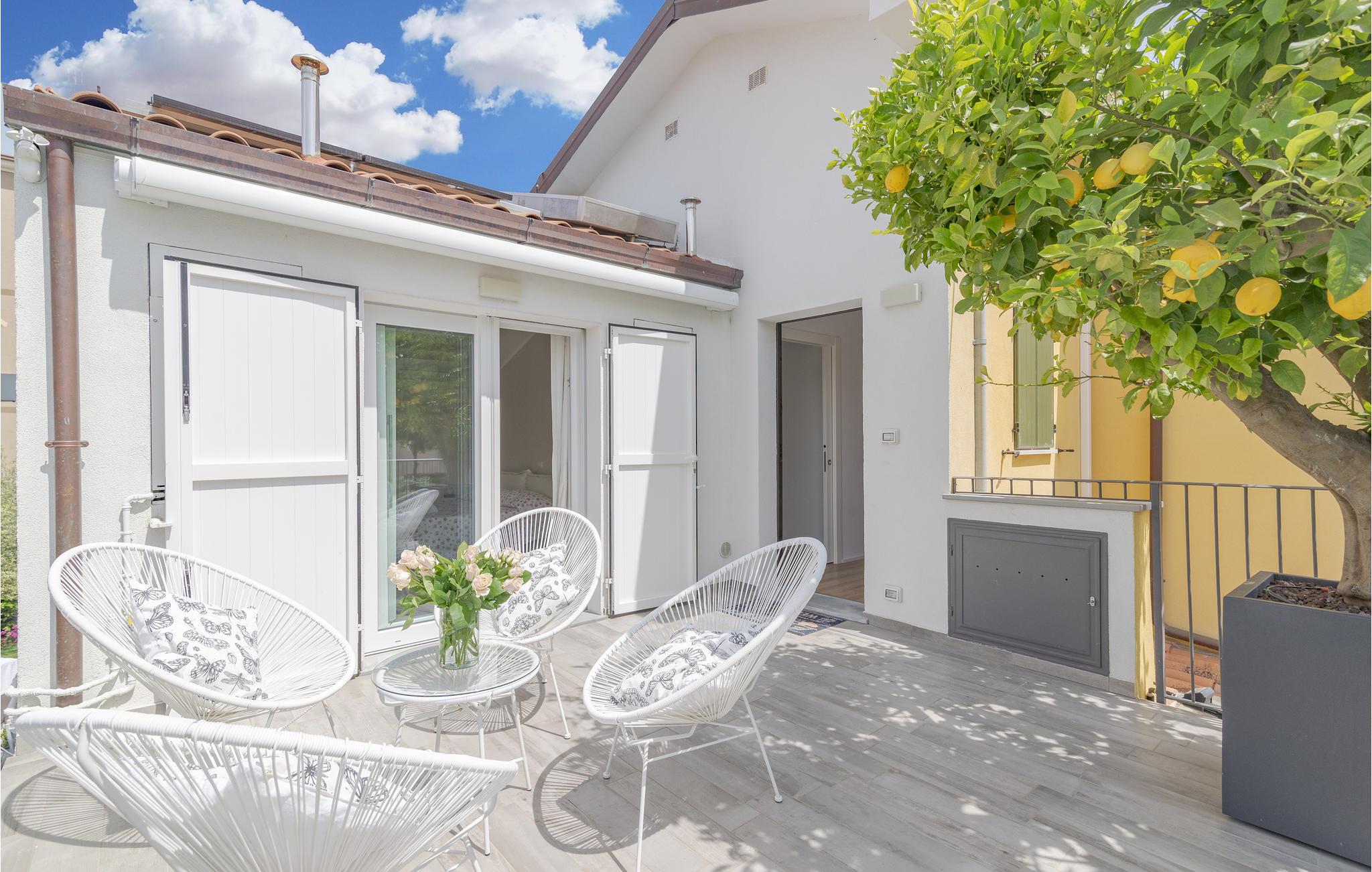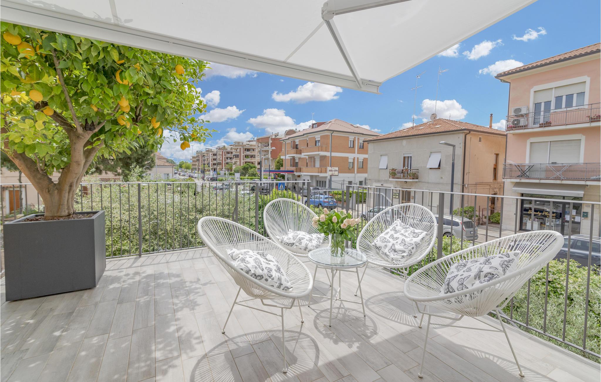 Velkommen til dette drømmeferiehus i Civitanova Marche, kun en kort gåtur fra den adriaterhavske sandstrand. Dette stilfulde, moderne hjem er en del af et tofamiliehus og tilbyder alt, hvad I behøver for en perfekt italiensk ferie. I stueetagen finder I en lys stue, et åbent køkken og en spiseplads, der er ideel til fælles måltider. Første sal har direkte adgang til en rummelig terrasse.