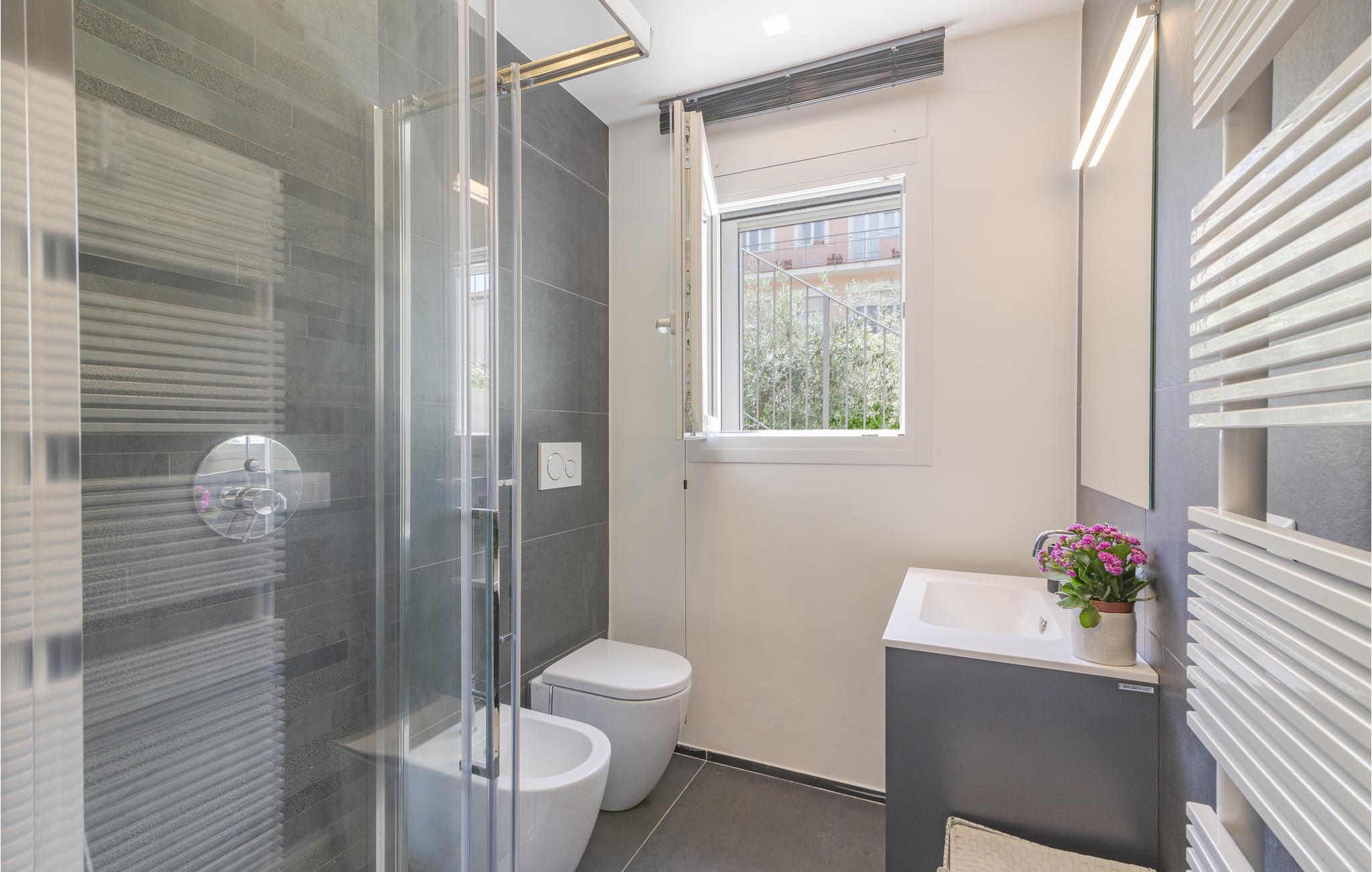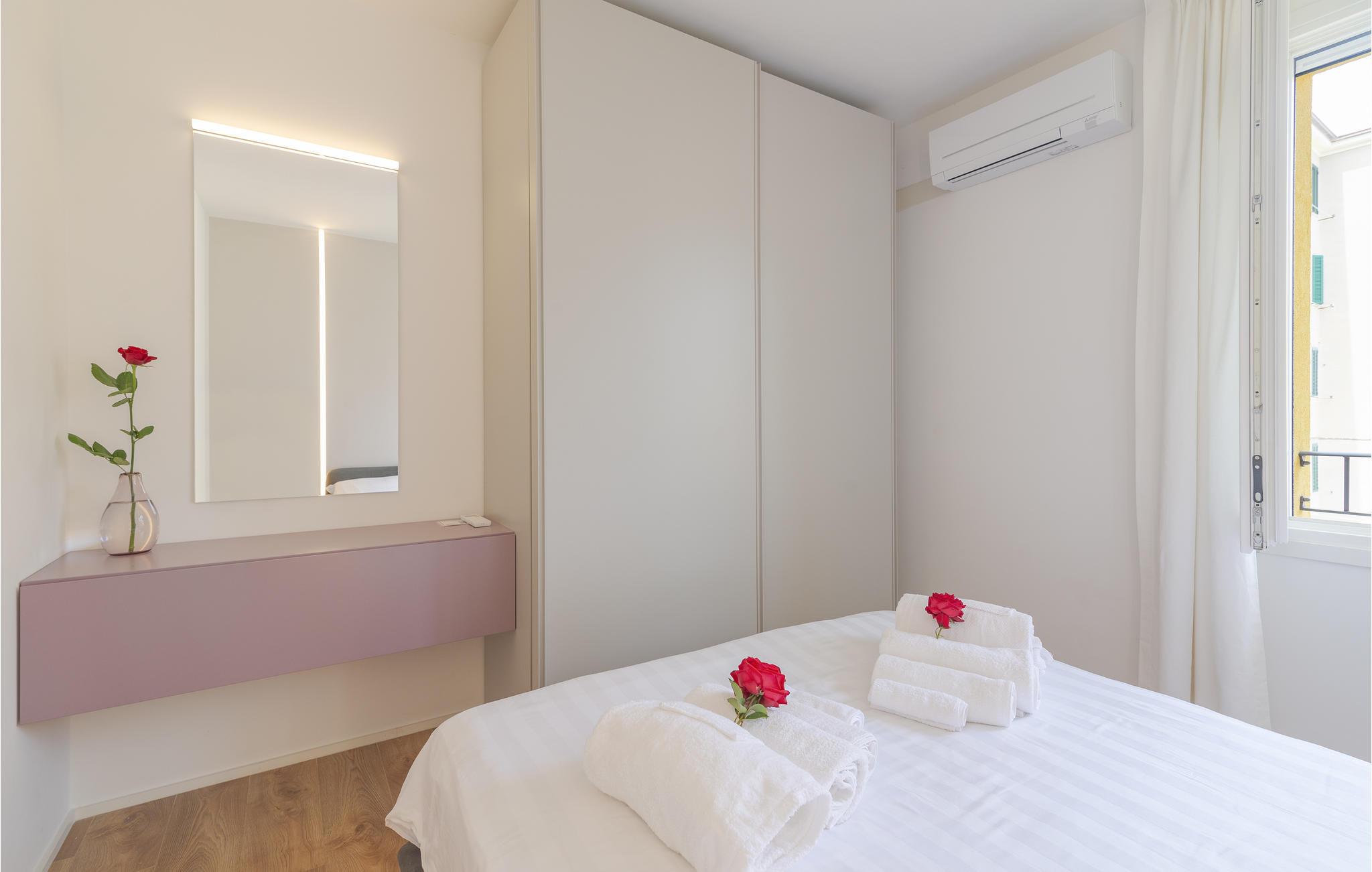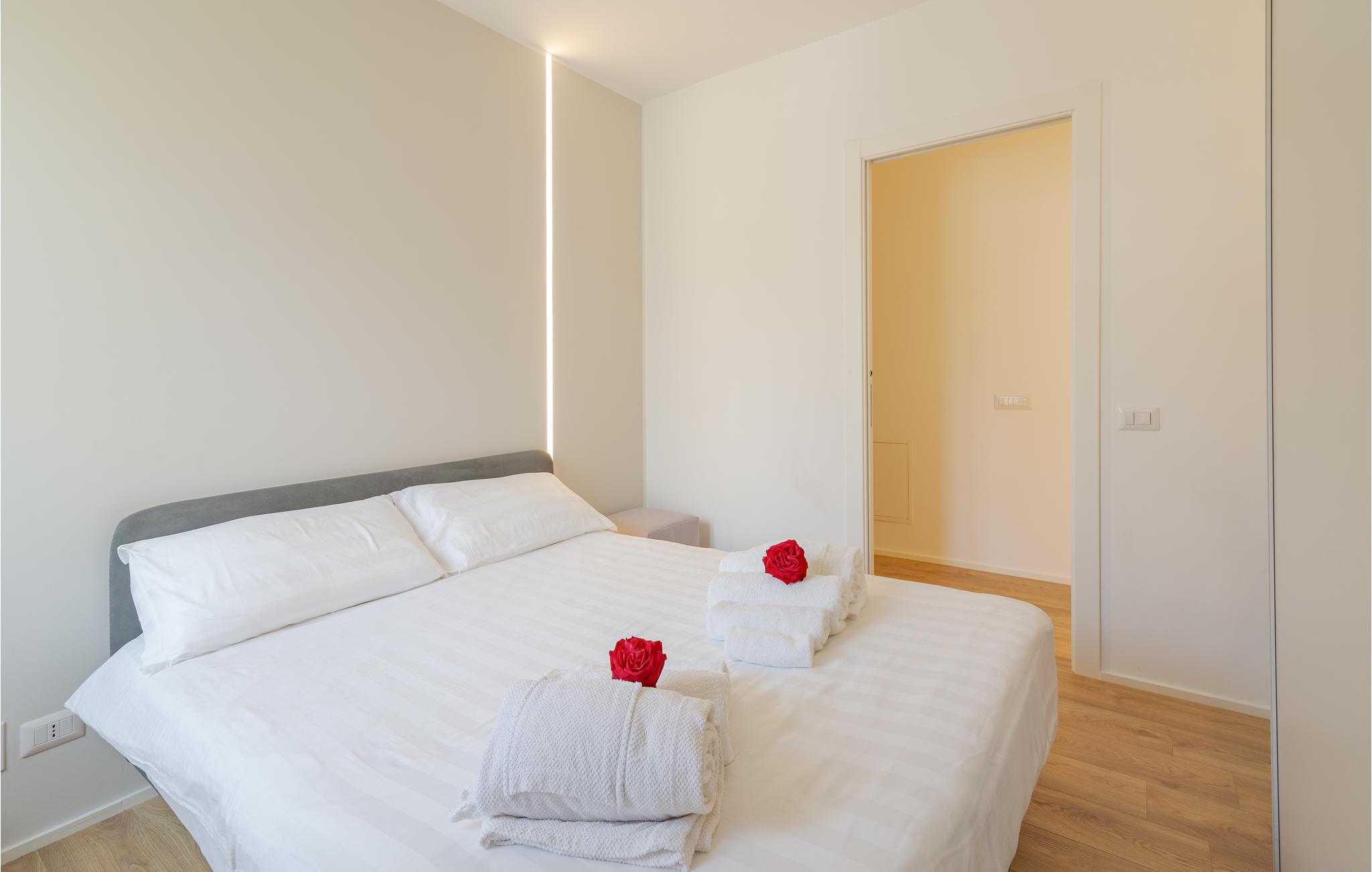 Velkommen til dette drømmeferiehus i Civitanova Marche, kun en kort gåtur fra den adriaterhavske sandstrand. Dette stilfulde, moderne hjem er en del af et tofamiliehus og tilbyder alt, hvad I behøver for en perfekt italiensk ferie. I stueetagen finder I en lys stue, et åbent køkken og en spiseplads, der er ideel til fælles måltider. Første sal har direkte adgang til en rummelig terrasse.