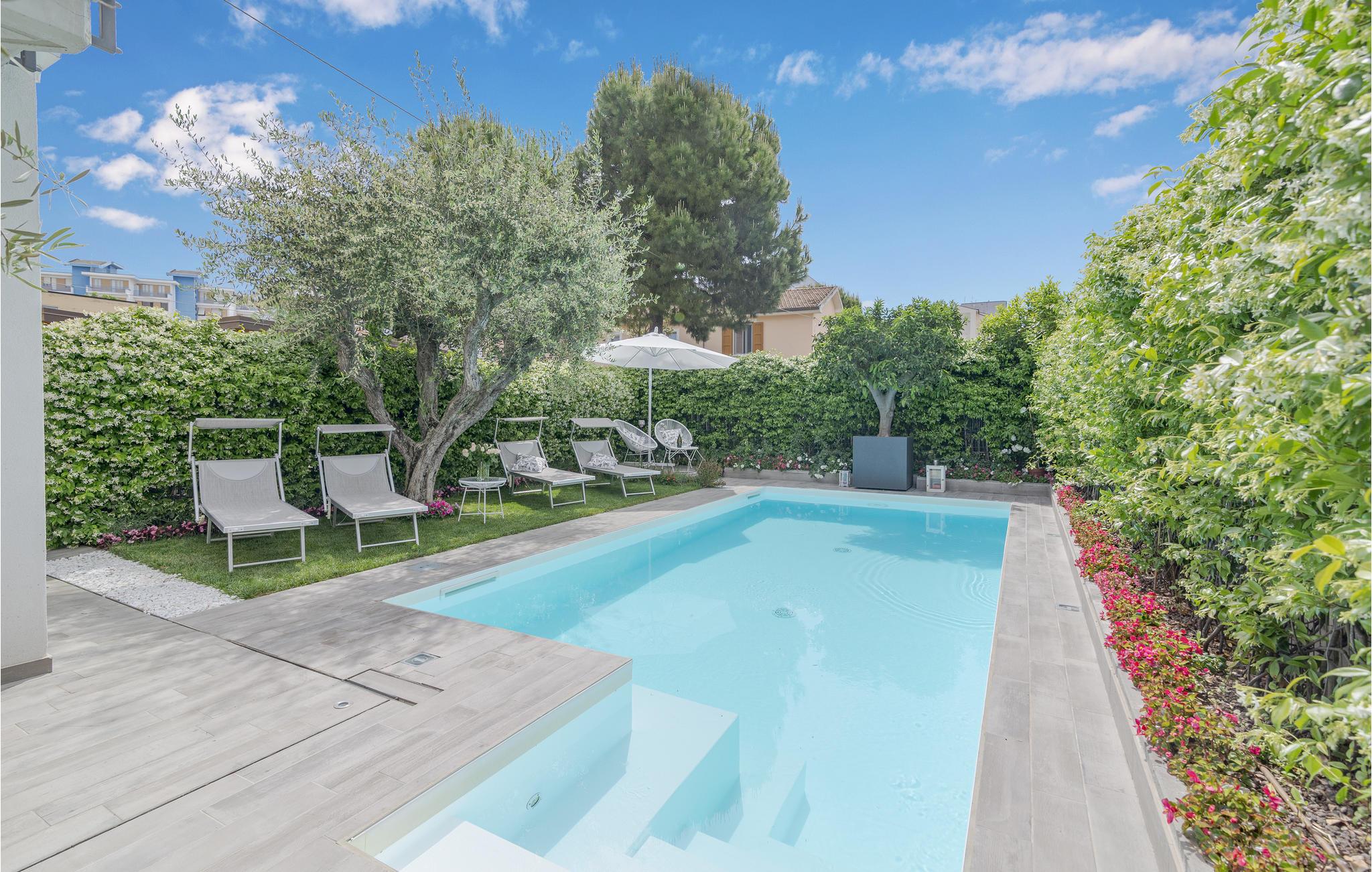 Den store have med sine modne oliventræer og farverige legeplads inviterer jer til at slappe af. Slap af på en af ??liggestolene ved den opvarmede pool, som har et hydromassageområde og et modstrømssystem. Forkæl jer selv med ren wellness i afslapningsområdet med spabad, sauna og hammam. Der er et grillområde til kulinariske lækkerier, perfekt til udendørs spisning.