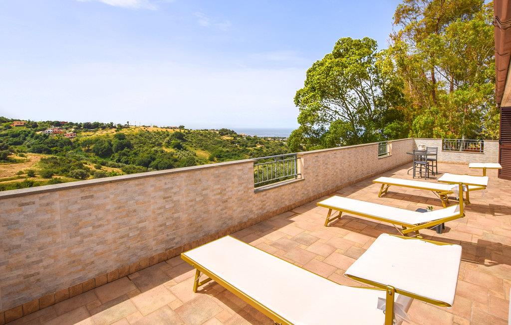 Træd ind i en rummelig feriebolig, der vil tilbyde jer en hyggelig og indbydende atmosfære. Her kan I slappe af og spise feriens måltider sammen med vener og familie på den store terrasse, mens I nyder den betagende og beroligende udsigt. Der er også en udendørs pool og liggestole, der vil gøre jeres ferie endnu mere afslappende.