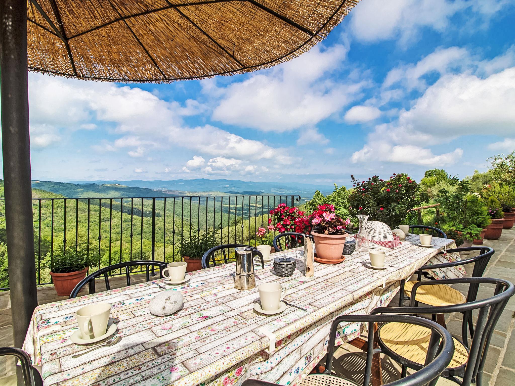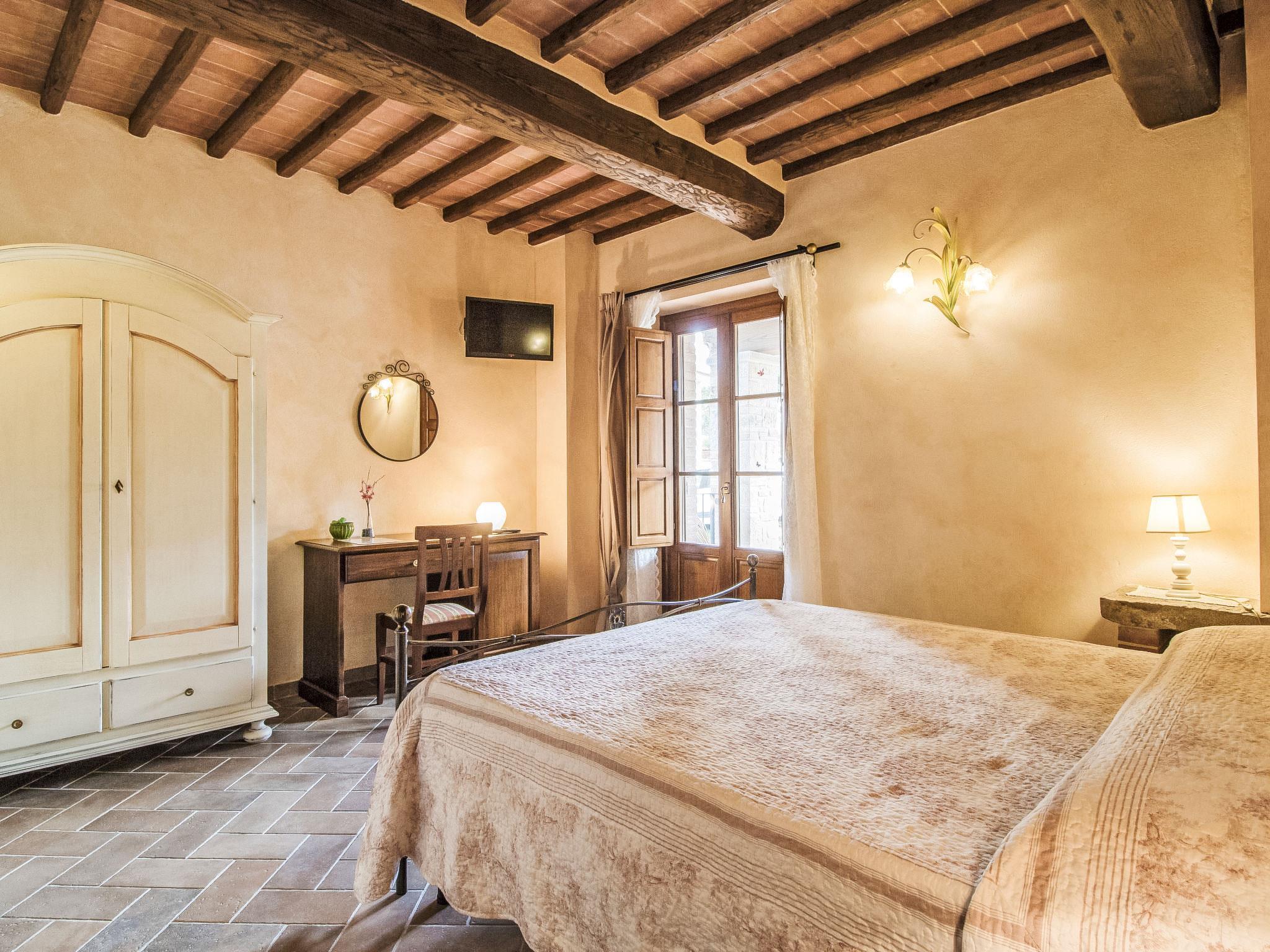 Located in a characteristict Tuscan village, at the top of a hill with breathtaking view of Val Di Chiana country house "Il Borgo di Gebbia", 500 m a.s.l., renovated in 2014. 3.5 km from the centre of Civitella in Val di Chiana, 23 km from the centre of Arezzo, 52 km from the centre of Siena, on top of a hill. Private: property 2 ha, swimming pool (above ground) fenced (7 x 4 m, depth 120 cm, seasonal availability: 07.May. - 24.Sep.). Room cleaning weekly (included). Cook on request (extra). Breakfast possible on request (extra). Parking on the premises. Shop 3.5 km, supermarket 8 km, restaurant 2 km, bus stop 3.5 km, thermal baths "Rapolano Terme" 44 km, bathing lake "Castiglion del Lago" 69 km. Golf course (18 hole) 23 km, tennis 14 km, riding stable 6 km. Nearby attractions: Castelnuovo Berardenga 36 km, Cortona 42 km, Gaiole in Chianti 43 km, Montepulciano 56 km, Pienza 63 km, Firenze 84 km.