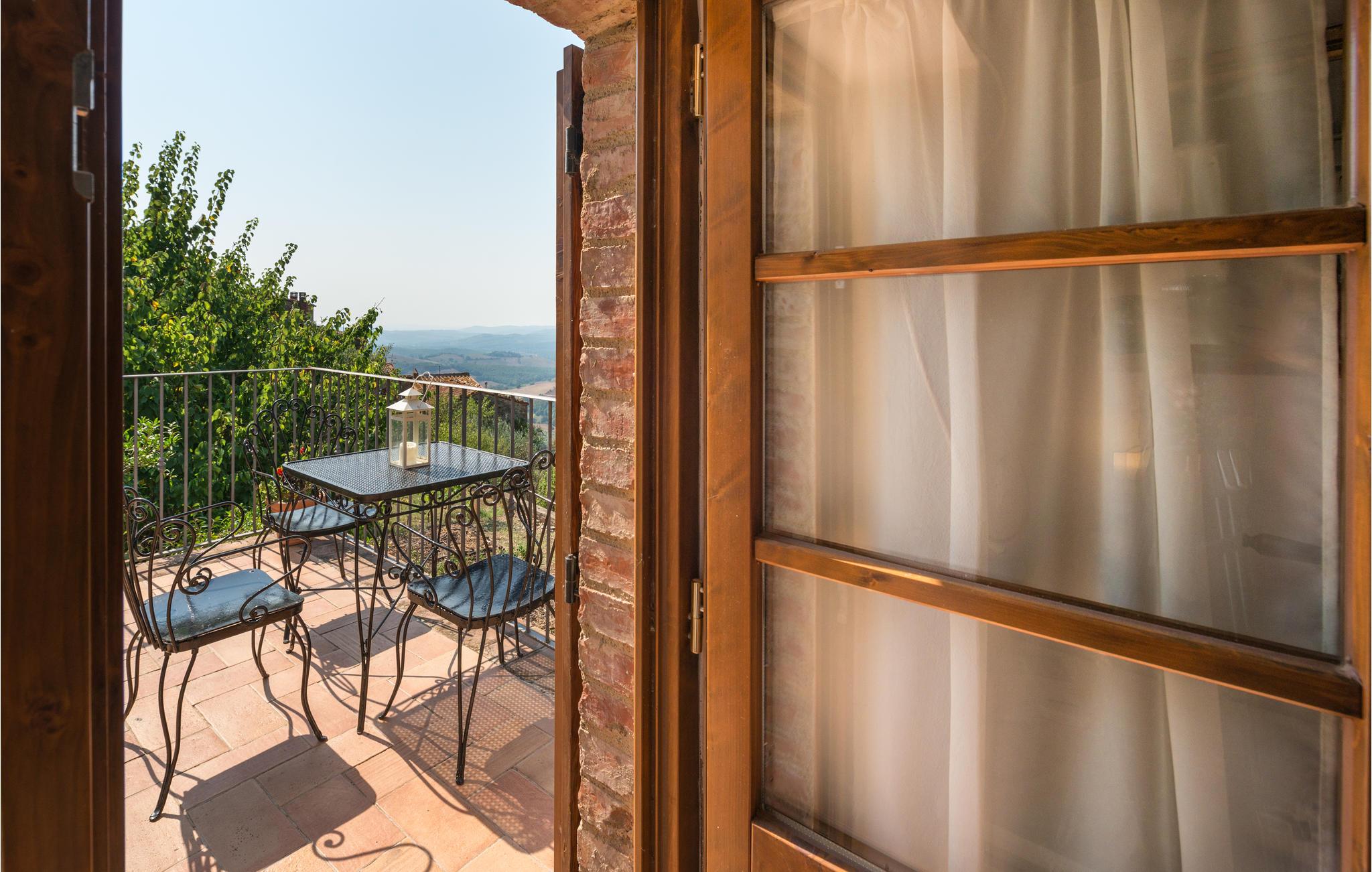 Huset strækker sig over to etager, som er forbundet med en vindeltrappe: i stueetagen er der et køkken, en spisestue med pejs og et badeværelse. Ovenpå er soveværelset med en lille balkon, hvor du kan spise morgenmad med udsigt over byen, landskabet og den omkringliggende vegetation. Den panoramiske have er ideel til afslapning eller til at nyde de fremragende lokale gastronomiske delikatesser og vine.