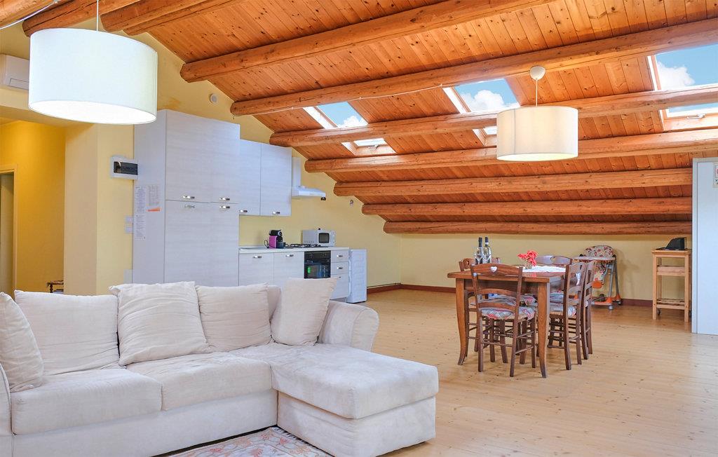 Feriehuset er en del af et parcelhus (den anden enhed er IVC202). Huset kan nås via en trappe. Fra vinduerne kan I beundre et storslået landskab i lagunen og på en klar dag se Venedig og klokketårnet i San Marco. Et stort rum i stueetagen er reserveret til middage med en kok, som kan bestilles direkte hos ejerne.