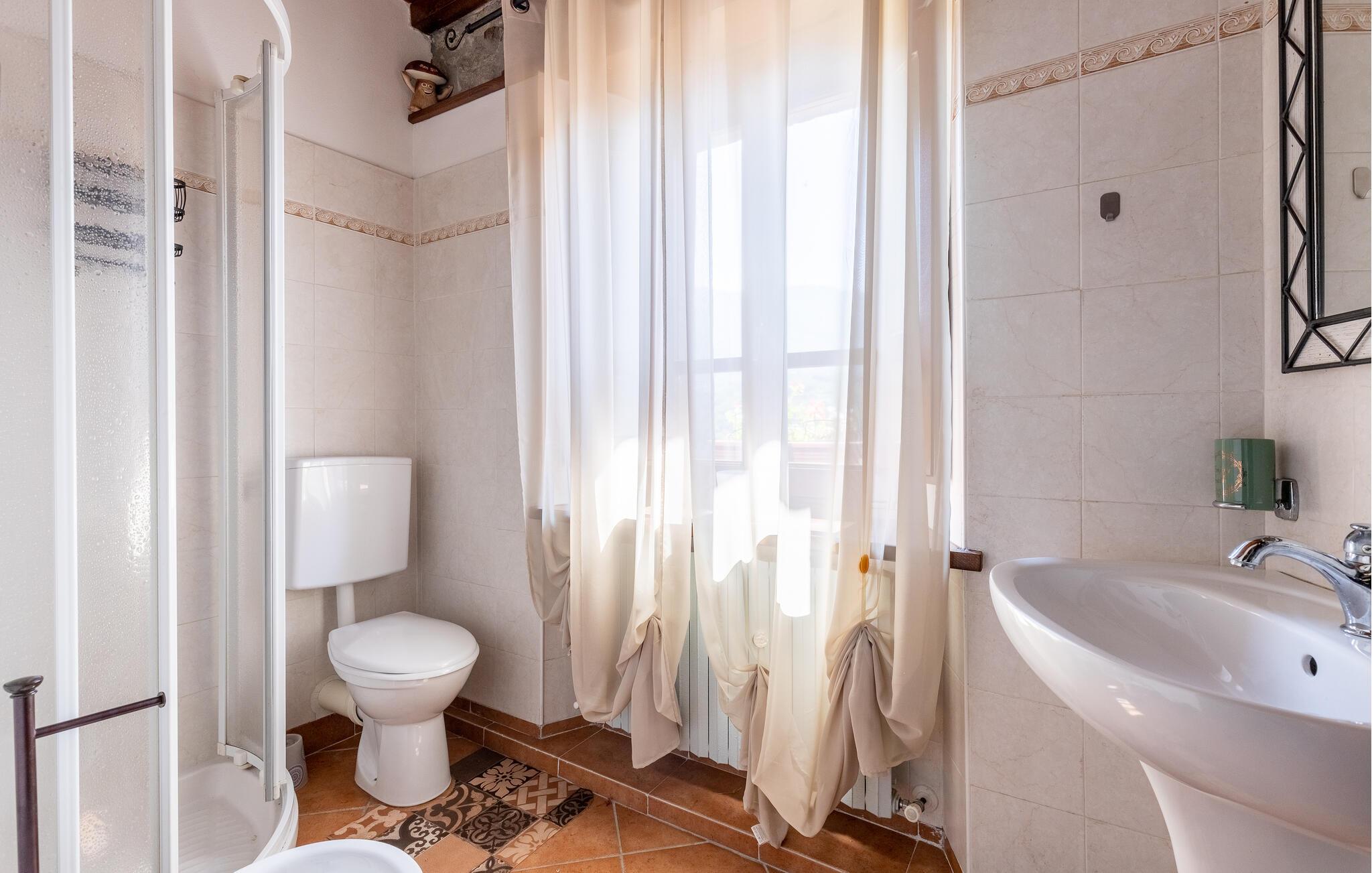 Et feriehus i Cogna, nær den imponerende Orichiella Nationalpark, lægger op til afslapning og store naturoplevelser. I vil føle jer hjemme, så snart I træder ind i det charmerende feriehus. De rustikke stenvægge og den hyggelige indretning udstråler traditionel toscansk charme. Slå jer ned i den åbne opholdsstue, som lægger op til at nyde livet og have det rart med de rustikke træbjælker foroven. Nyd jeres måltider i det rummelige spisekøkken.