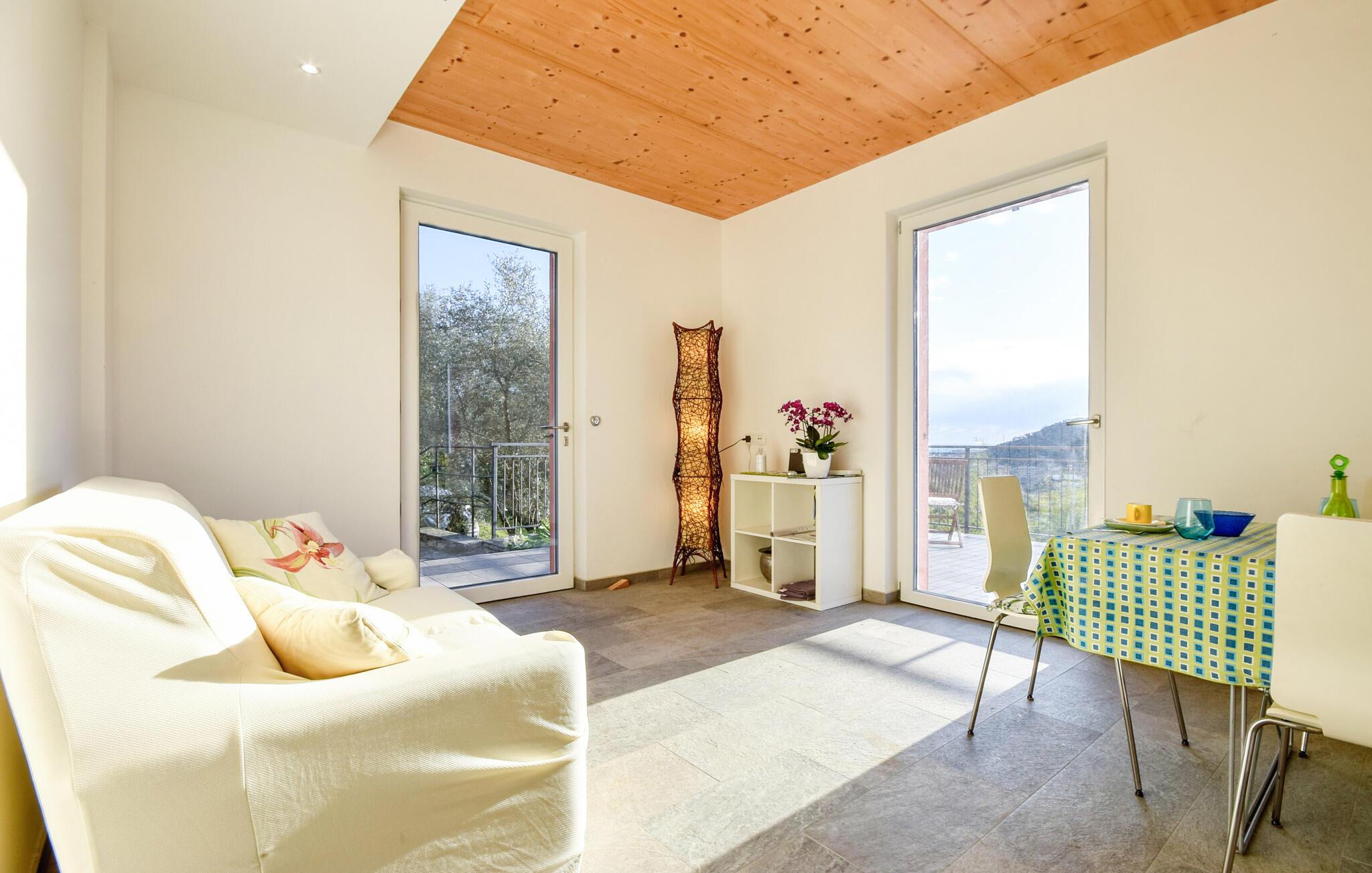 Udenfor er der en rummelig terrasse med spektakulær udsigt - det ideelle sted for et glas vin ved solnedgang. Nyd det milde klima med lange måltider udendørs, og slap af på en liggestol.