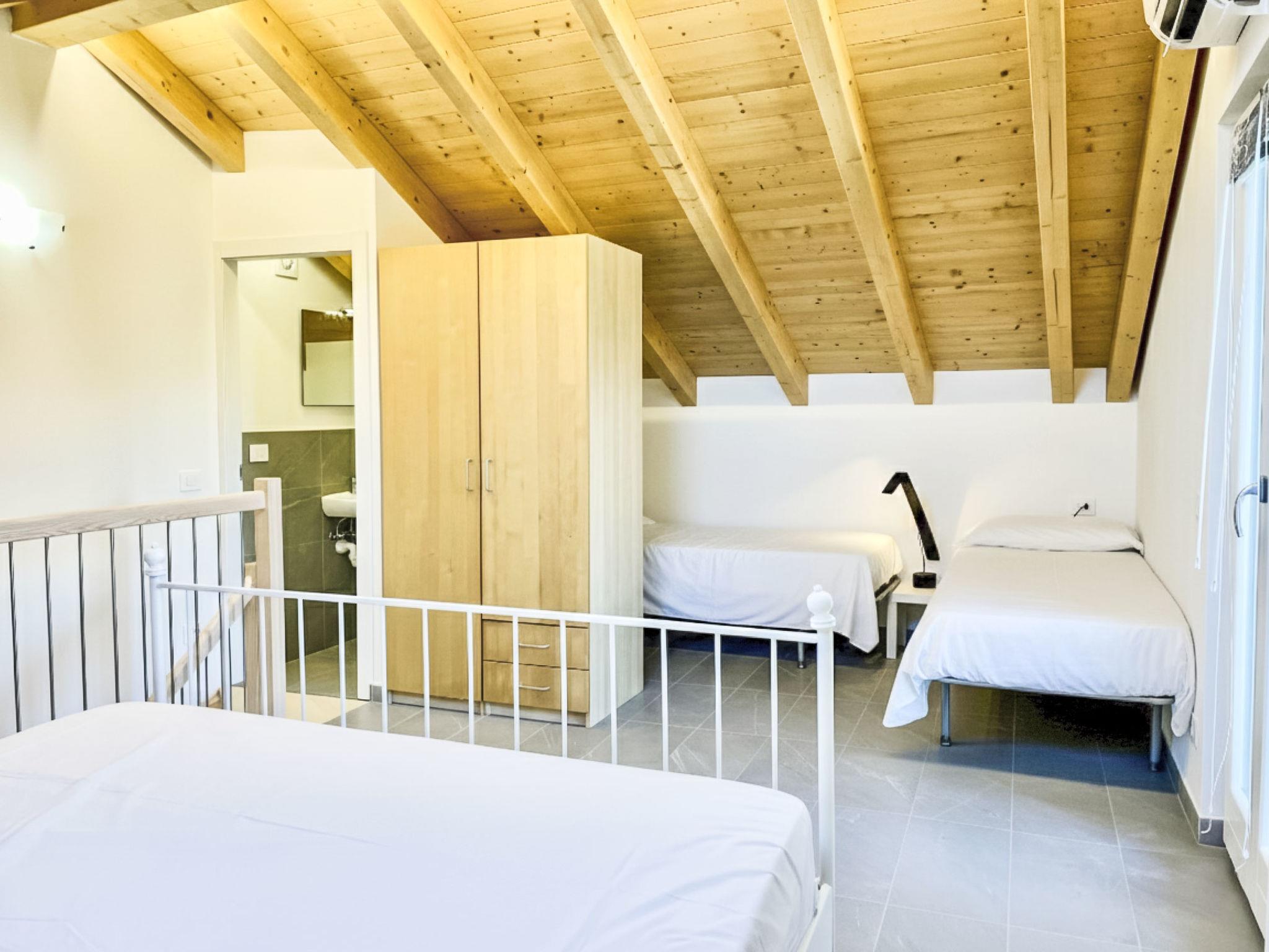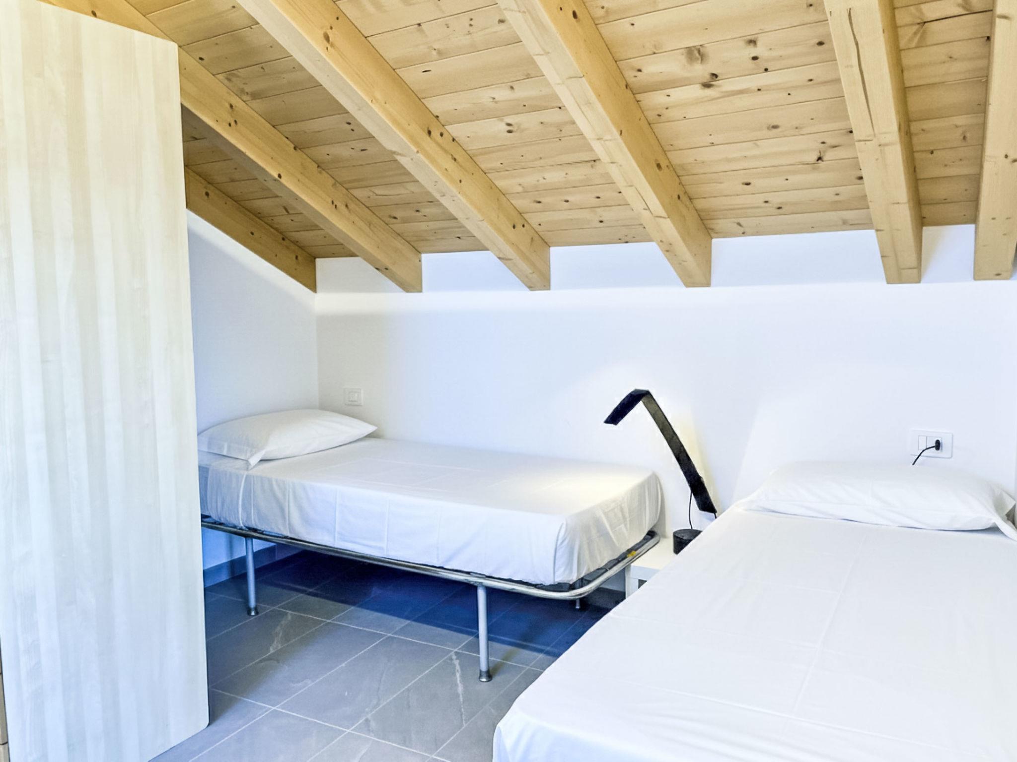 4-room house on 3 levels. Comfortable furnishings: open living/sleeping room with 1 sofabed (140 cm), dining table and TV. Exit to the terrace. 1 open room with 1 double bed. Small, open kitchen (oven, dishwasher, 4 induction hot plates, toaster, microwave, electric coffee machine). Shower/bidet/WC. Air-conditioning. Upper floor: open living/sleeping room with 1 sofabed (140 cm), dining table and TV. Exit to the balcony, to the terrace. Small, open kitchen (oven, dishwasher, 4 induction hot plates, toaster, microwave, electric coffee machine). Shower/bidet/WC. 2nd upper floor: 1 open room with 2 beds and 1 double bed. Sep. WC. Air-conditioning. 2 balconies, 2 large terraces. Terrace furniture, electric barbecue (portable), deck chairs (4). Very beautiful view of the lake, the mountains and the countryside. Facilities: washing machine, children's high chair, baby cot for up to 2 year olds, hair dryer. Internet (WiFi, free). Parking (3 cars). Please note: non-smoking house. Maximum 1 pet/ dog allowed. Fire extinguisher, no lift. No internal connecting door between the separated properties. IT097023C243QWIDWU