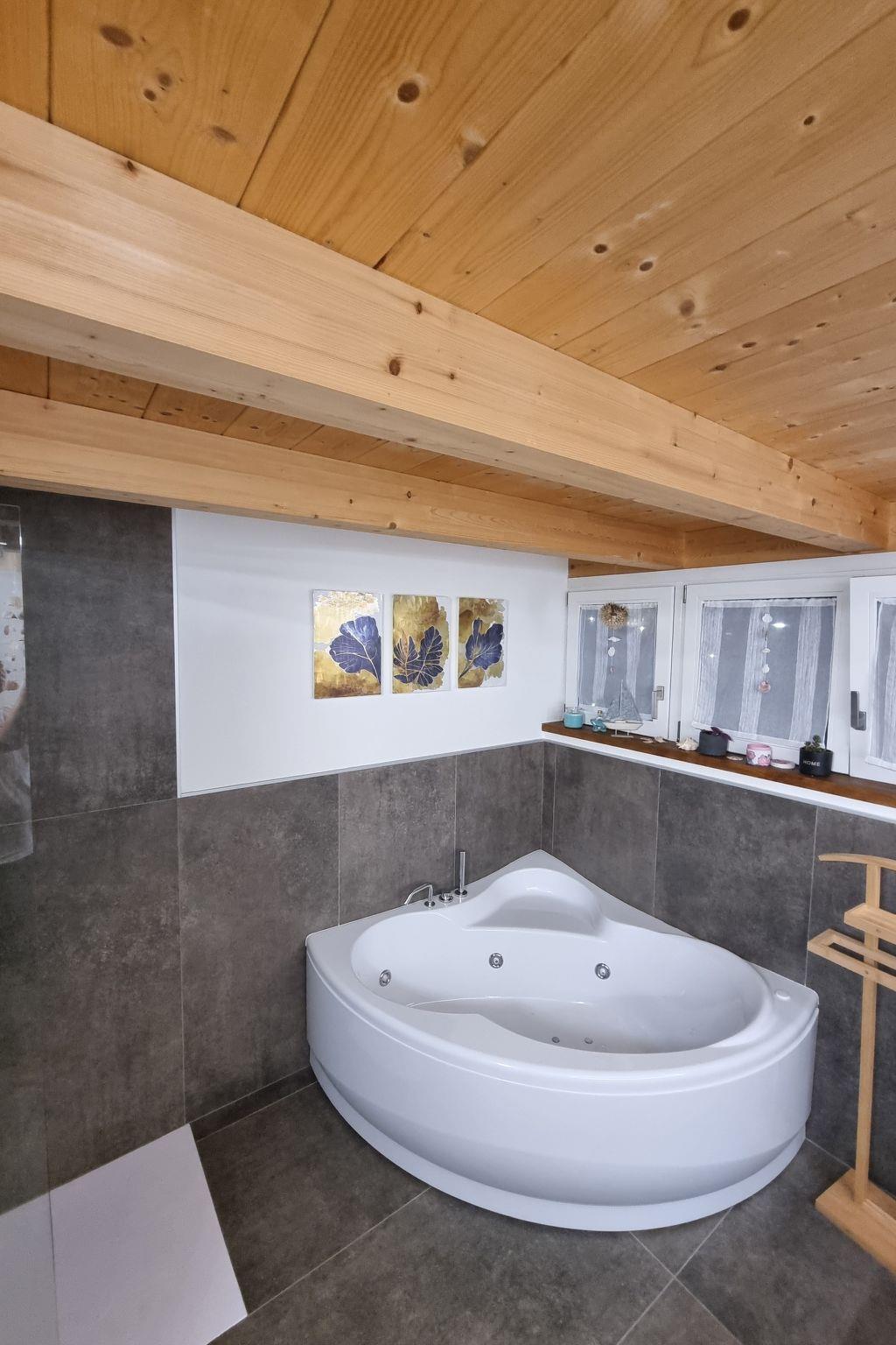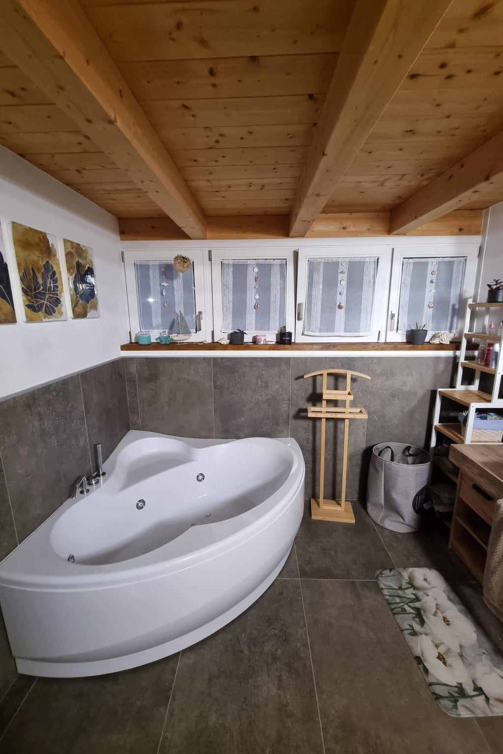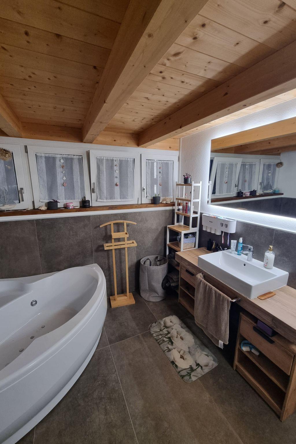 The centrepiece of the house is certainly the technically well-equipped kitchen, which is fitted with a three-ring hob, induction hob, an espresso pot alongside a capsule coffee machine and a dishwasher. A mini oven is available for small baking projects. Other amenities such as a washing machine for communal use, underfloor heating in all rooms and air conditioning in parts of the house ensure a comfortable stay. A smart TV for relaxing evenings, a fireplace for cosy hours and, last but not least, the whirlpool bathtub promise relaxation and entertainment for all ages.