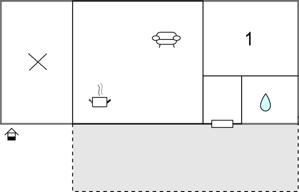 Opholdsstue/køkken - 2 Sovepladser. (Sofa, madras eller lignende).