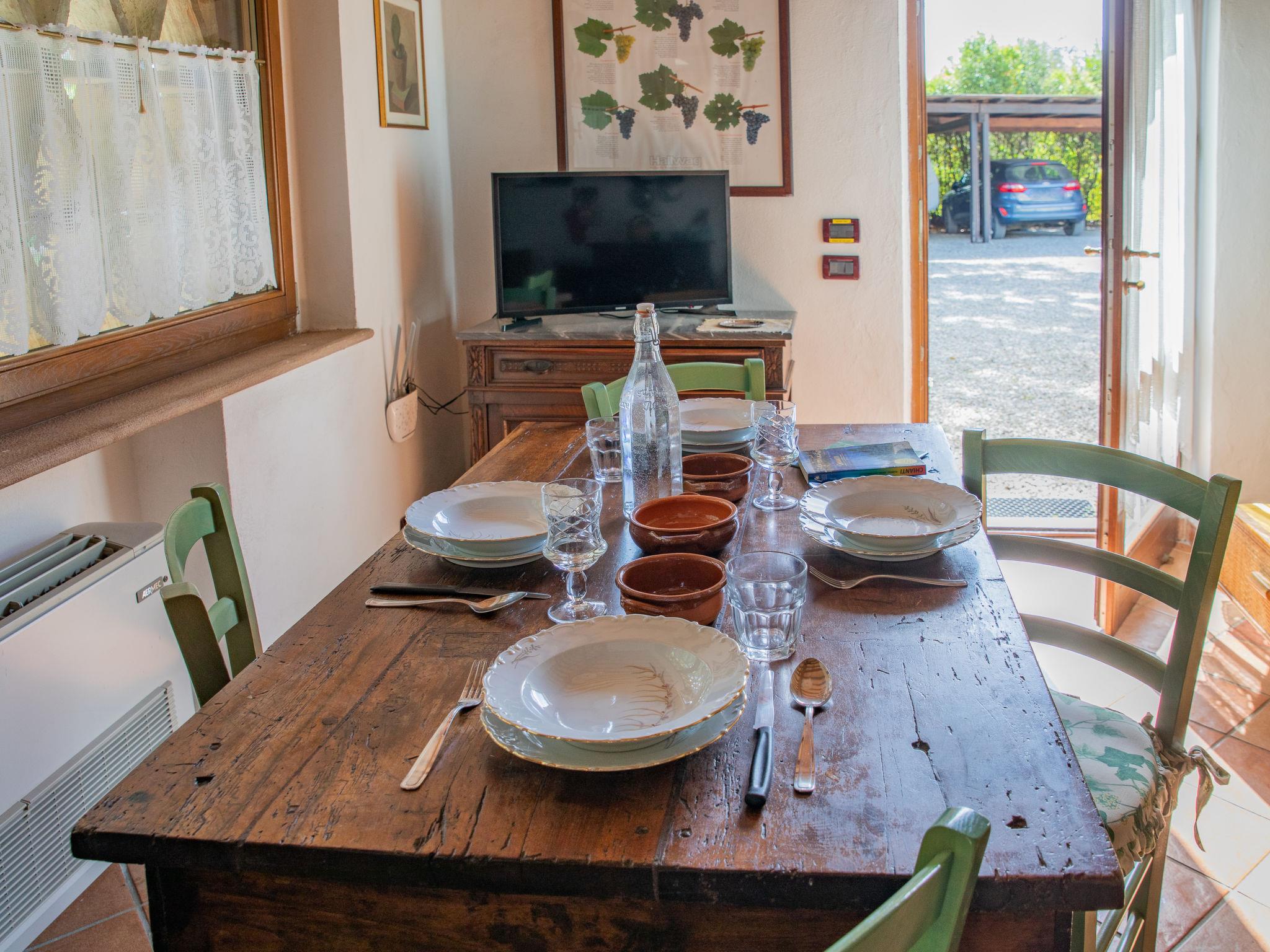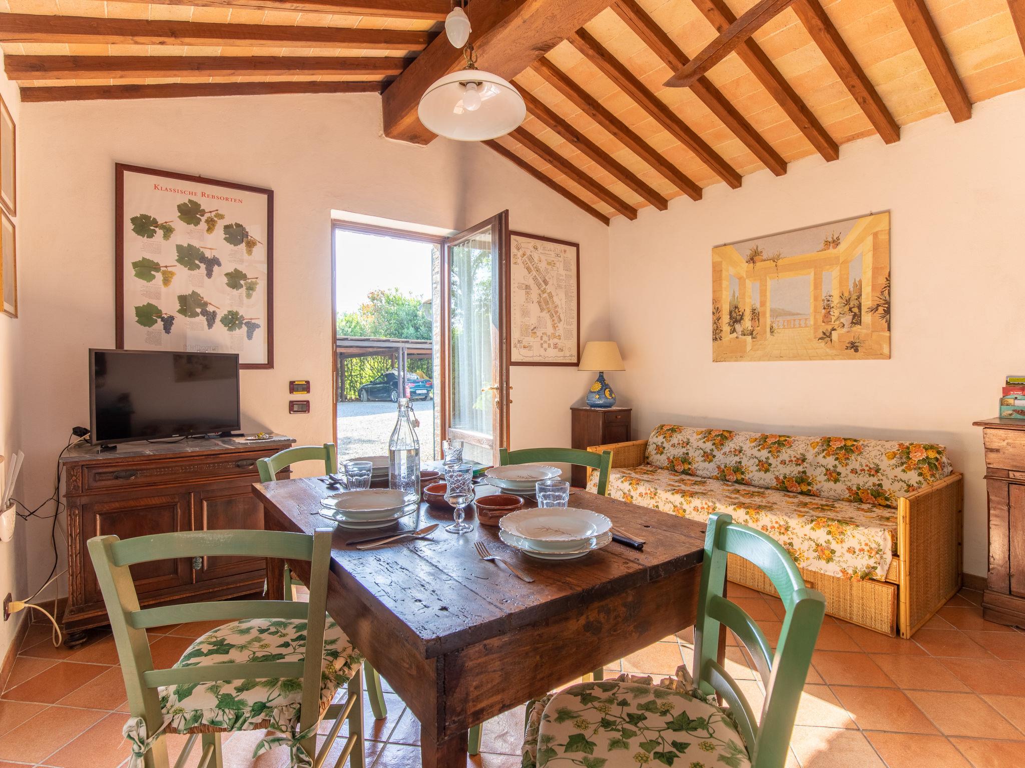 "Podere Fontemaggio - Fienile", 2-room house 40 m2, on the ground floor. Tasteful furnishings: living/sleeping room with 1 double sofabed, dining table and satellite TV. Exit to the patio. 1 room with 1 french bed (160 cm). Kitchenette (oven, dishwasher, 4 gas rings, electric coffee machine). Shower/WC. Heating. Natural stone floors. Patio. Beautiful view of the garden and the countryside. Facilities: children's high chair, baby cot. Internet (WiFi). Please note: non-smokers only. 1 small pet/ dog allowed. Private entrance. IT052012B524RJ6Q7V