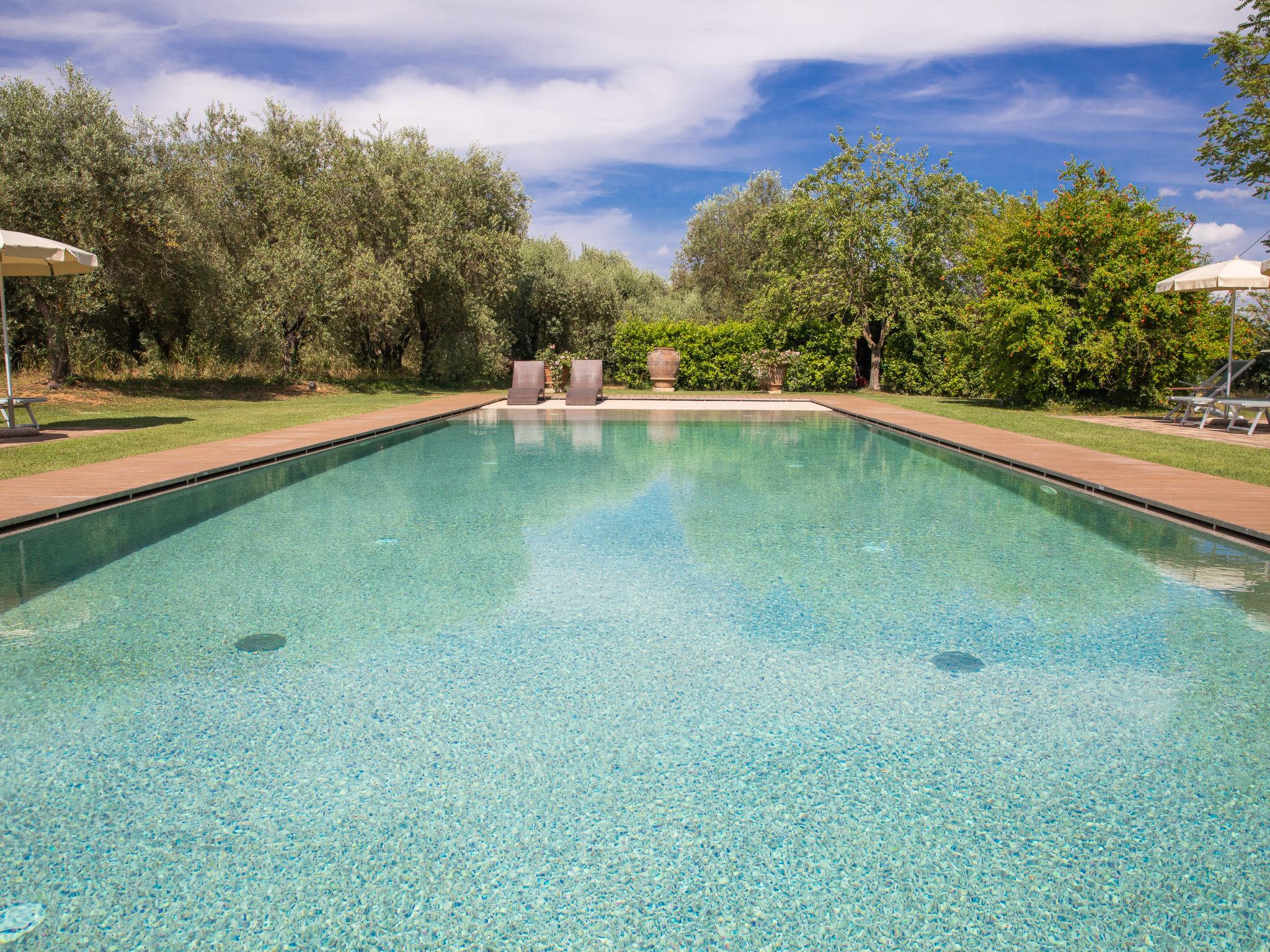 Campiglia 4 km from Colle di Val d'Elsa: Cosy country house "Podere Fontemaggio", surrounded by trees and fields. 2 houses in the residence. 4 apartments in the residence. In the district of Campiglia (700 m) 4 km from the centre of Colle di Val d'Elsa, 13 km from the centre of San Gimignano, outside the resort, 33 km from the centre of Siena. For shared use: property 3 ha, garden with plants and trees, orchard, swimming pool (16 x 6 m, depth 140 cm, seasonal availability: 25.Apr. - 17.Oct.) with salt-electrolysis pool-cleaning system. Shower/WC in the pool area, outdoor shower, terrace, barbecue. In the house: washing machine, tumble dryer (for shared use). 400 m long motor access (via unmade road). Parking on the premises. Grocery 700 m, supermarket 4 km, restaurant 4 km, bus stop 700 m, railway station "Colle di Val d'Elsa" 4 km, park "Cecina Mare" 60 km, outdoor swimming pool 4 km, indoor swimming pool 4 km. Local sale of farm products. Please note: residence with electric gates. The owner lives on the same property.