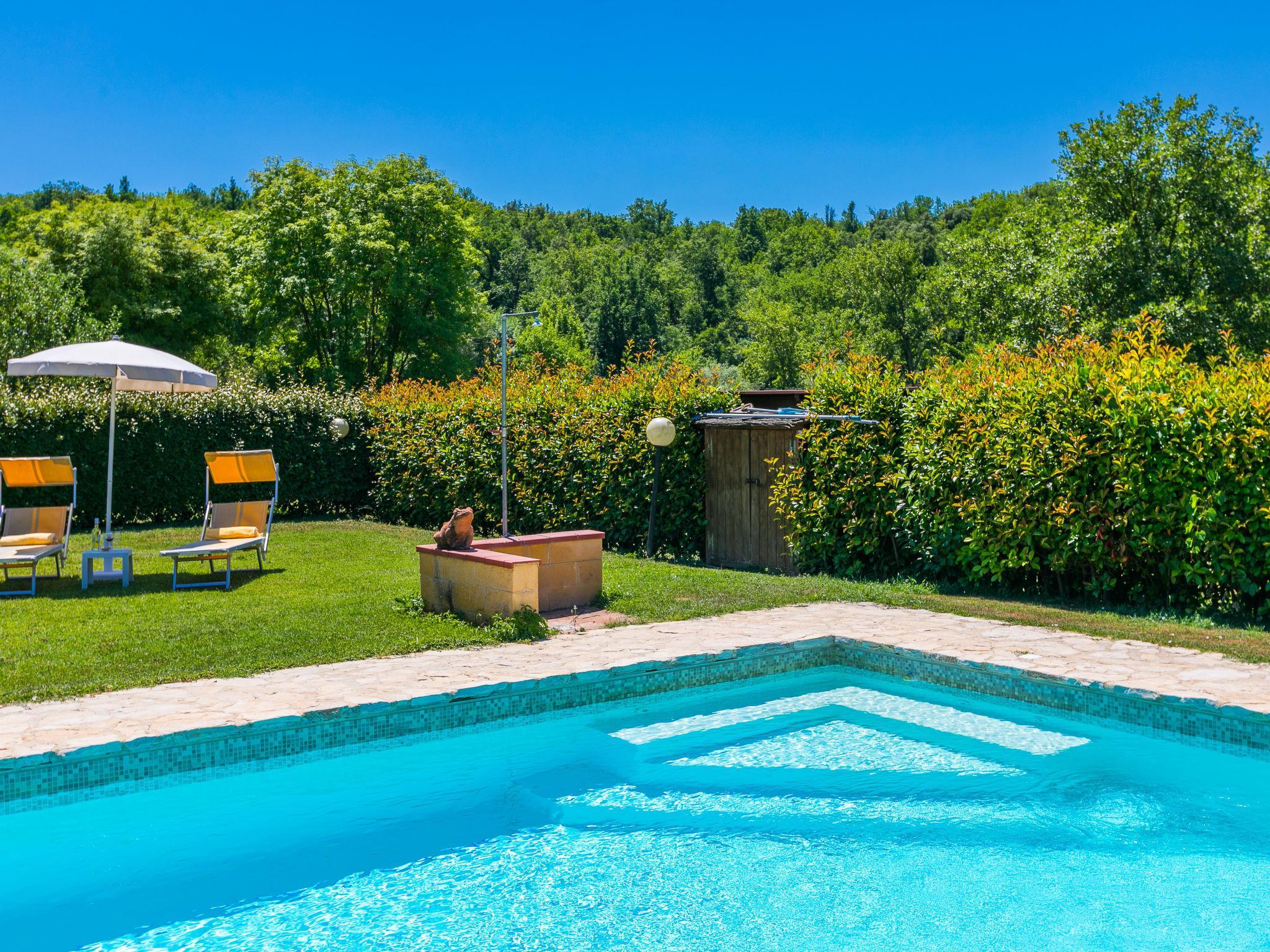 Colle di Val d'Elsa: Large, comfortable cottage "Podere San Giuseppe", surrounded by trees. Property composed of main house and outbuilding 7 km from the centre of Colle di Val d'Elsa, in a secluded, sunny position, 100 m from the edge of the forest, in the countryside. Private: natural state property, garden, swimming pool fenced (6 x 12 m, seasonal availability: 15.May. - 30.Sep.). Outdoor shower, pool house, table tennis, patio, terrace, garden furniture, barbecue, pool maintenance by the owner/gardener. In the house: central heating system, air conditioning. 1 km long bumpy motor access. Parking at the house on the premises. Bus stop "Colle di Val d'Elsa" 7 km. Please note: car recommended. Baby equipment (included). Groups of teenagers on request only. Suitable for events.