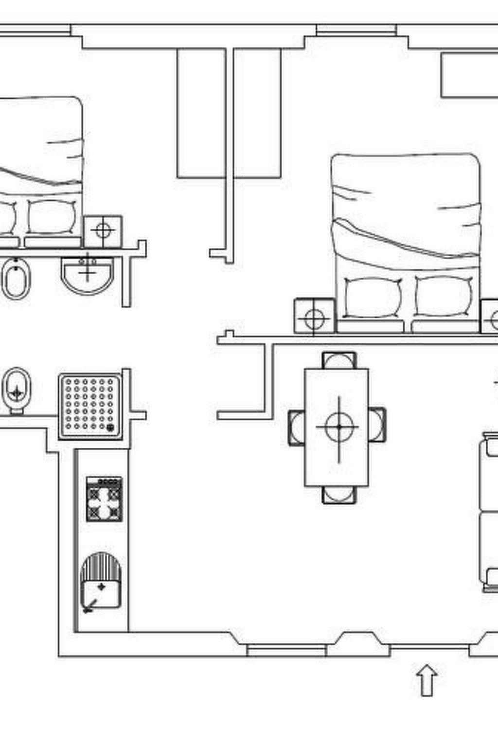 Holiday flat on the ground floor measuring 54 sq m. It consists of 1 living room with kitchenette and double sofa bed, 1 double bedroom, 1 twin bedroom and a bathroom with shower.