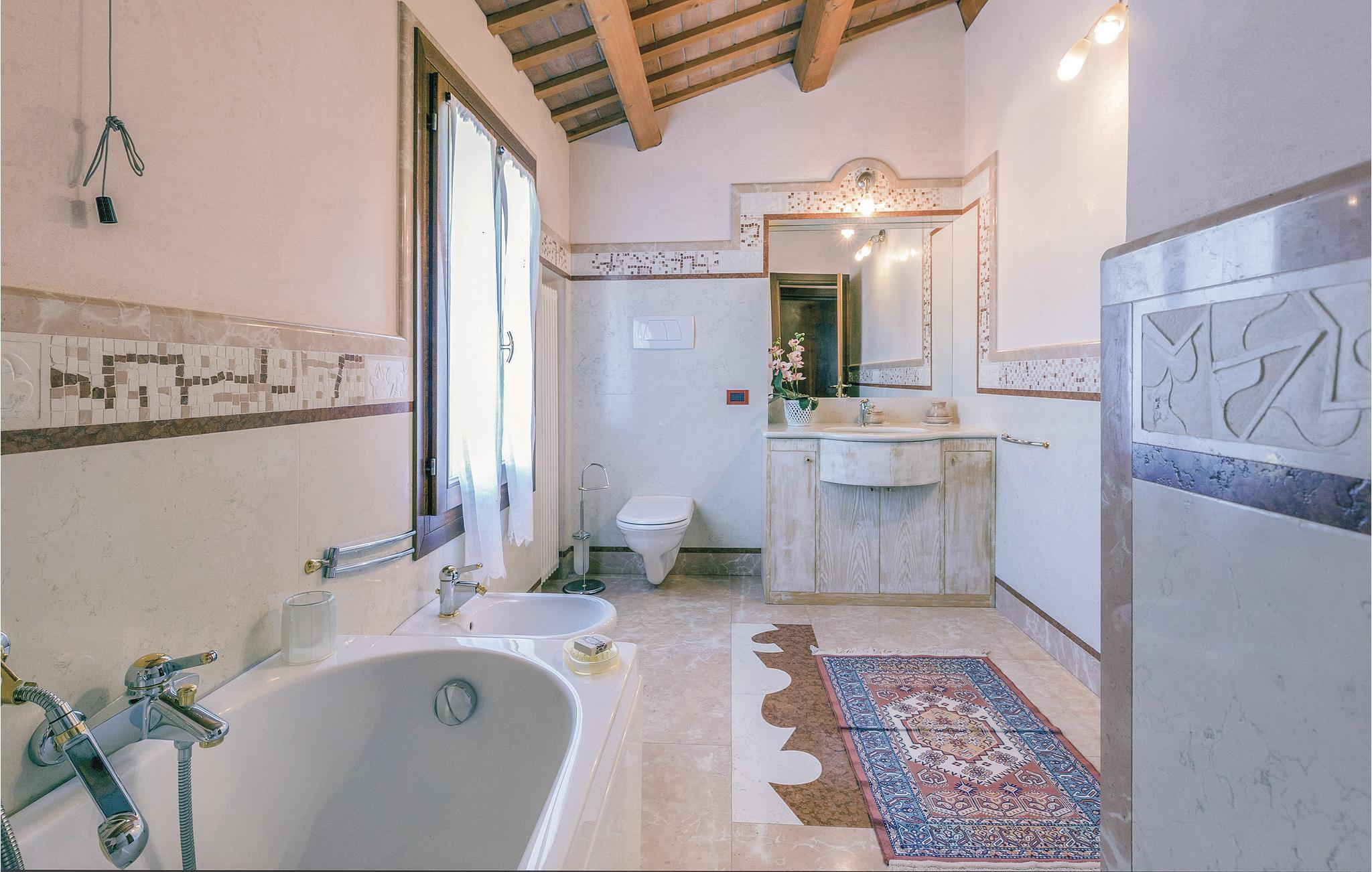 Dette gamle landhus på to etager er tegnet og bygget af ejeren selv. Han er en kendt venetiansk kunstner og har brugt marmor og sten til at dekoreret rummene. Huset er omgivet af en stor park med fantastisk udsigt ud over det venetianske landskab og med hyggelige siddegrupper, hvor I kan slappe af og nyde ferien. Omgivelserne er gode, både til at udforske naturparken i de omgivende bakker, men også til at besøge den nærliggende by Padua (30 km), Palladios villaer i Vicenza (39 km). Desuden kan vi anbefale termerne i Abano (16 km) og den verdensberømte by Venedig (85 km), og Verona, operaens og Romeo og Julies by (80 km). Få kilometer fra huset kan I tage båden til rivieraen ved udløbet af floden Brenta, hvor I kan se villaerne der tilhører adelen fra Venedig. Barneseng på forespørgsel og mod betaling.