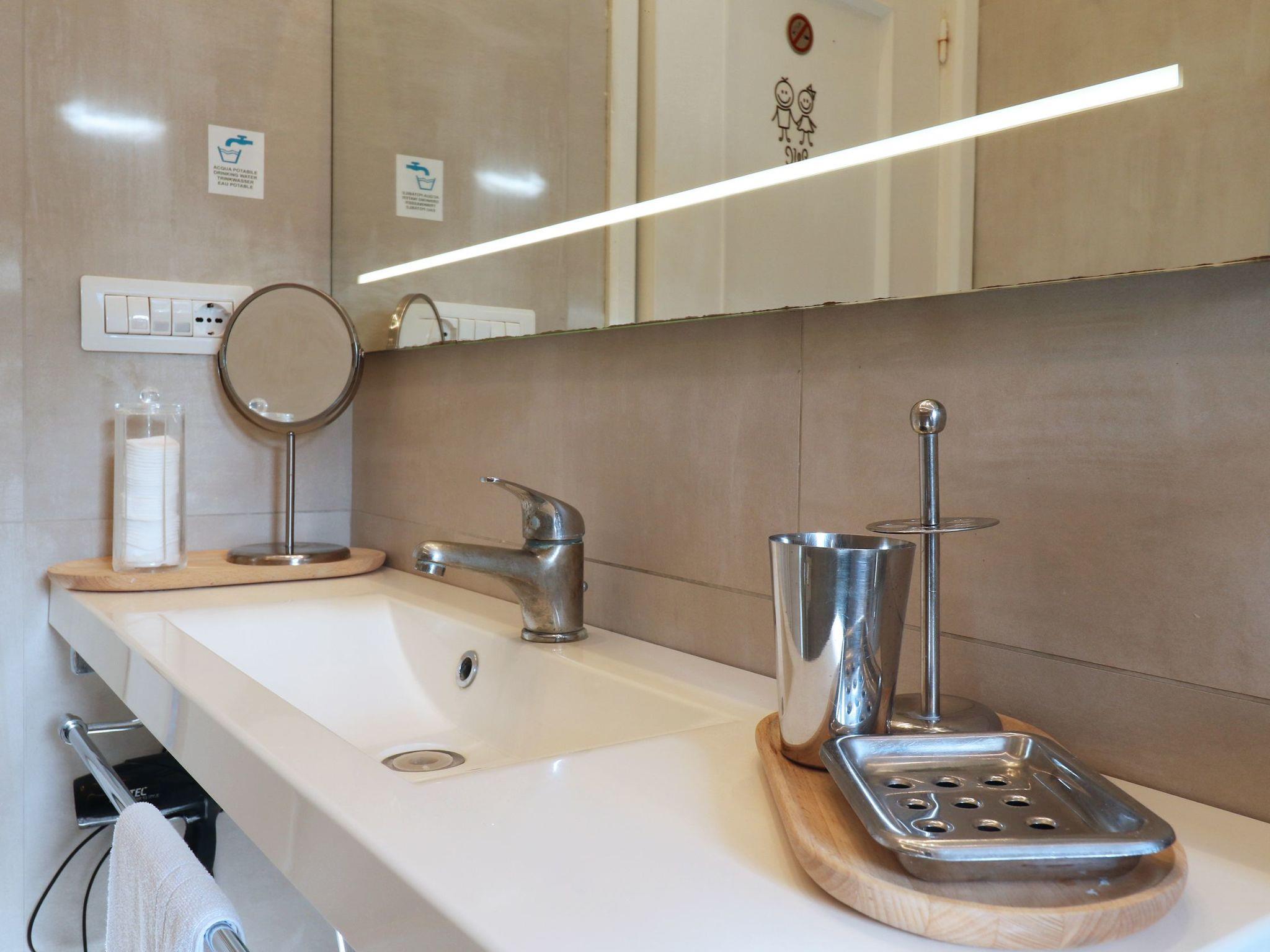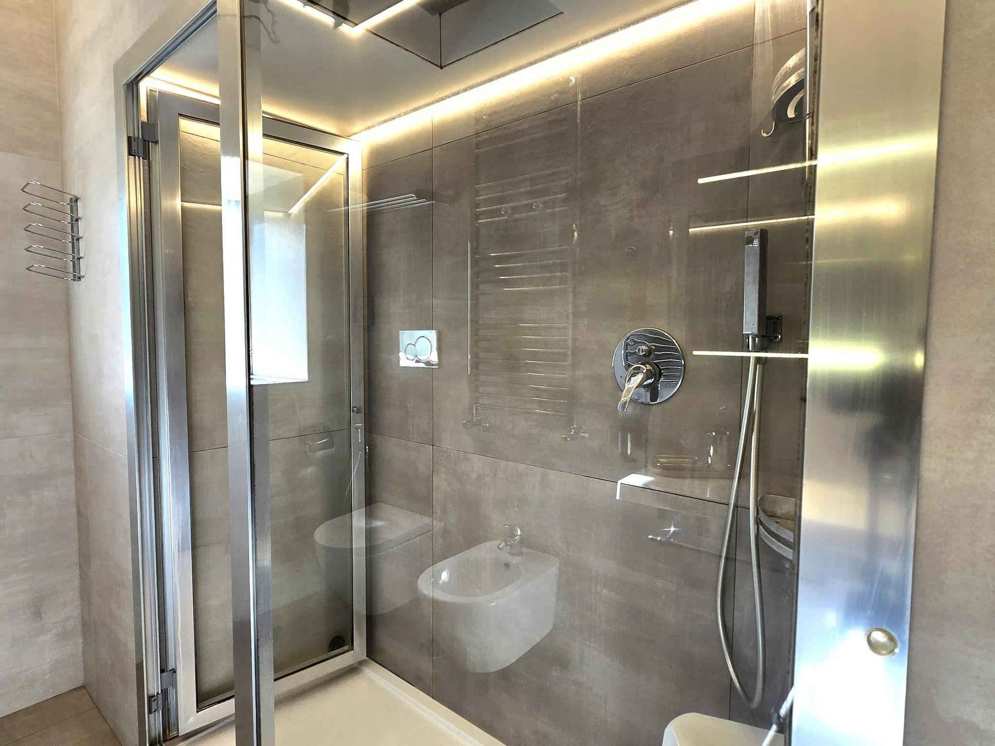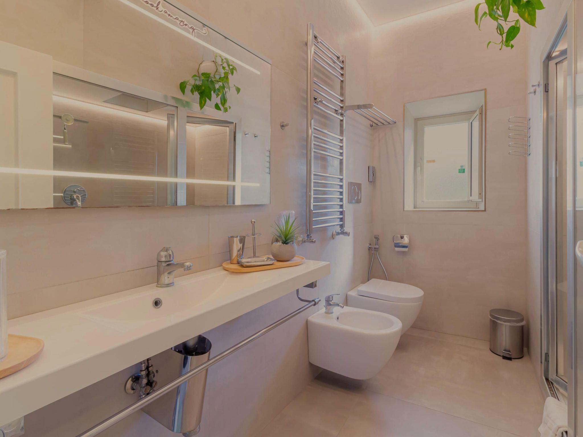 The two bathrooms on the first floor have a large mirror, bidet, toilet and shower cabin, and there is also a toilet in the attic.