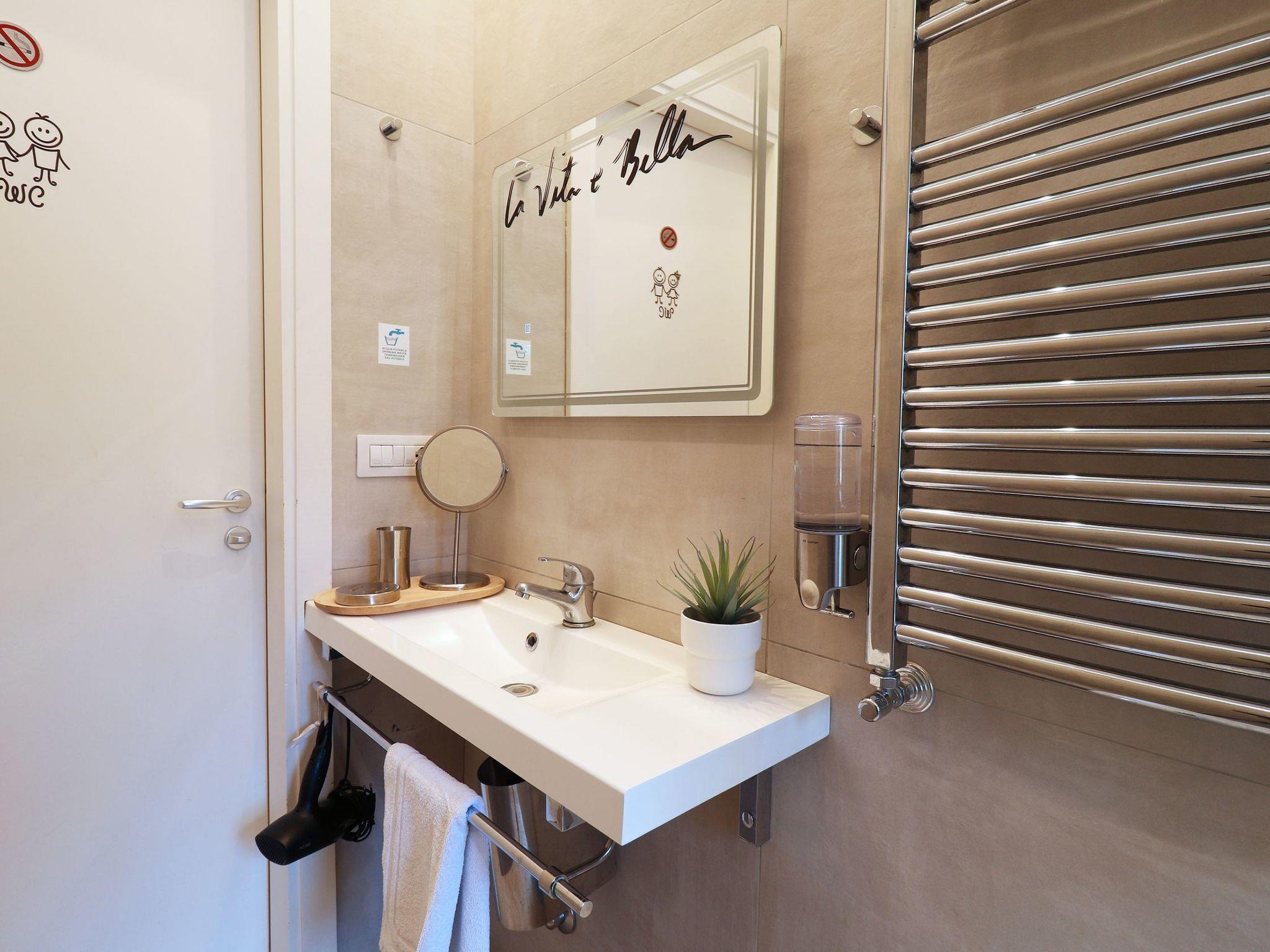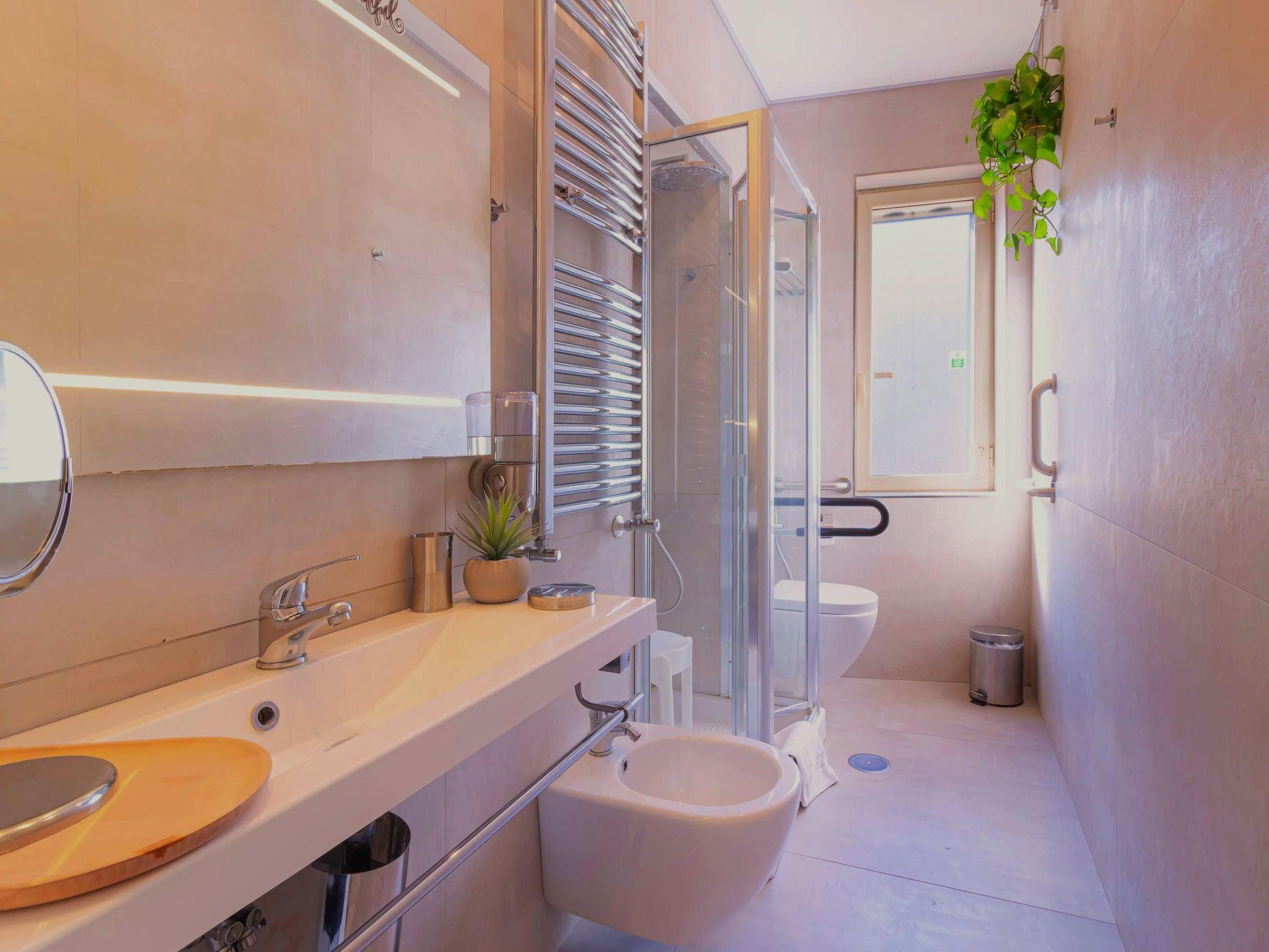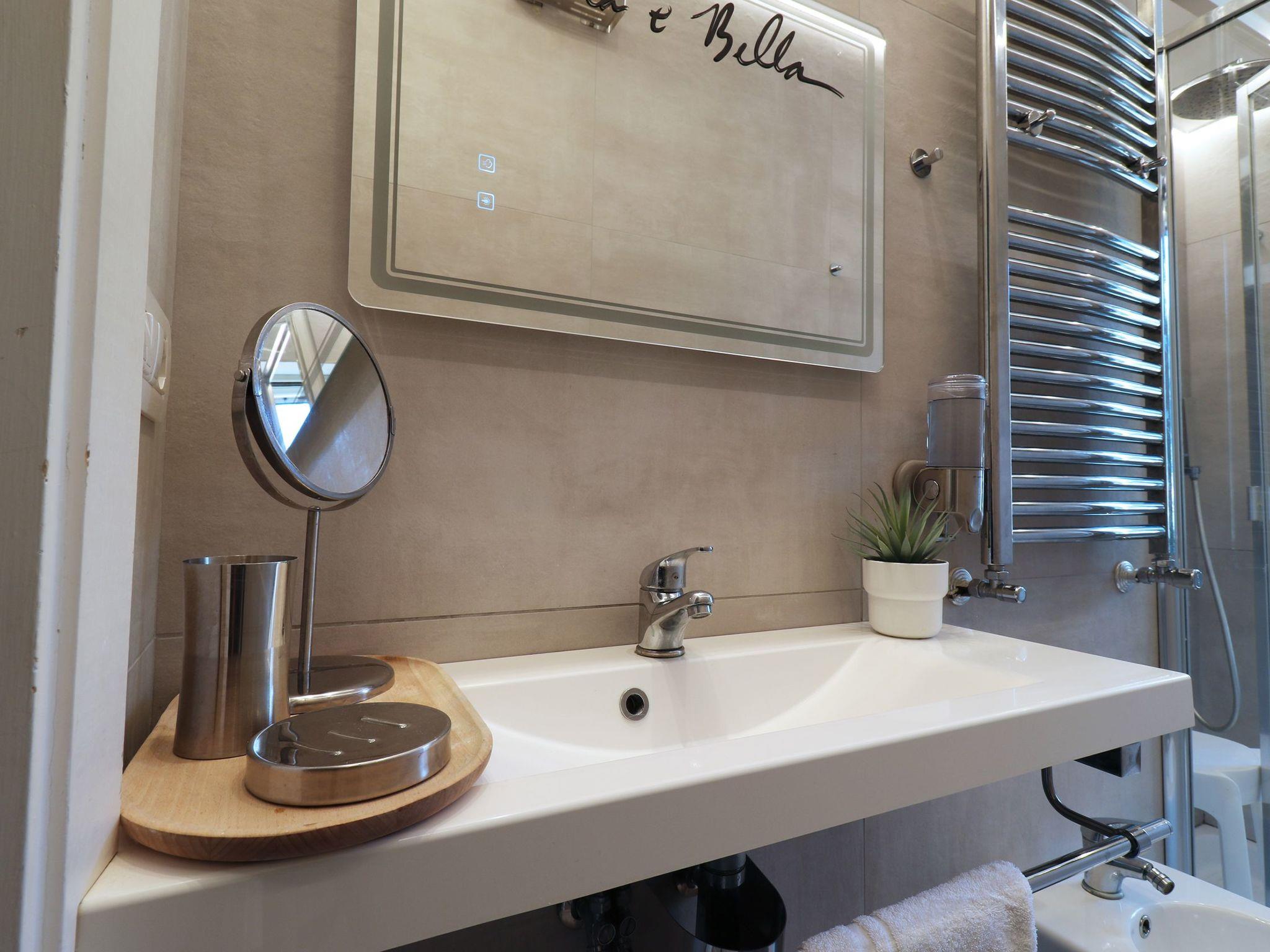 The two bathrooms on the first floor have a large mirror, bidet, toilet and shower cabin, and there is also a toilet in the attic.