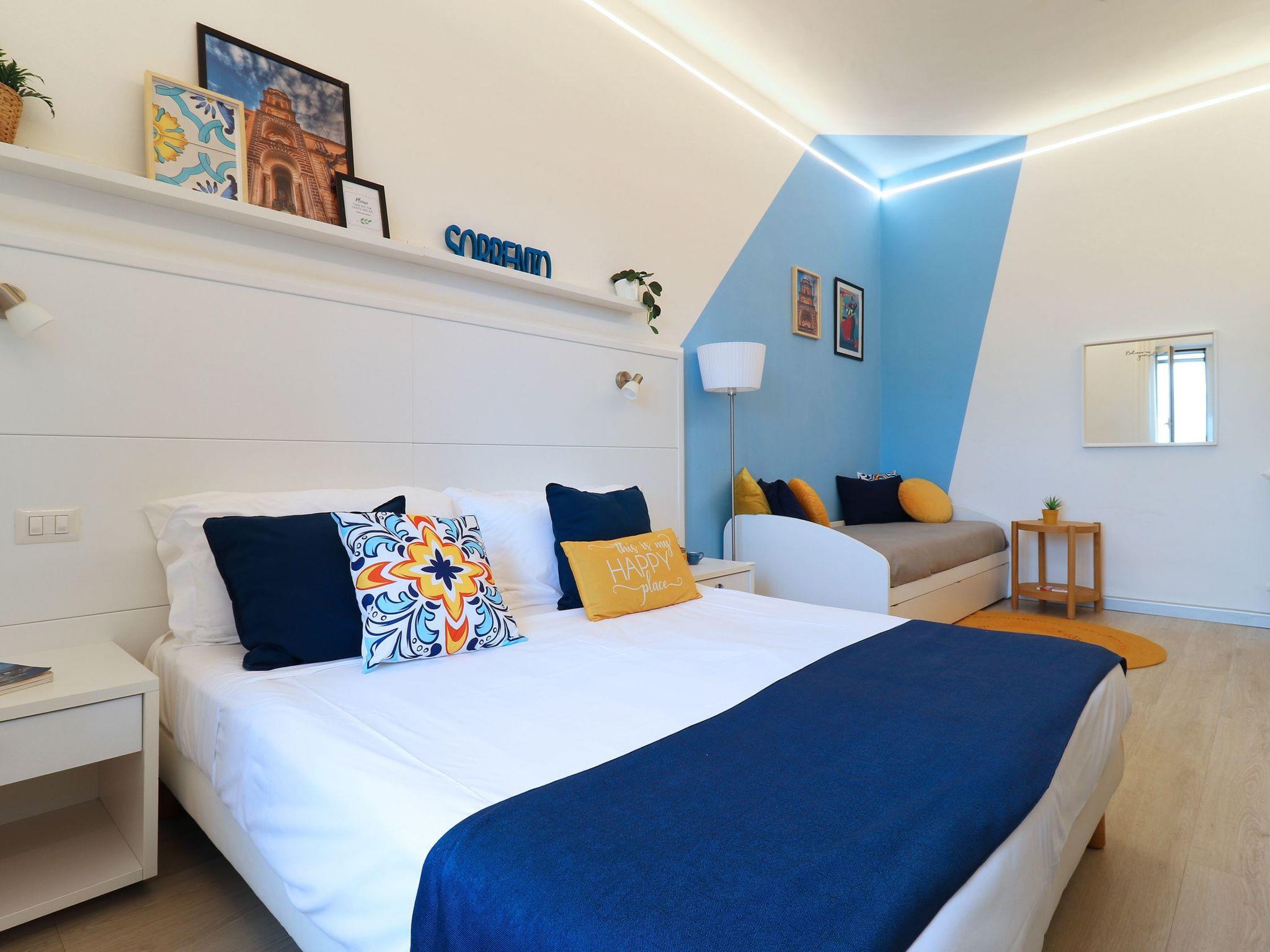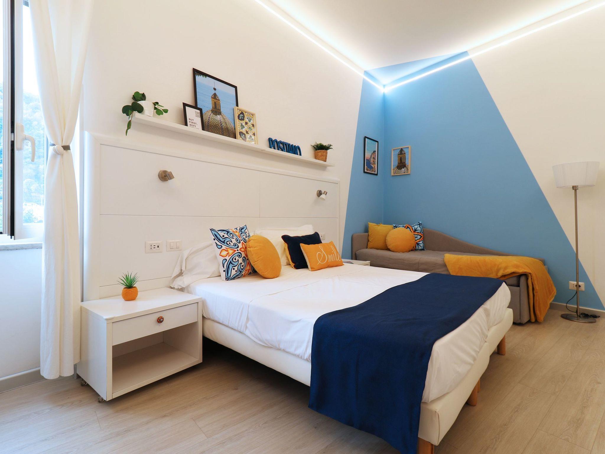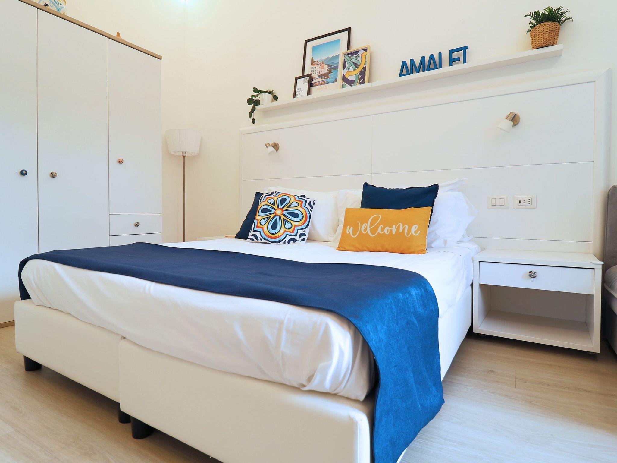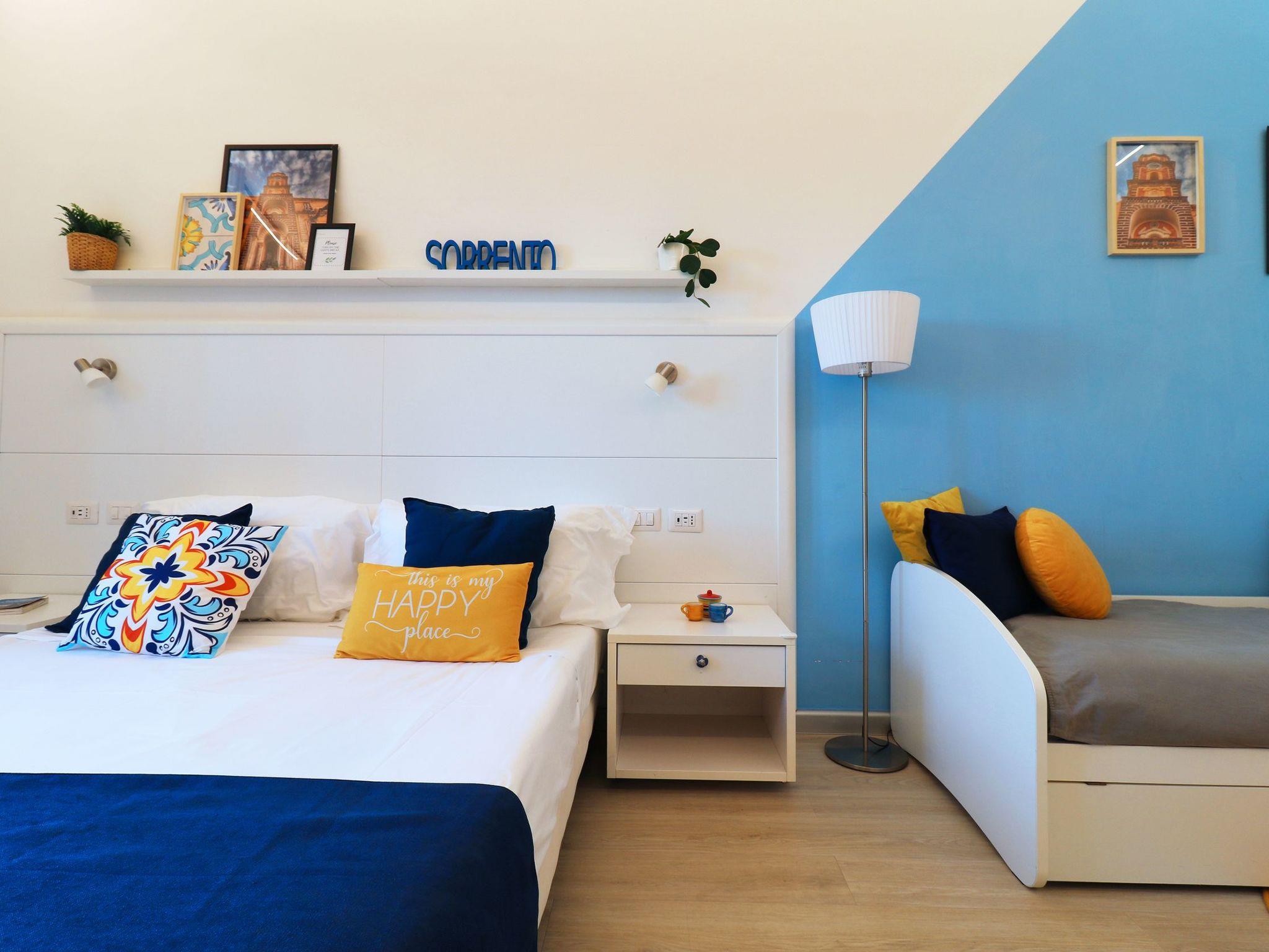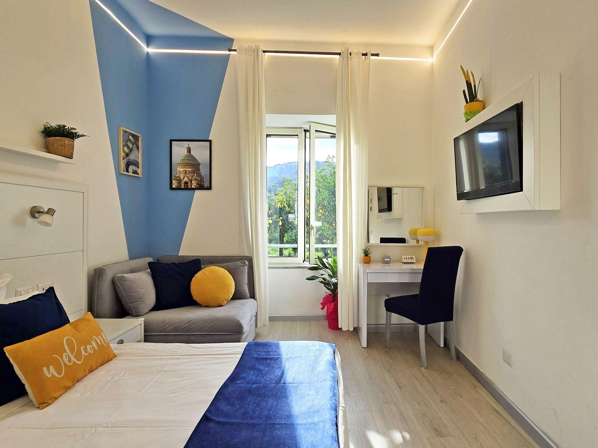 The rooms at La Terrazza Family Holidays are spacious and bright, all with large windows or terraces, opening up to guests a splendid view of the Gulf of Naples or the surrounding hills and the blue sky and sea.