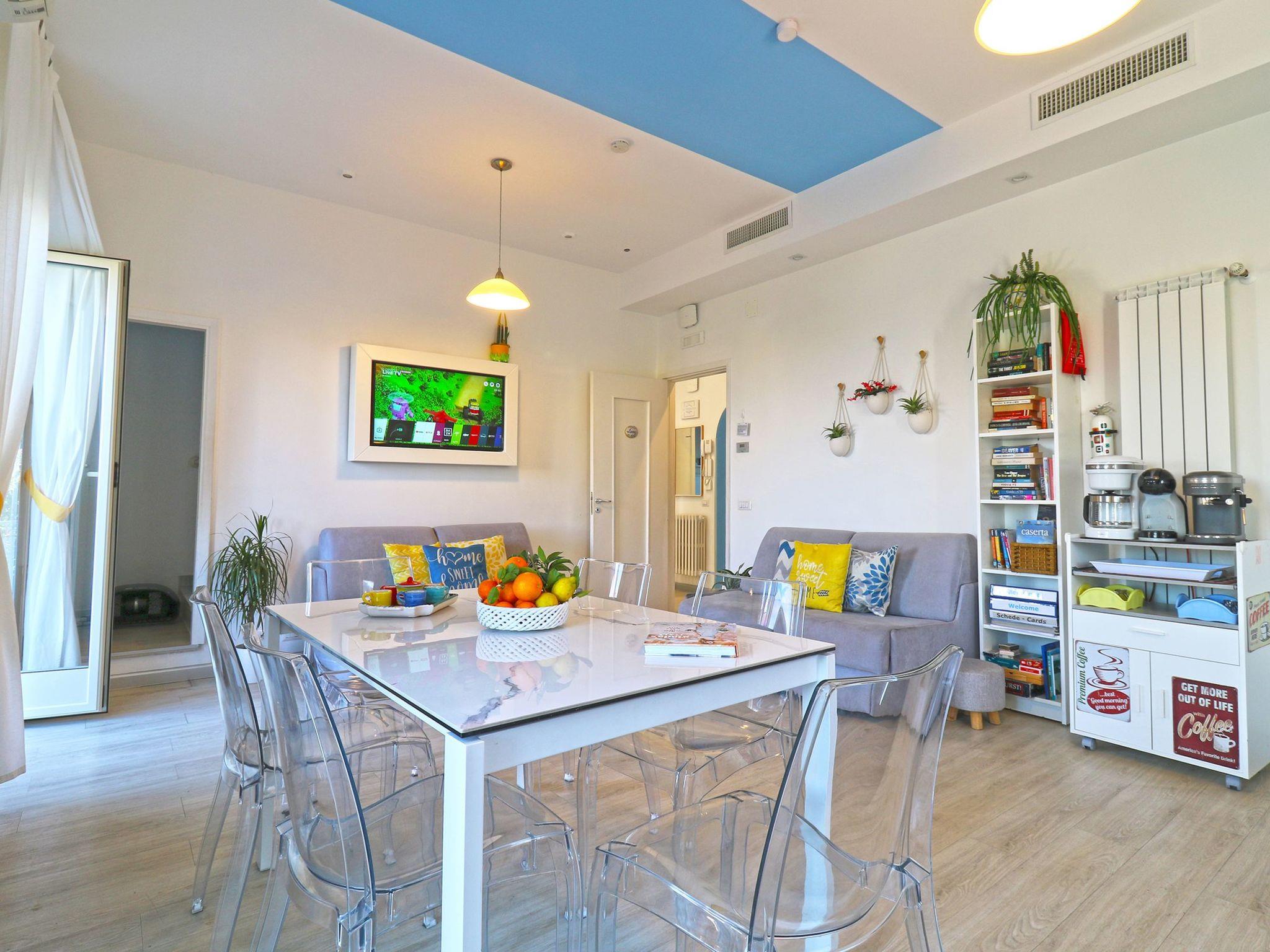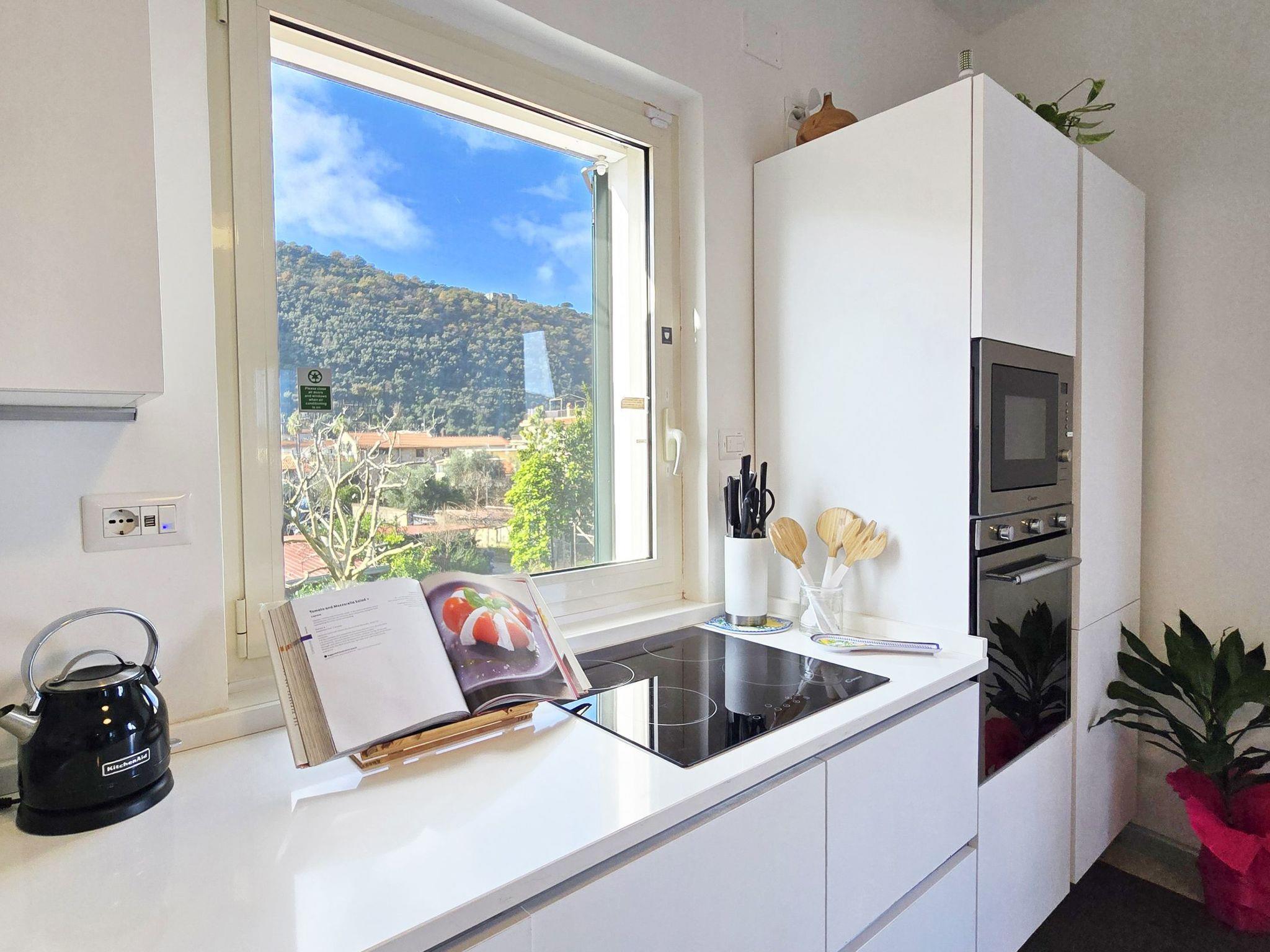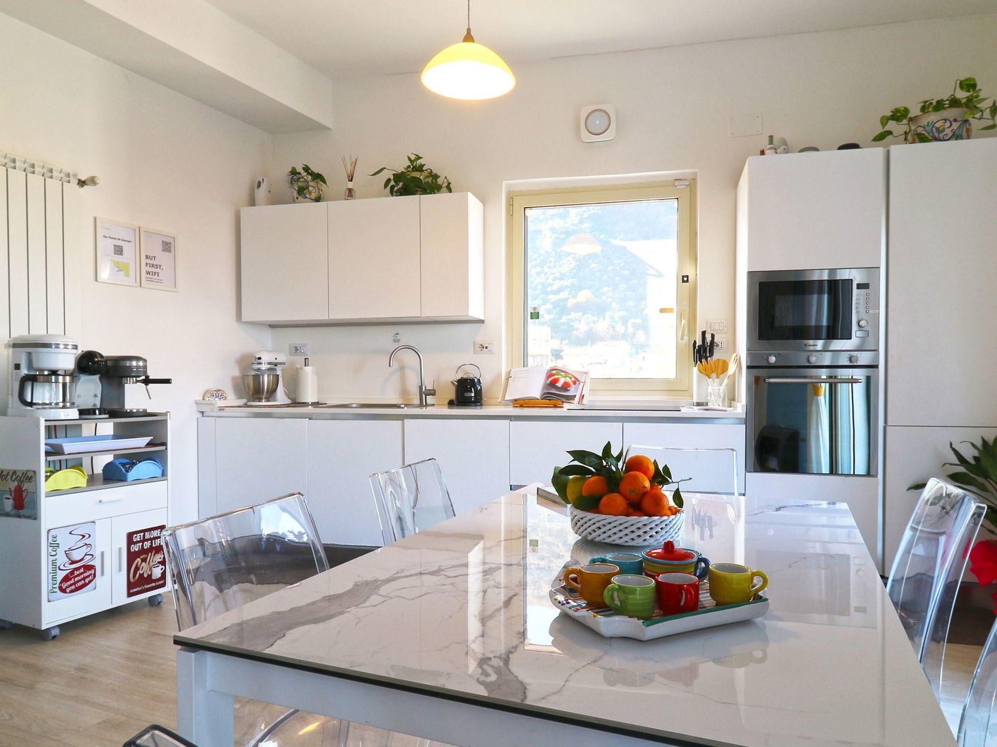It has a large, newly renovated kitchen-living room, complete with induction cooker, oven, microwave oven, dishwasher, fridge, freezer, ice machine, moka coffee maker, American coffee maker, blender and toaster.