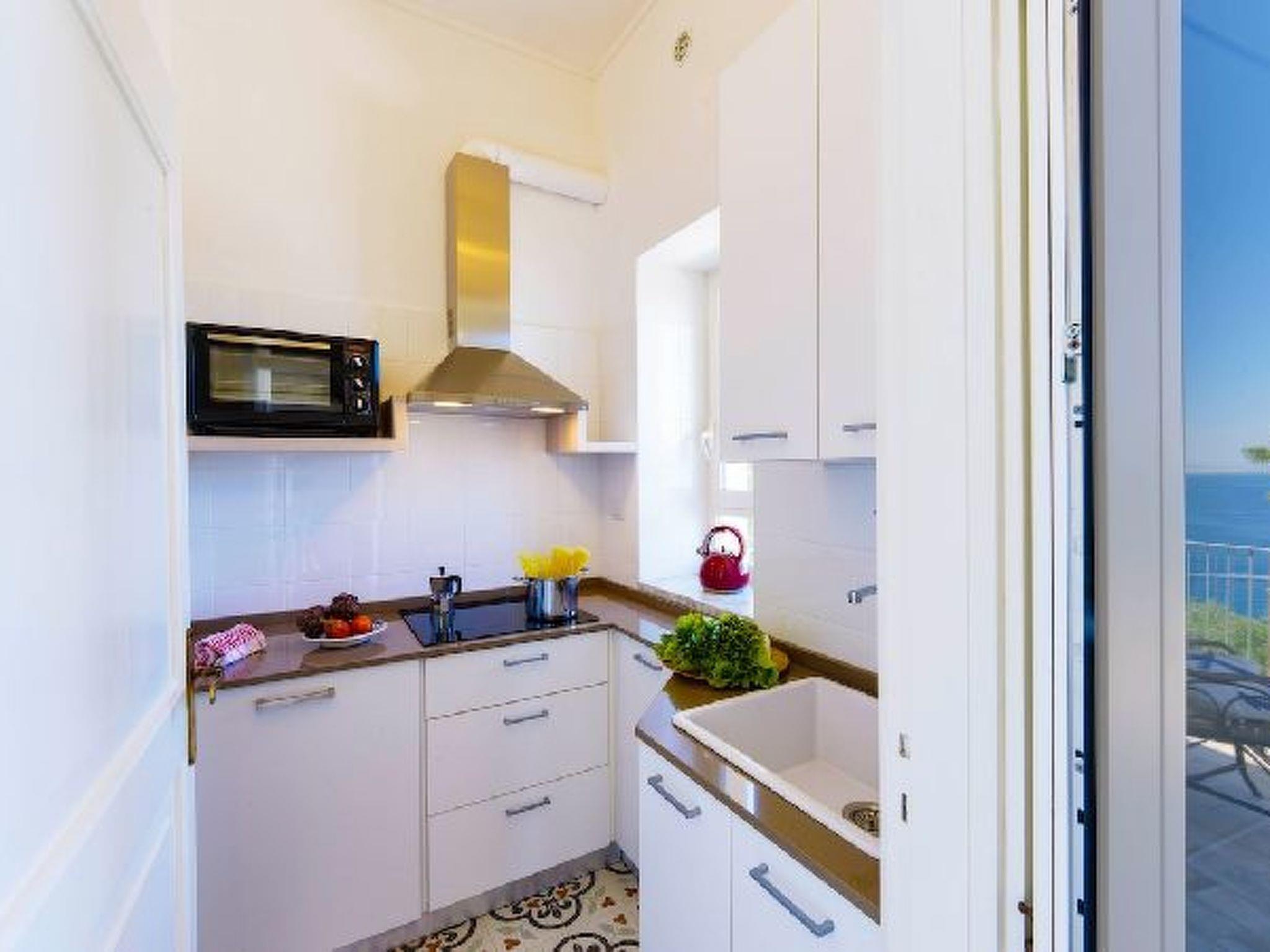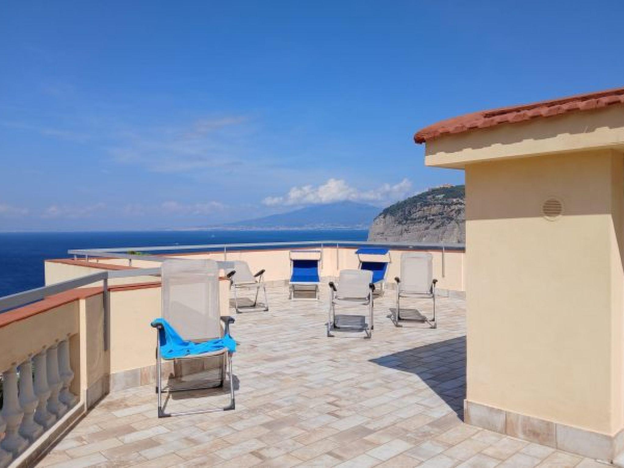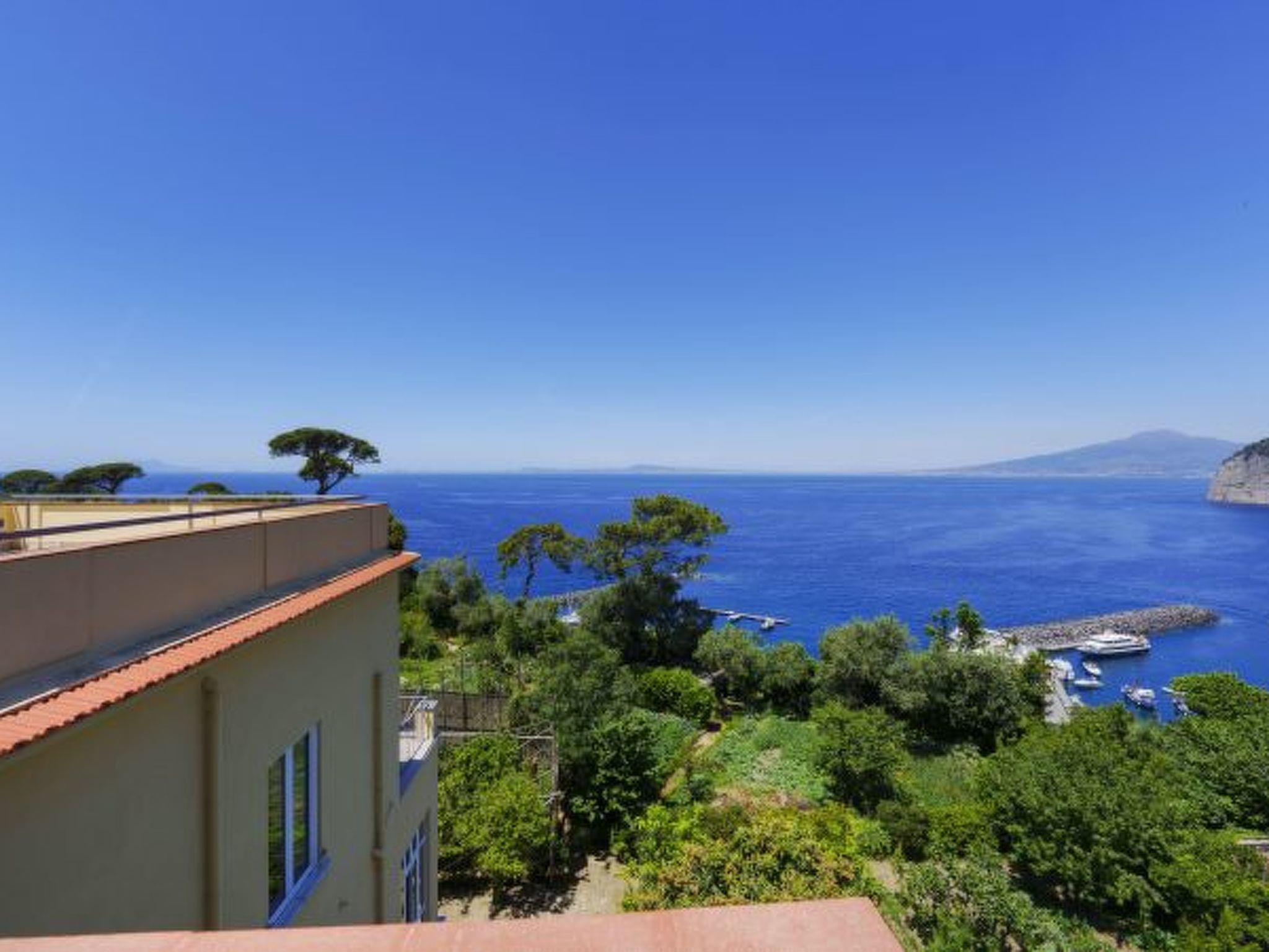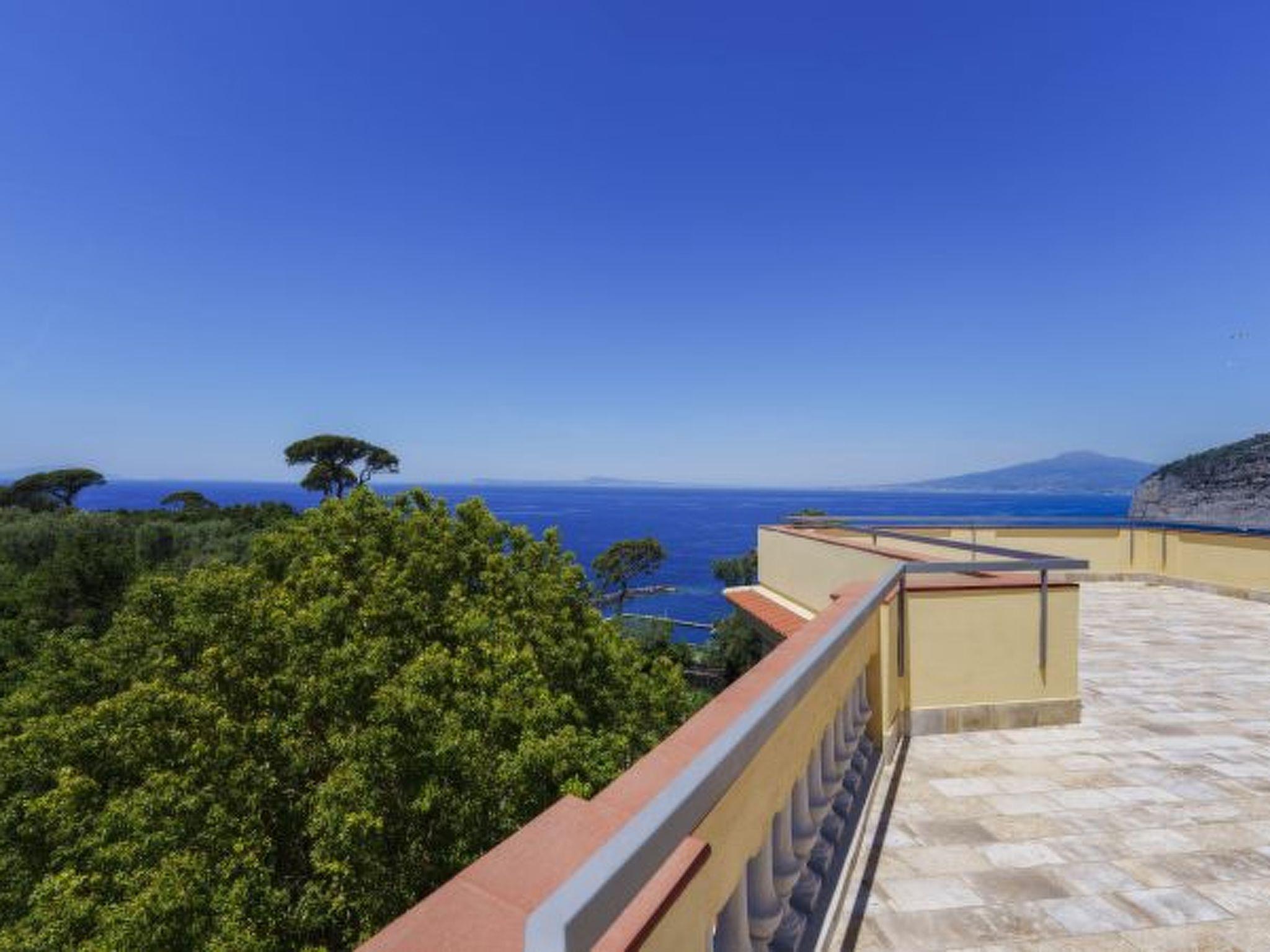 DescriptionEnjoy an exclusive view of the gulf of Naples and “Il Pizzo”, one of the most ancient and charming lemon groves in the mythical Sorrento peninsula, keeped unchanged for centuries. The house was famous archaeologist Paola Zancani’s abode; she loved to spend great part of her life here between her career and classical studies.Today it offers three comfortable apartments to live the splendor of the past completely absorbed in the stillness and beauty of a magic landscape suspended about 50 meters above the sea."Il Terrazzino" is located on the second floor, "La Veranda" and "Le Colonnine" on the first floor.An amazing terrace with a 360° view is waiting for you on the top floor: you can sunbathe, admire the sunset on the sea or the starry nights of the peninsula and enjoy the pyrotechnical shows.A visit of “Il Pizzo” estate is freely available for any guest who wishes.Villa Preziosa is part of the "Associazione Dimore Storiche Italiane".“Il Terrazzino”Very panoramic 106 square meter apartment with spectacular 17 square meter terrace, perfect for five. You can enter by a 47 steps stair.Wide and sunny entrance with sofa and writing desk. Spacious living room: sofa, smart tv 43”, large walnut table. Kitchen area: electric hub, oven, kettle, and toaster. Three quiet bedrooms: two double beds (if requested you can have single beds), one queen-size bed, wardrobe in every room. Two bathrooms: washbasin, shower, bidet, water closet, hair dryer, washing machine, drying rack, iron, and ironing board.Wifi in every room.Mandatory or included services:Air conditioning : IncludedFinal Cleaning : € 120.00 /bookingInternet Access : IncludedOpen-air parking : IncludedOptional services:Arrival out of schedule : € 30.00 /bookingCot/Crib : € 30.00 /bookingDisinfection : € 50.00 /bookingCheck-in schedule:1.1-31.12 from 15:00 to 21:00, Monday, Tuesday, Wednesday, Thursday, Friday, Saturday, SundayCheck-out schedule: 10:00Touristic Registration Number: 15063071EXT0243