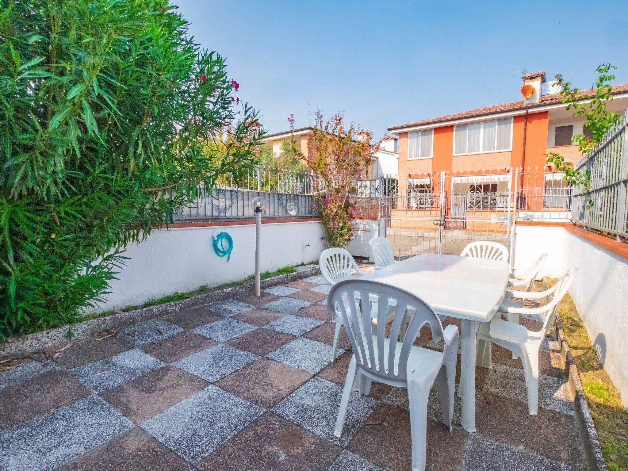 Situated in a complex of terraced houses about 350 m from the beach and 300 m from the centre. The villa is vertically arranged with an independent entrance and tiled garden, 2 balconies, parking space.