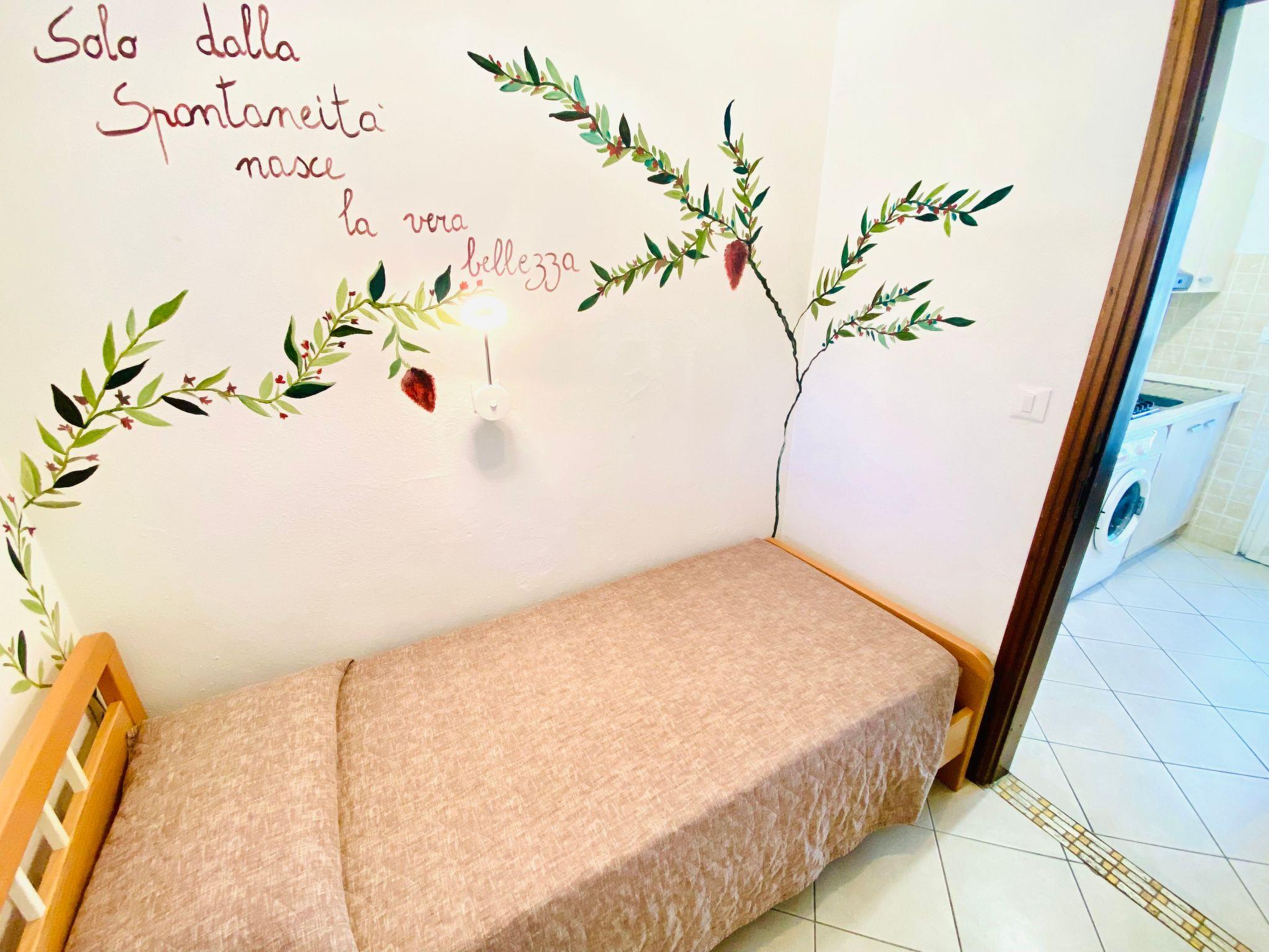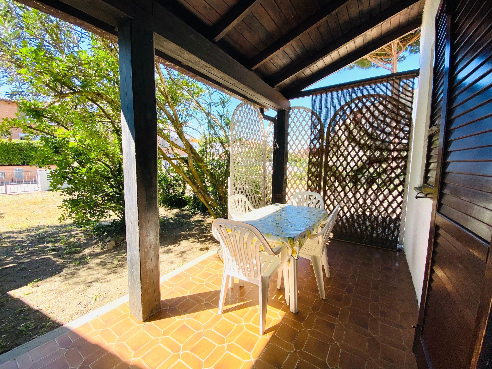 The small villa is divided into two floors: on the ground floor there is a spacious living room with a double sofa bed, a kitchen, a bedroom with a single bed and a bathroom with floor shower. From the kitchen there is access to a large rear garden. On the first floor there is a double bedroom plus a single loft bed, a double bedroom and a bathroom with shower and toilet.