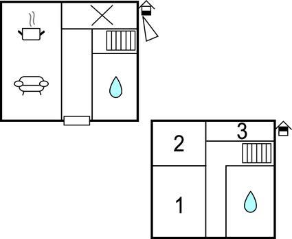 Soveværelse (nr. 2) - 1 Soveplads. (Enkeltseng(e)). 2 Sovepladser. (Dobbeltseng(e)).