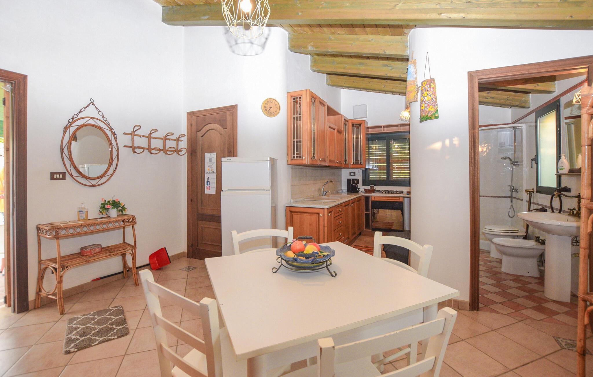 Det indbydende hus byder jer velkommen i en idyllisk beliggenhed med udsigt over det pittoreske landskab i det sydlige Sicilien. Glæd jer til hyggelige rum og en traditionel, hjemlig indretning. Slap af i de rustikke omgivelser, nyd fælles måltider i det åbne køkken, og gør det hyggeligt sammen om aftenen efter oplevelsesrige dage.