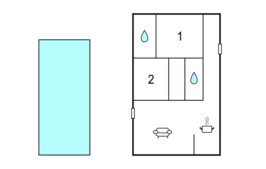 Soveværelse 25m2 (nr. 2) - 1 Soveplads. (Enkeltseng(e)). 2 Sovepladser. (Dobbeltseng(e)).