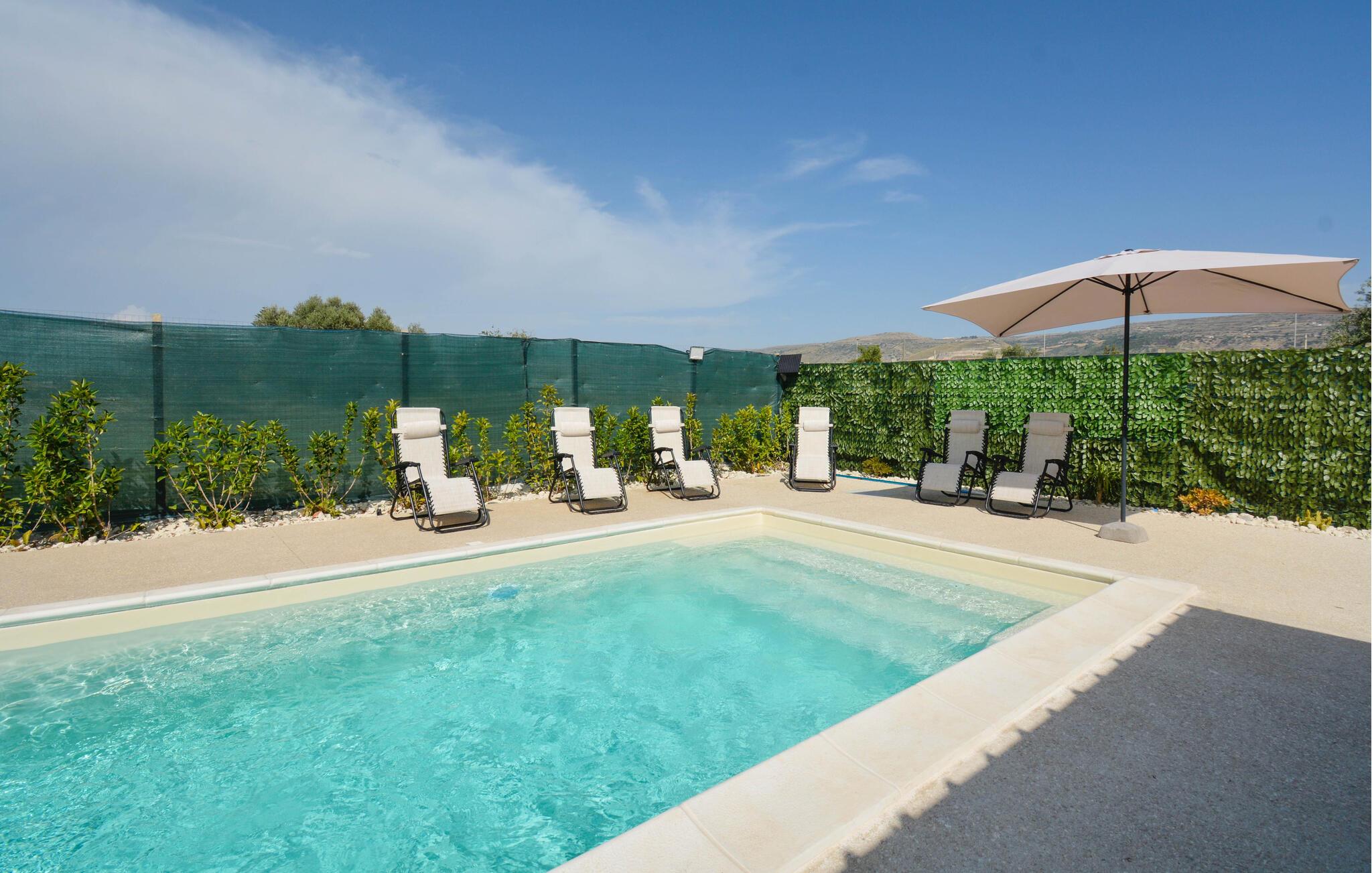 Begynd dagene med morgenmad udendørs og forfrisk jer selv i den afsondrede pool, når I har lyst. Slap af på verandagyngen med et glas vin og nyd de varme middelhavssommernætter med lækkerier fra grillen.