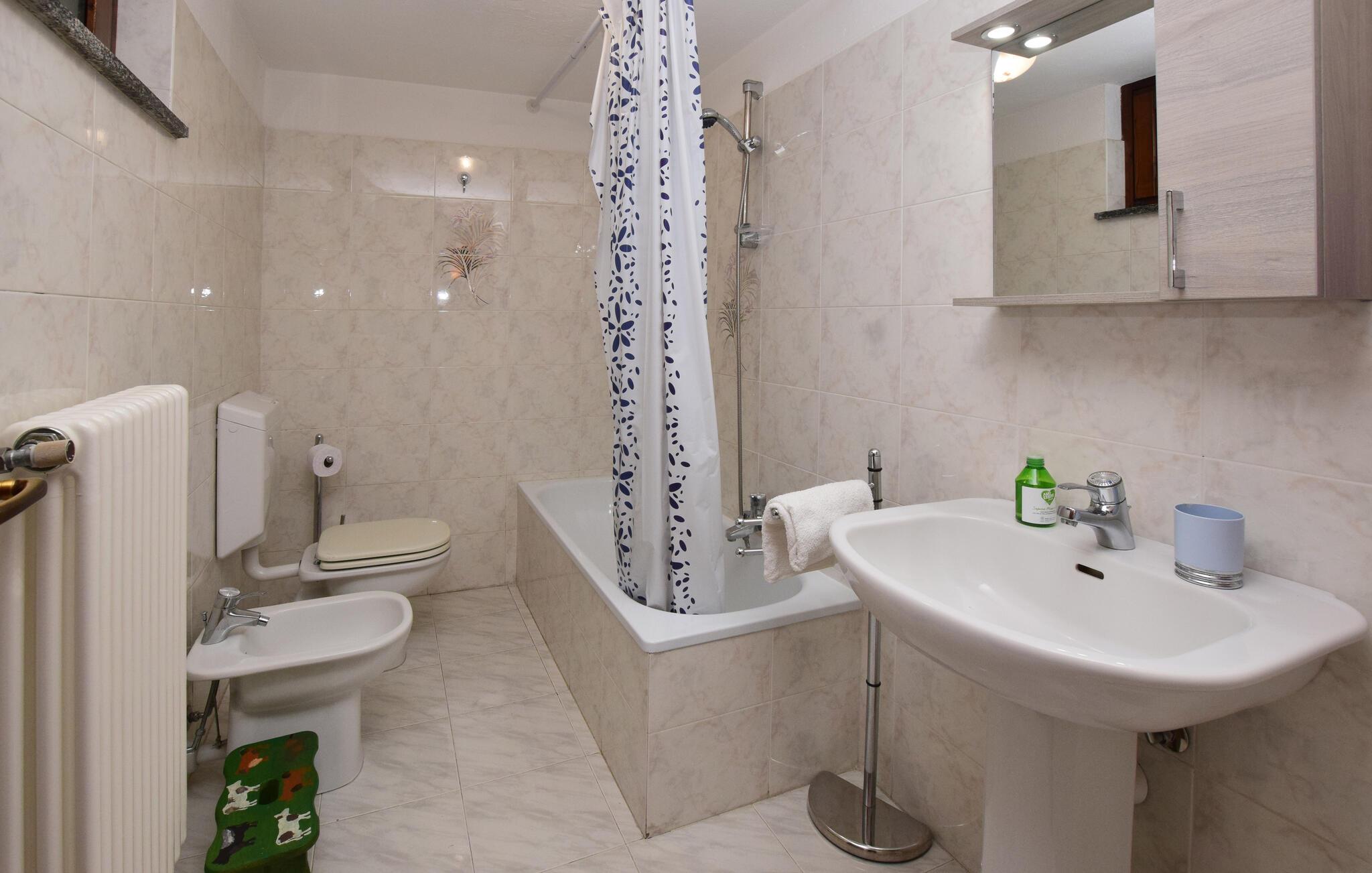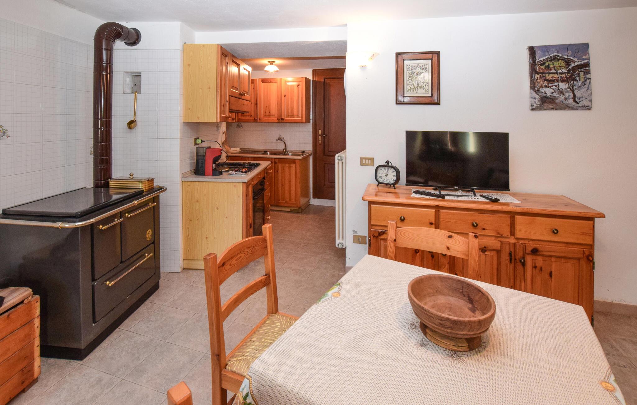 I denne charmerende lejlighed får I alt, I behøver, for en magisk ferie i Alperne. Fra altanen får I en storslået udsigt over bjerglandskabet og det blide grønne landskab i Aosta-dalen, så nyd blot morgenkaffen eller en eftermiddagsdrink til dette skue. Indretningen fremtræder hyggeligt og indbydende med solide træmøbler, som I kan slænge jer i og hvile benene efter en aktiv feriedag. I det åbne køkken-alrum kan I gøre madlavningen til et fælles projekt, mens I lægger planer for de kommende dage.