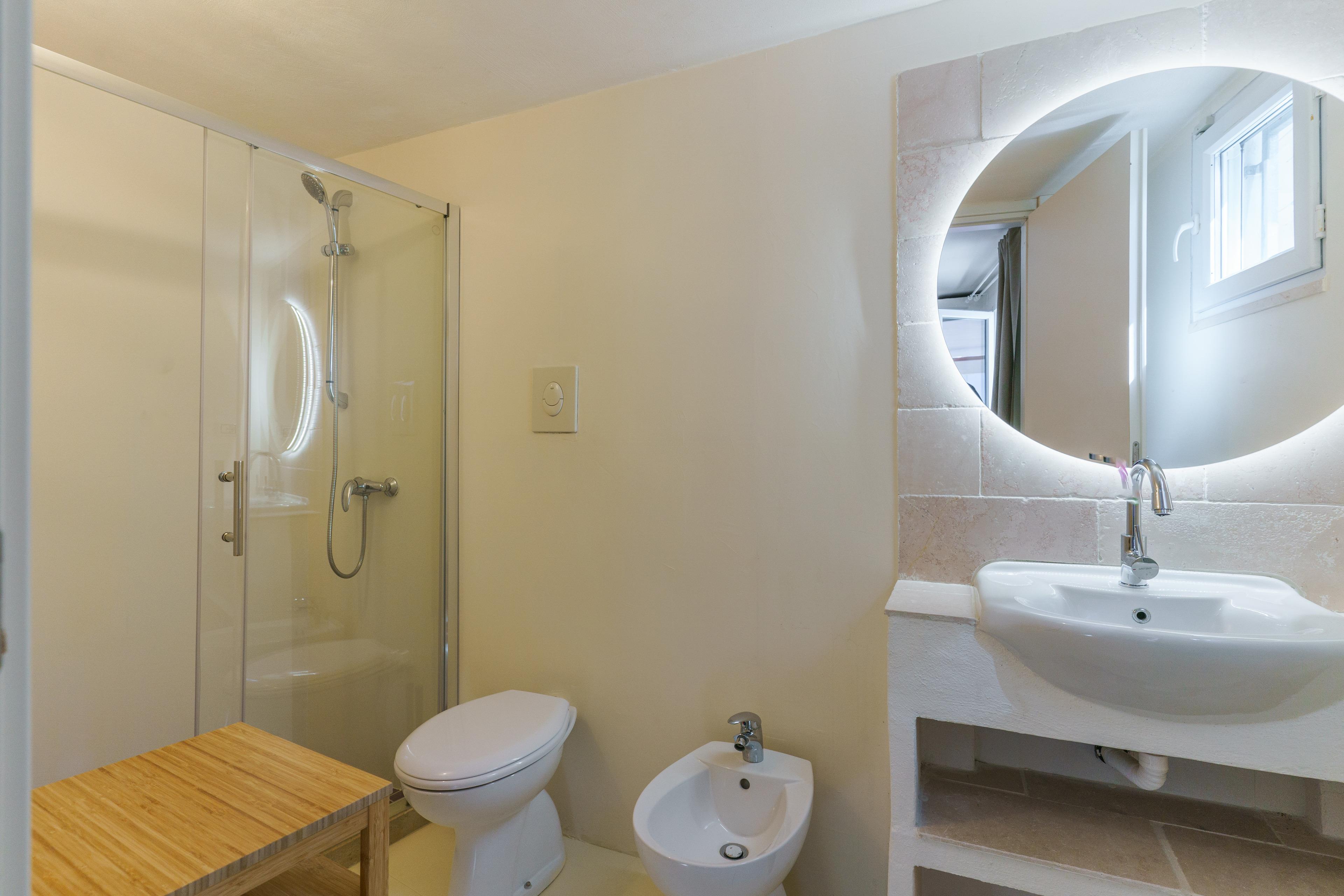 Zwei Einrichtungen: die Hauptwohnung hat ein Wohnzimmer, eine voll ausgestattete Küche, ein Dreibettzimmer, ein Schlafsofa im Wohnzimmer und ein Badezimmer mit Dusche. Nebenan, eine Depandance mit Doppelbett und Bad mit Dusche.
