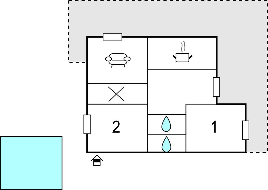 Soveværelse (nr. 2) - 1 Soveplads. (Enkeltseng(e)). 2 Sovepladser. (Dobbeltseng(e)).