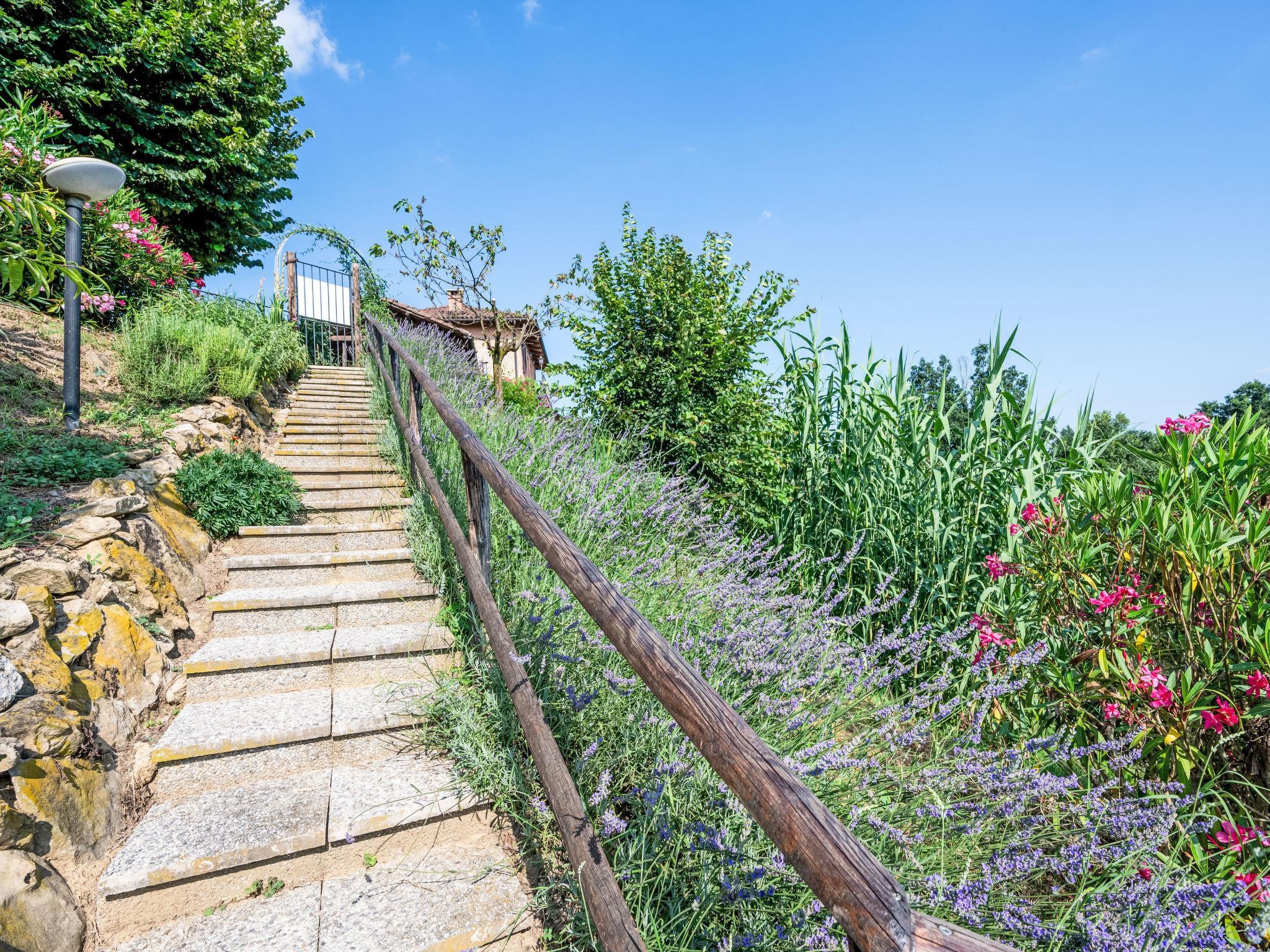 Rustic country house "Bricco dei Ciliegi". 3 houses in the residence. 1.5 km from the centre of Cortazzone, 20 km from the centre of Asti, 45 km from the centre of Turin, on top of a hill, in the countryside. For shared use: property 9'000 m2, garden (not fenced) with lawn and plants, meadow, orchard, swimming pool (10 x 5 m, depth 140 cm, seasonal availability: 15.May. - 15.Oct.). Outdoor shower, arbour, terrace, garden furniture, barbecue house, pool maintenance by the owner/gardener. In the house: storage room for bicycles. 1 km long narrow motor access. Parking at the house on the premises. Supermarket 6 km, bus stop 2 km, railway station "Asti" 20 km, outdoor swimming pool 20 km. Golf course (18 hole) 10 km. Local sale of farm products. Owner lives in separate semi-detached house.