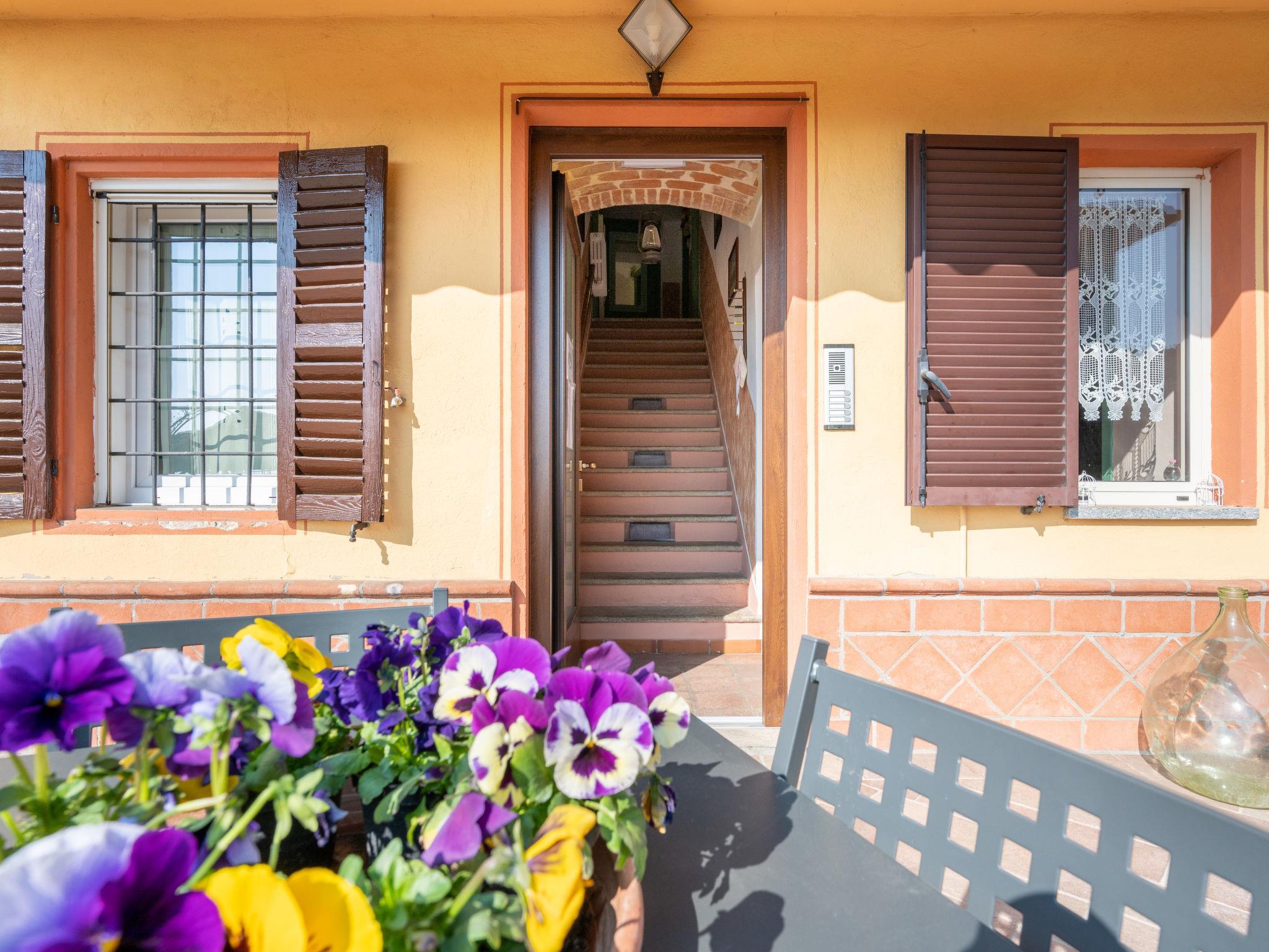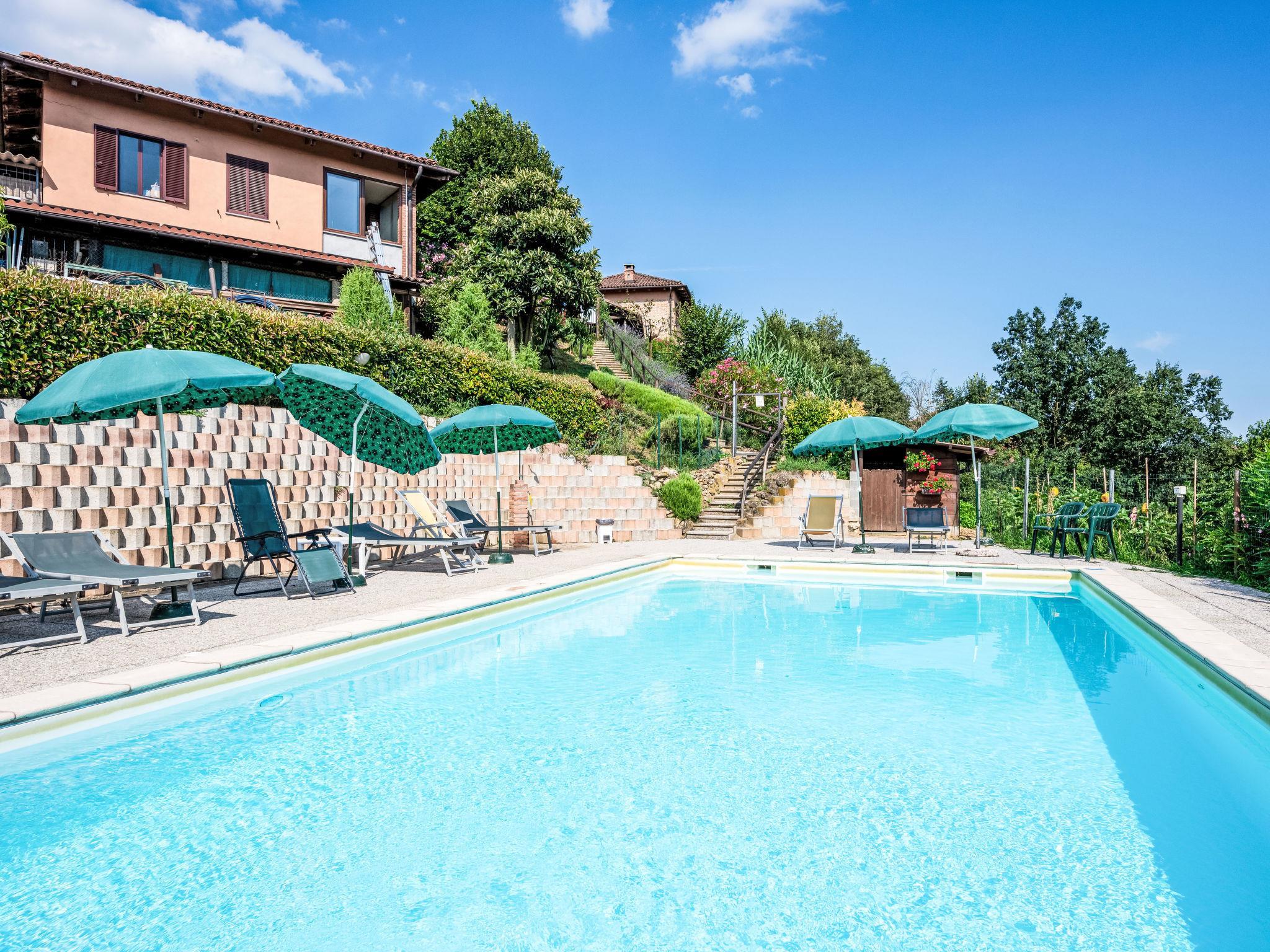 Rustic country house "Bricco dei Ciliegi". 3 houses in the residence. 1.5 km from the centre of Cortazzone, 20 km from the centre of Asti, 45 km from the centre of Turin, on top of a hill, in the countryside. For shared use: property 9'000 m2, garden (not fenced) with lawn and plants, meadow, orchard, swimming pool (10 x 5 m, depth 140 cm, seasonal availability: 15.May. - 15.Oct.). Outdoor shower, arbour, terrace, garden furniture, barbecue house, pool maintenance by the owner/gardener. In the house: storage room for bicycles. 1 km long narrow motor access. Parking at the house on the premises. Supermarket 6 km, bus stop 2 km, railway station "Asti" 20 km, outdoor swimming pool 20 km. Golf course (18 hole) 10 km. Local sale of farm products. Owner lives in separate semi-detached house.